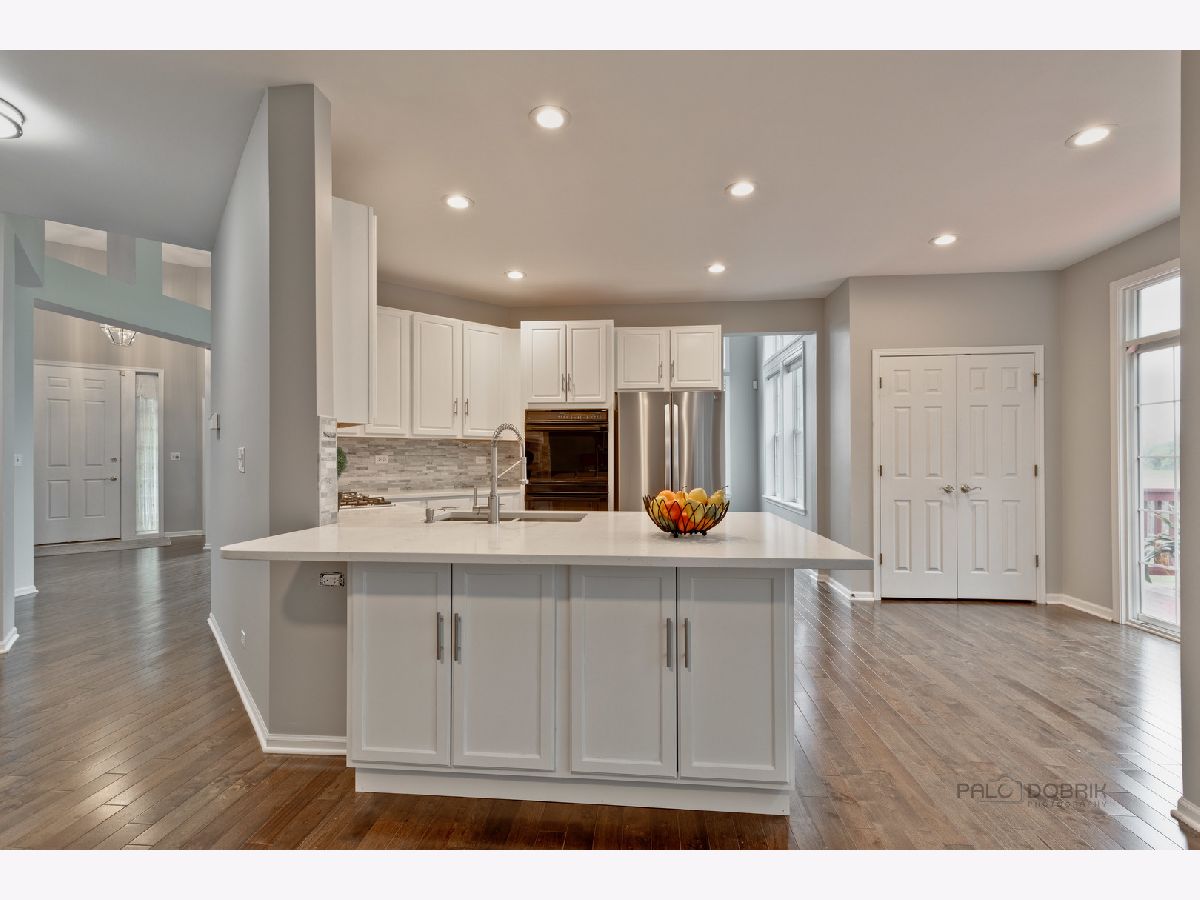 Come fall in love with this stunning 4 bedroom, 2.1 bath home nestled in a quiet neighborhood and AWARD-WINNING school district 103 and Stevenson High School!!! Flow through the grand entry and enjoy the home's bright and airy voluminous layout- ideal for entertaining and everyday living! Spend quality time in your sun-filled living room displaying a beautiful vaulted ceiling. Entertain in your spacious dining room perfect for every gathering. Make memories in your gourmet kitchen boasting a breakfast bar, pantry-closet, double oven, an abundance of newly painted white cabinetry, brand new quartz countertops, and exterior access to the deck allowing for great outdoor entertainment. Gather in your lovely family room highlighting a striking fireplace. Office and half bath complete the first level. Retreat to your breathtaking master bedroom featuring vaulted ceiling and luxurious ensuite with large walk-in closet, double sink vanity, whirlpool tub, and separate shower. Three additional bedrooms, full bath, and laundry finish second level. Retreat away to your private fenced yard with a huge deck and lush landscaping! Located right next to neighborhood park and Metra station!
