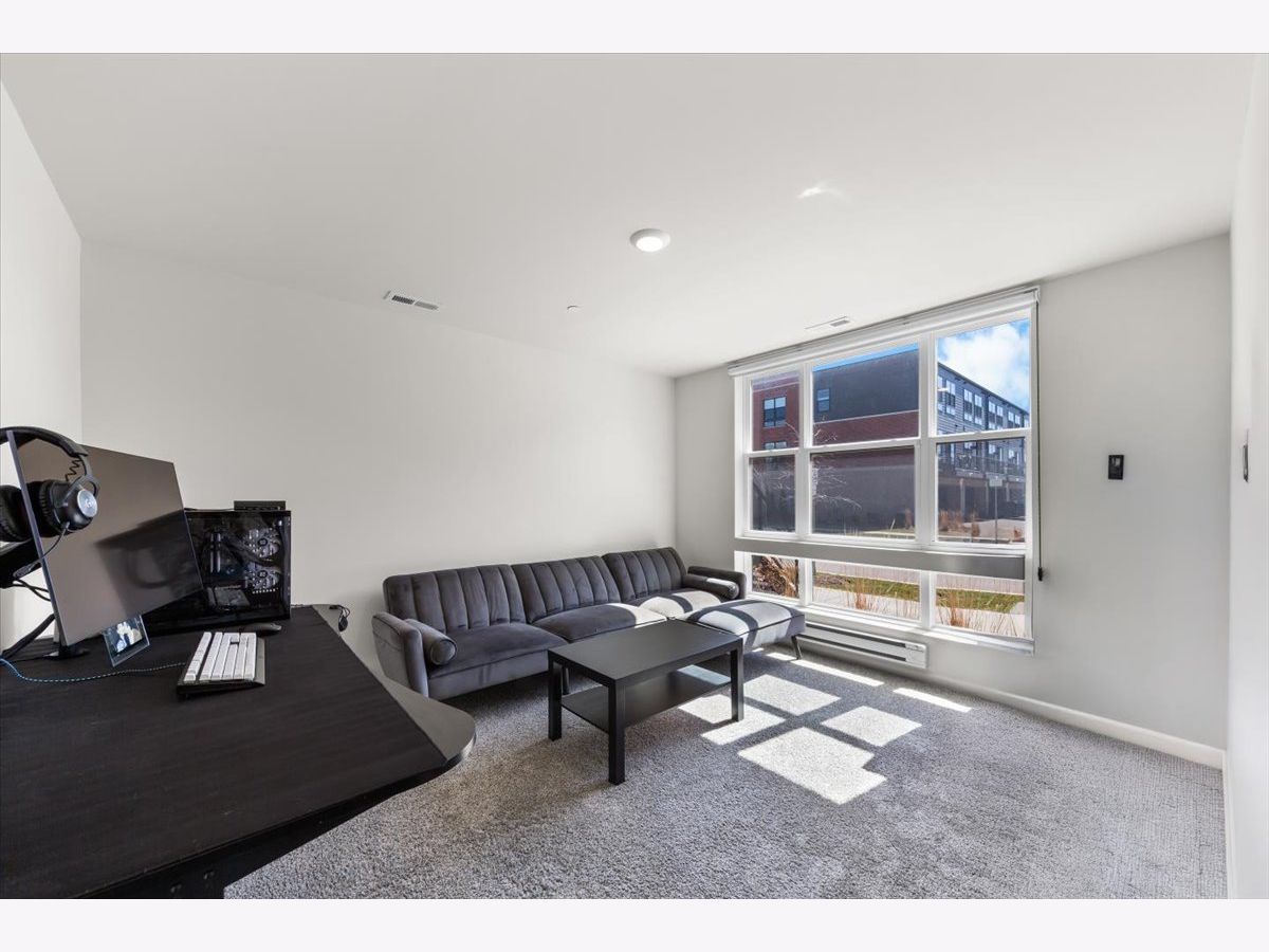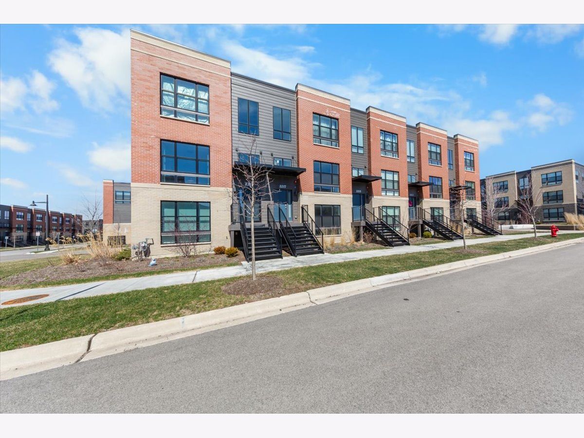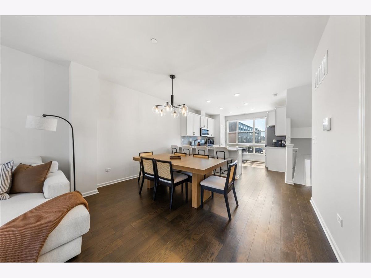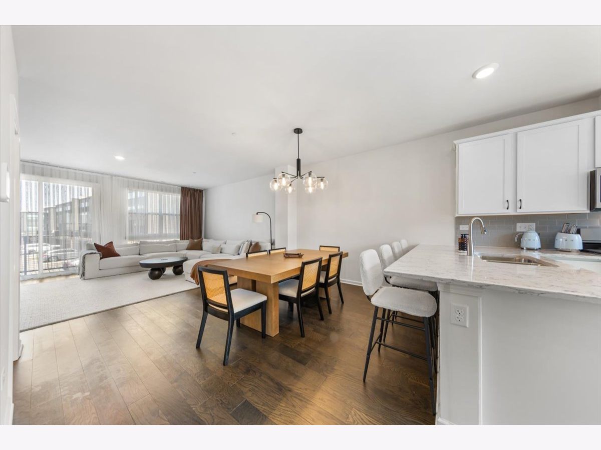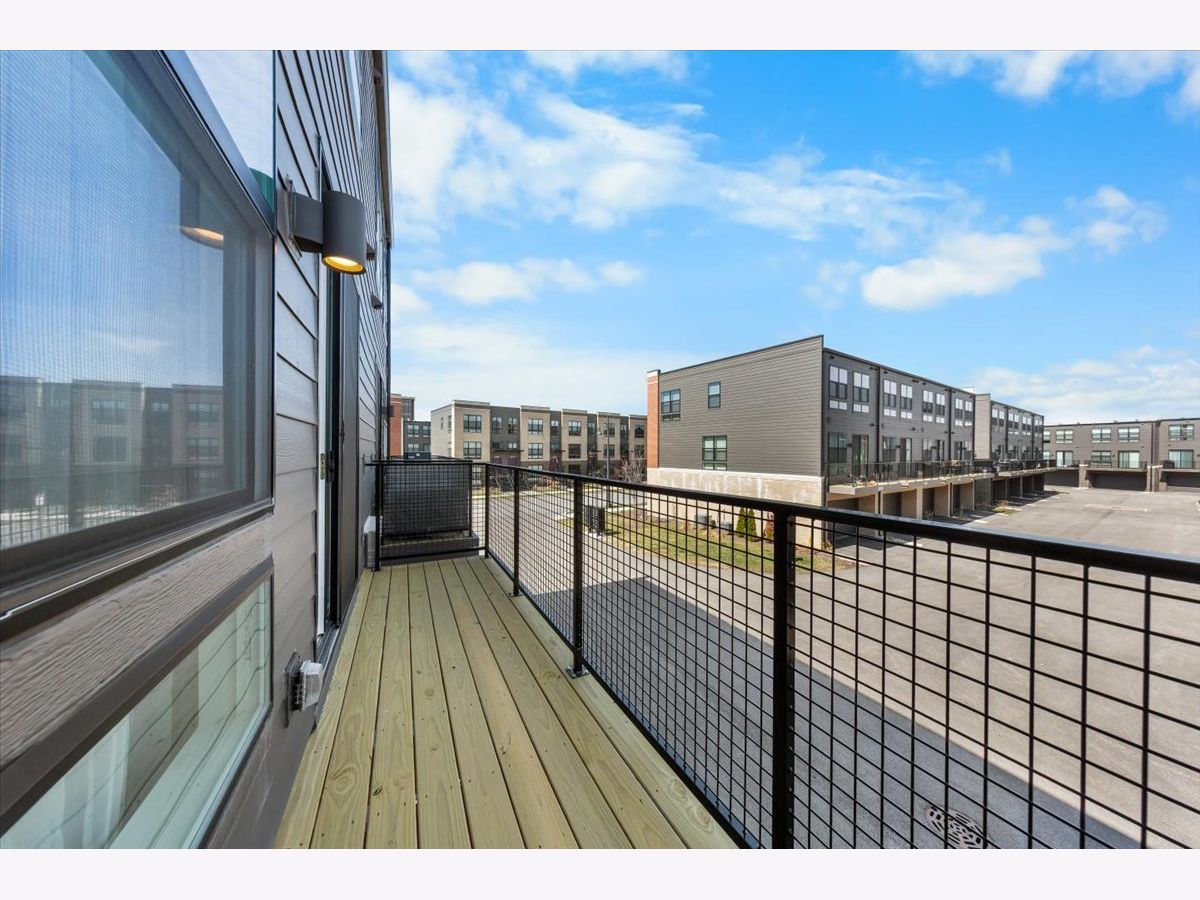 Move right into this beautifully maintained, townhome located in a quiet area of the community with a great location. This light-filled home offers 3 bedrooms, 2.5 baths, and a versatile flex room with unobstructed outdoor views. The finished lower-level flex room includes a full bathroom and is perfect for a home office, den, playroom, workout space, or even a 4th bedroom. The main level features an open-concept layout with 9-foot ceilings and floor-to-ceiling windows, creating a bright and inviting space ideal for both everyday living and entertaining. The expansive kitchen overlooks the dining area and great room and is appointed with 42" white designer cabinets with crown molding, dovetail drawers, and soft-close features, along with quartz countertops, a ceramic backsplash, a spacious island, and a pantry. Upstairs, the primary suite includes a walk-in closet and a private en-suite bathroom. Two additional bedrooms, a full bath, a convenient laundry room, and a linen closet complete the upper level. RevWood flooring runs throughout the main living areas, foyer, owner's entry, and full bathrooms. Additional highlights include an innovative furnace system, tankless water heater, and garage conduit for a future electric vehicle charger. Smart home features include a video doorbell, Honeywell smart thermostat, Amazon Echo Pop, smart lock, and more. Located in a rapidly growing community adjacent to The District, a 30-acre mixed-use development planned as the area's future Main Street, with an 8-mile greenway trail system and a 12-acre urban park with additional enhancements planned beginning in 2026. Enjoy convenient access to highways, shopping, dining, and top-rated Fremd High School District. Credit and background check required.