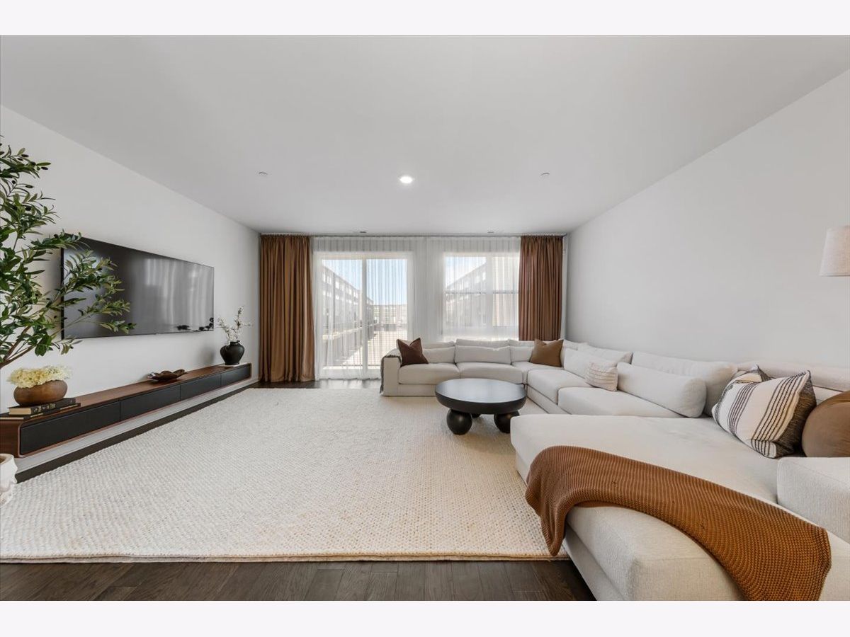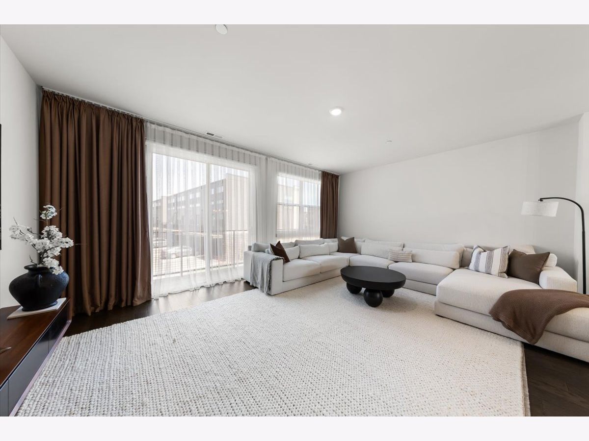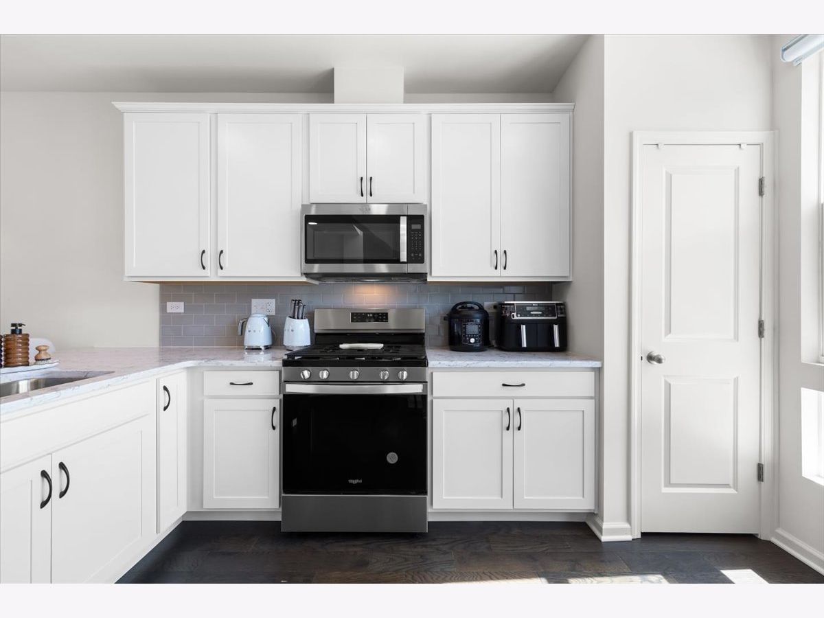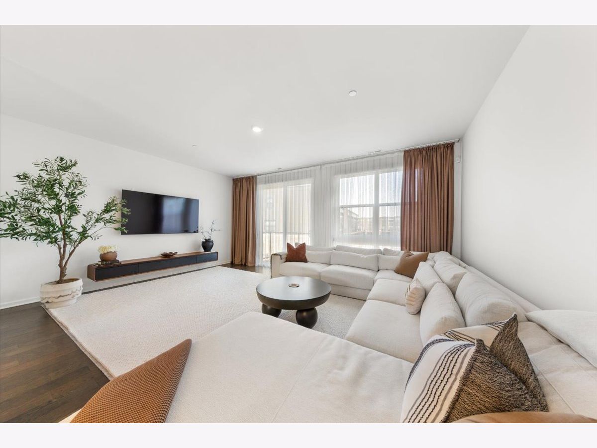 Move right into this beautifully maintained, townhome located in a quiet area of the community with a great location. This light-filled home offers 3 bedrooms, 2.5 baths, and a versatile flex room with unobstructed outdoor views. The finished lower-level flex room includes a full bathroom and is perfect for a home office, den, playroom, workout space, or even a 4th bedroom. The main level features an open-concept layout with 9-foot ceilings and floor-to-ceiling windows, creating a bright and inviting space ideal for both everyday living and entertaining. The expansive kitchen overlooks the dining area and great room and is appointed with 42" white designer cabinets with crown molding, dovetail drawers, and soft-close features, along with quartz countertops, a ceramic backsplash, a spacious island, and a pantry. Upstairs, the primary suite includes a walk-in closet and a private en-suite bathroom. Two additional bedrooms, a full bath, a convenient laundry room, and a linen closet complete the upper level. RevWood flooring runs throughout the main living areas, foyer, owner's entry, and full bathrooms. Additional highlights include an innovative furnace system, tankless water heater, and garage conduit for a future electric vehicle charger. Smart home features include a video doorbell, Honeywell smart thermostat, Amazon Echo Pop, smart lock, and more. Located in a rapidly growing community adjacent to The District, a 30-acre mixed-use development planned as the area's future Main Street, with an 8-mile greenway trail system and a 12-acre urban park with additional enhancements planned beginning in 2026. Enjoy convenient access to highways, shopping, dining, and top-rated Fremd High School District. Credit and background check required.