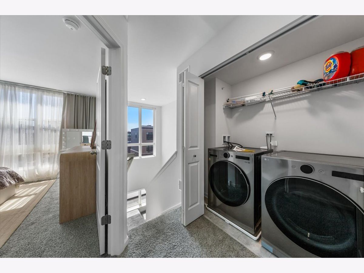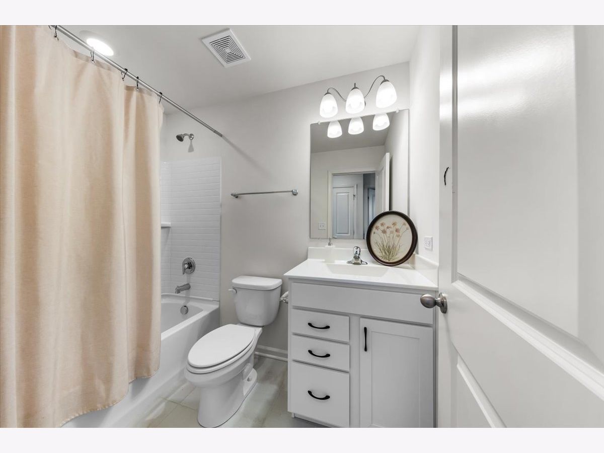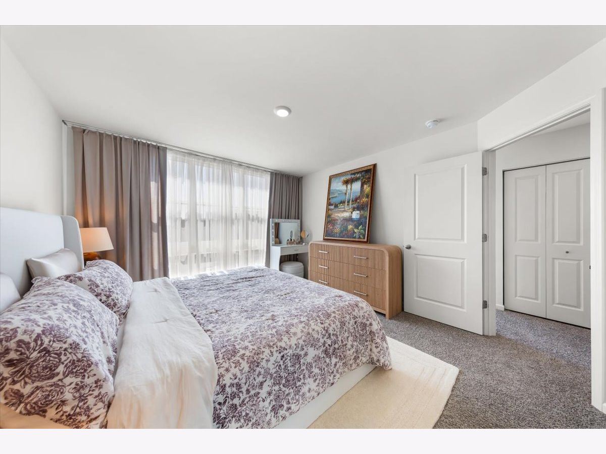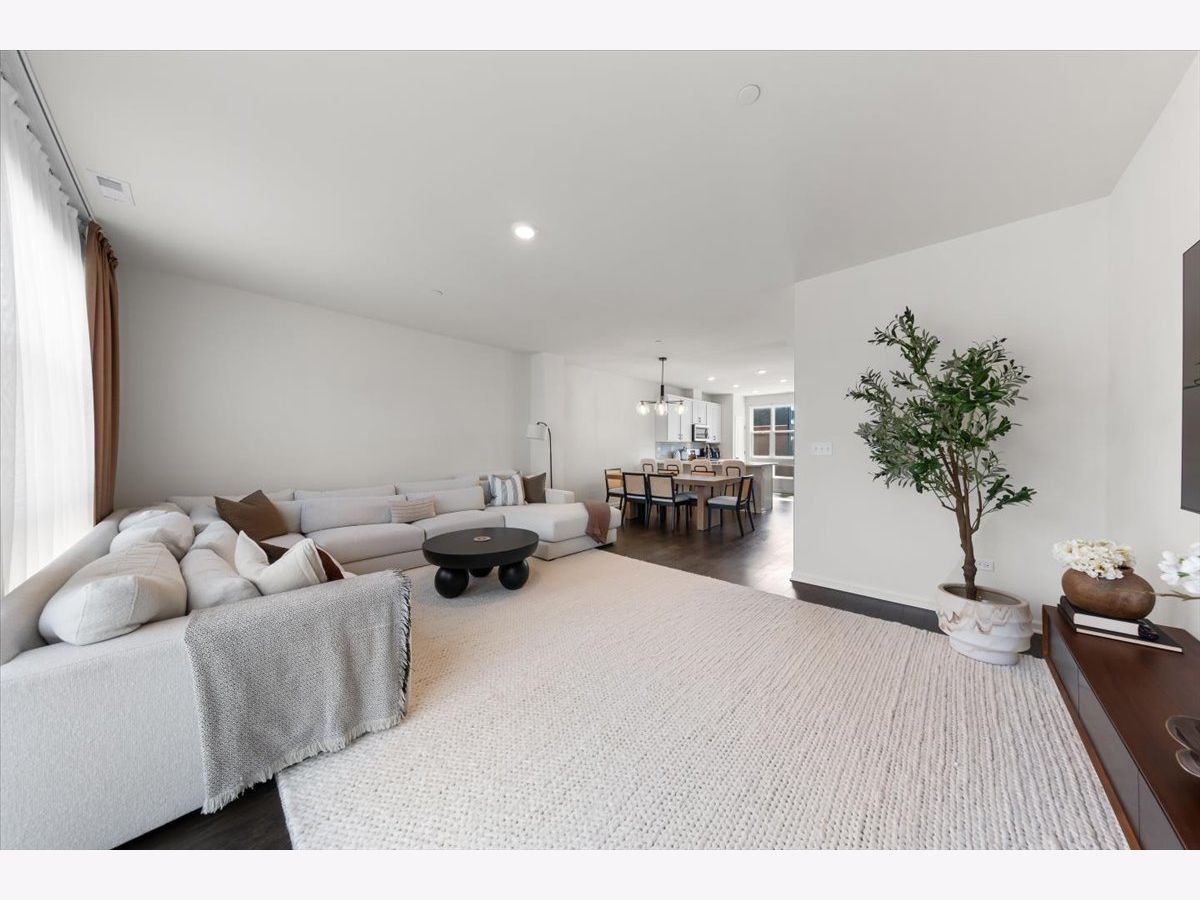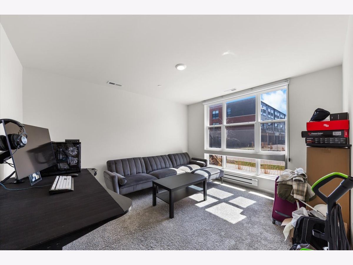 Move right into this beautifully maintained, townhome located in a quiet area of the community with a great location. This light-filled home offers 3 bedrooms, 2.5 baths, and a versatile flex room with unobstructed outdoor views. The finished lower-level flex room includes a full bathroom and is perfect for a home office, den, playroom, workout space, or even a 4th bedroom. The main level features an open-concept layout with 9-foot ceilings and floor-to-ceiling windows, creating a bright and inviting space ideal for both everyday living and entertaining. The expansive kitchen overlooks the dining area and great room and is appointed with 42" white designer cabinets with crown molding, dovetail drawers, and soft-close features, along with quartz countertops, a ceramic backsplash, a spacious island, and a pantry. Upstairs, the primary suite includes a walk-in closet and a private en-suite bathroom. Two additional bedrooms, a full bath, a convenient laundry room, and a linen closet complete the upper level. RevWood flooring runs throughout the main living areas, foyer, owner's entry, and full bathrooms. Additional highlights include an innovative furnace system, tankless water heater, and garage conduit for a future electric vehicle charger. Smart home features include a video doorbell, Honeywell smart thermostat, Amazon Echo Pop, smart lock, and more. Located in a rapidly growing community adjacent to The District, a 30-acre mixed-use development planned as the area's future Main Street, with an 8-mile greenway trail system and a 12-acre urban park with additional enhancements planned beginning in 2026. Enjoy convenient access to highways, shopping, dining, and top-rated Fremd High School District. Credit and background check required.