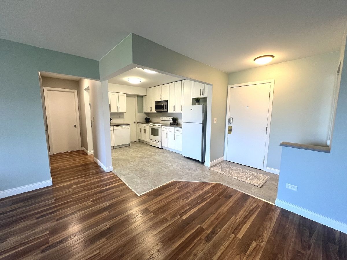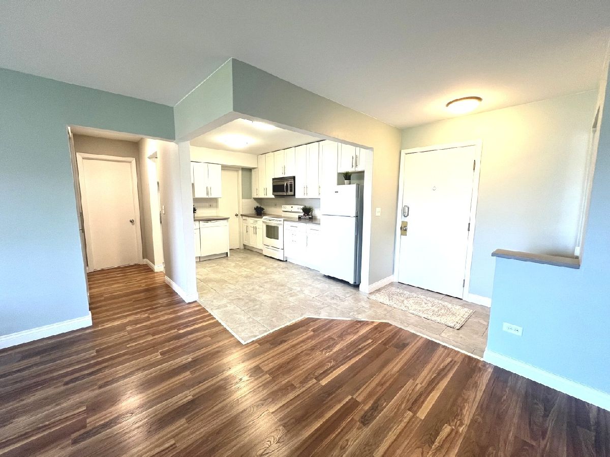 Beautiful,bright and updated open concept 1 bedroom condo with a private balcony that is overlooking courtyard, pool and a playground. New, open kitchen has beautiful white cabinets, quartz countertop, and new appliances. Large table space and big pantry/ storage room is a great addition. Living room combined with dining is freshly painted and has wood laminate flooring. New bathroom has soaking tub.Large bedroom has double closets. Perfect location close to expressway, shopping, and everything what Arlington Hts has to offer. A laundry room is on the same floor. Building with Elevator.Storage Locker is located in the basement. Landlord requires: good credit and income verification.