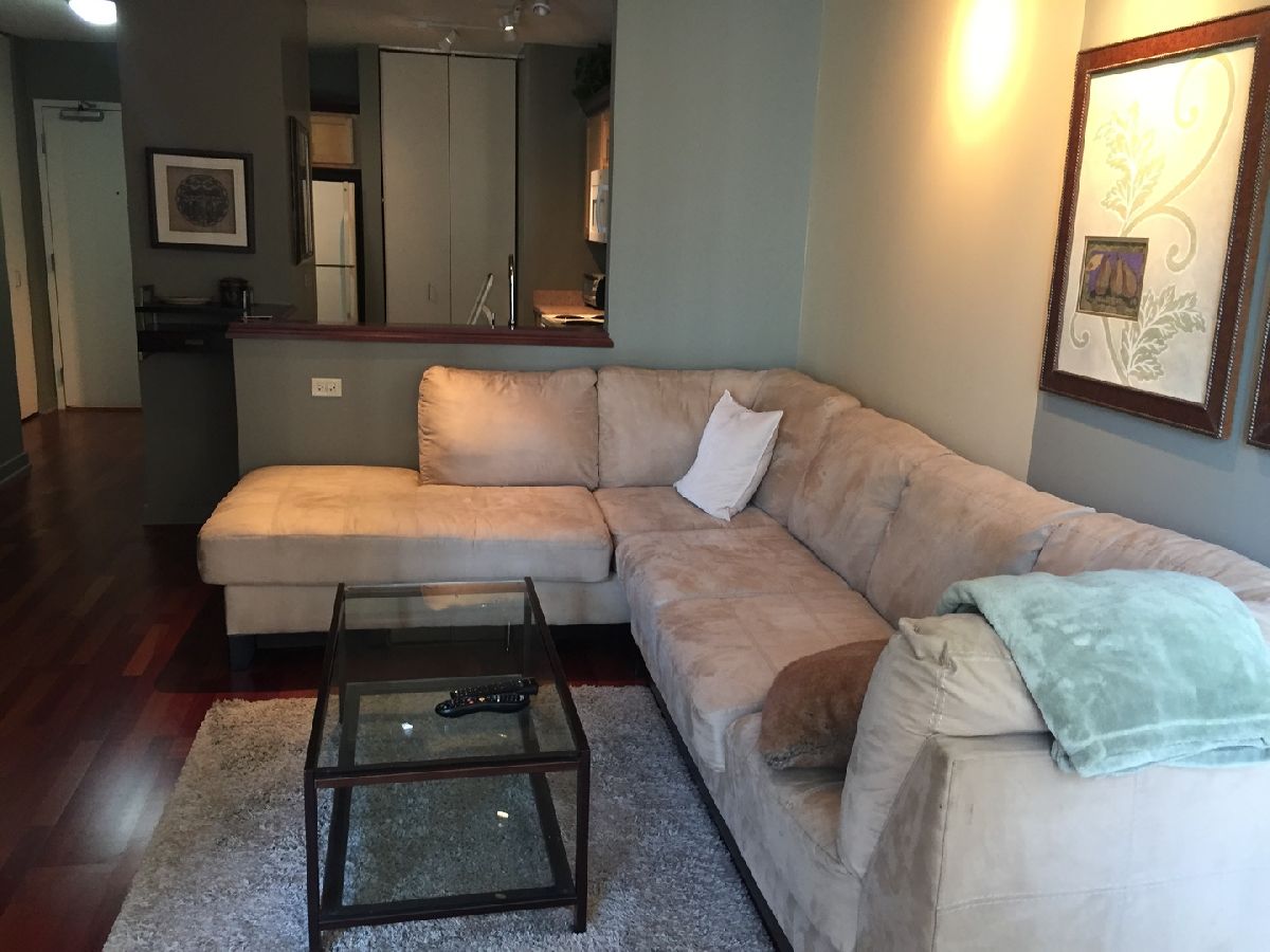 Fully furnished! Nothing to do but move in! Luxury living at the Park Millennium. 1 bedroom, 1 bath with desirable open floorplan. Floor to ceiling windows and a lot of natural sunlight. In unit washer and dryer. Kitchen has maple cabinets with white appliances. Jack and Jill bath make it easy to entertain. New Hardwood floors. Freshly Painted! Building is connected to city pedway. Amenities: 24-hour door person, elevator, 24-hour exercise room, on-site manager/engineer, party room, sundeck, pool-indoors, jacuzzi, service elevator, business center, media room. Common outdoor area features tables, chairs and grills for friends and family to enjoy. In addition there are his and hers sauna. Located just East of Michigan Avenue, and just North of the bean at Millennium Park the location has a lot to offer. From local restaurants to a luxurious shopping experience, it's got it all. The building offers it's residence a pedway that connects you to the Lakeshore Sport and Fitness, Jimmy John's, Subway and many more that's perfect for the winter months so you don't have to walk outside. Parking for an assigned space is $310 and unassigned is $260. What are you waiting for, come take a look.