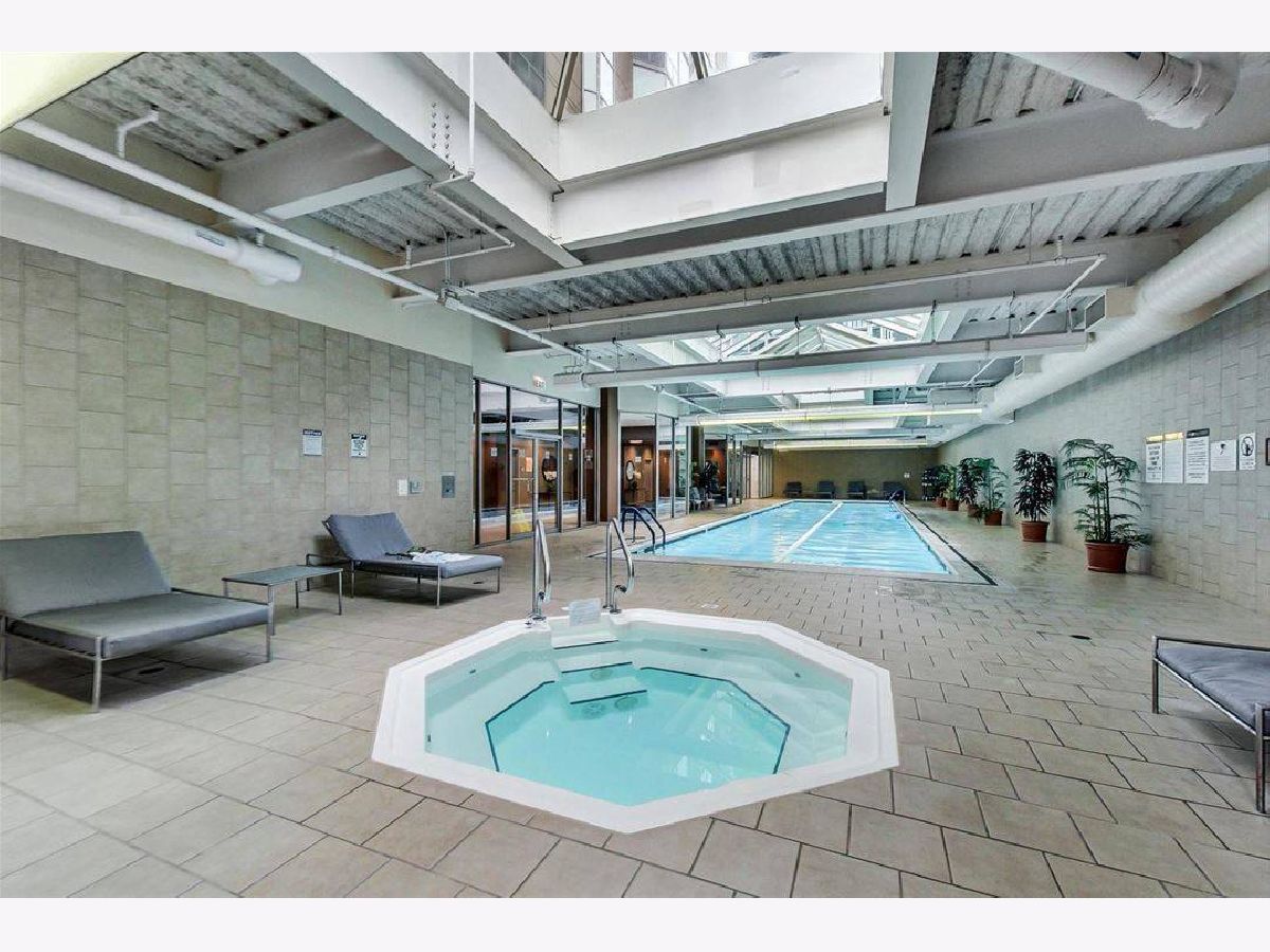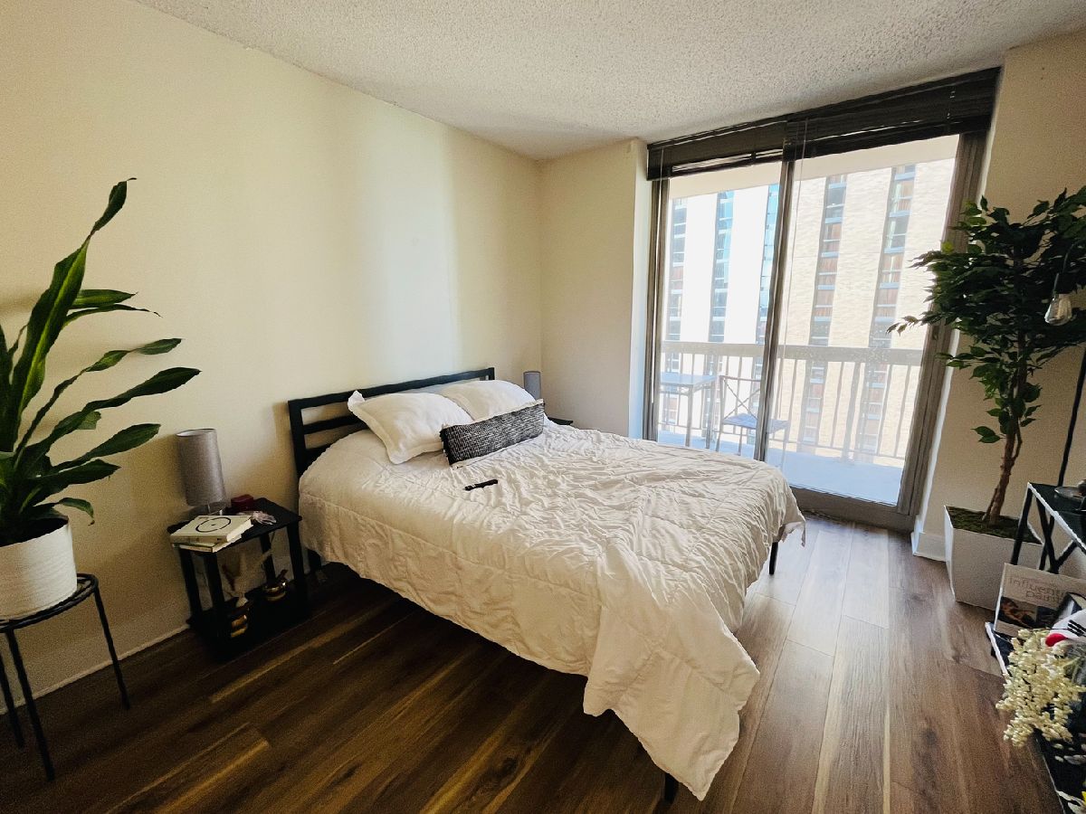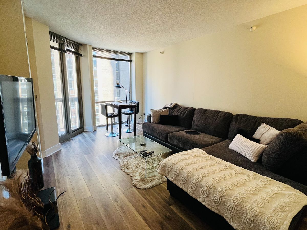 1 bed, 1 bath unit with large open breakfast bar, balcony, maple cabinets, pantry. Oversized vanity, in-unit washer/dryer. Full amenity building with a fitness center, indoor pool, sundeck, 24hr door staff, party room, business center, bike room, and access to the pedway. Heat, water, cable, and internet are included. The tenant pays for electricity.