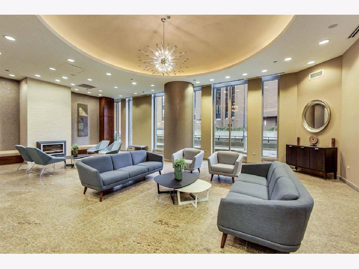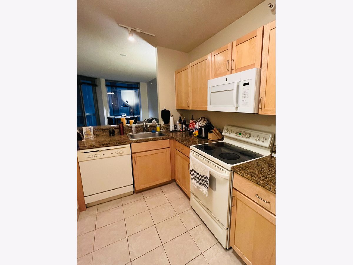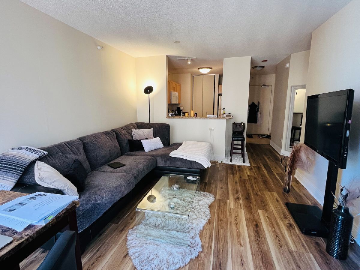 1 bed, 1 bath unit with large open breakfast bar, balcony, maple cabinets, pantry. Oversized vanity, in-unit washer/dryer. Full amenity building with a fitness center, indoor pool, sundeck, 24hr door staff, party room, business center, bike room, and access to the pedway. Heat, water, cable, and internet are included. The tenant pays for electricity.