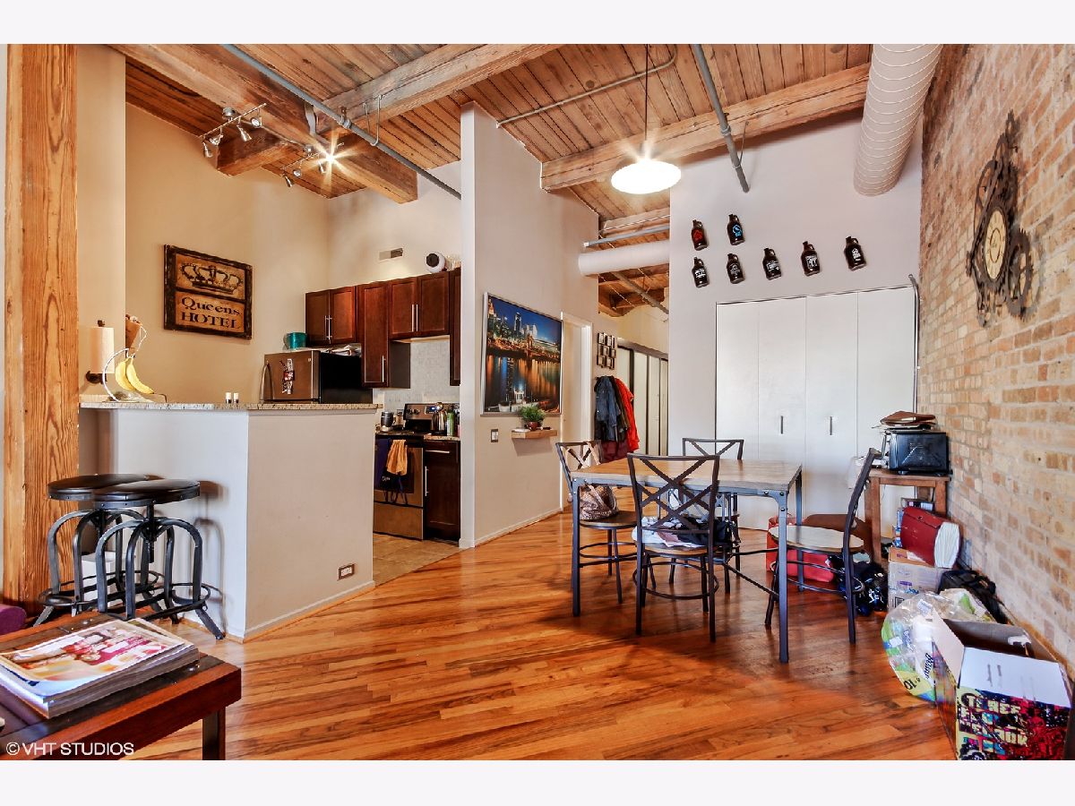Great TOP FLOOR timber loft unit. Timber beam and brick features with two adjacent floor to ceiling brick walls. If you love a unit with a ton of great character, this is the perfect unit for you! Building Features Rooftop Deck,Dry Cleaning Pickup and Drop off. Prime Downtown Location in the heart of River North. Easy commute - a block off the Brown/Purple Line Stops! Laundry in building. $54 additional monthly building fee covers cable/internet. Lease will ready $1654/month