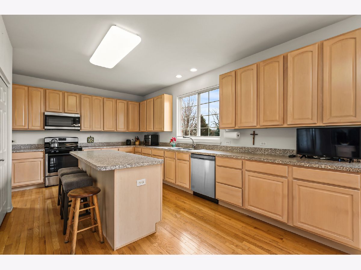 Stunning 5-Bedroom Home in Royal Troon with Park Views. Beautifully maintained 5-bedroom, 3.5-bath home offering approximately 3,692 sq ft, ideally located on a premium lot in sought-after Royal Troon of Gregg's Landing. This bright and spacious home features an open floor plan with a dramatic two-story foyer and living room, filling the space with natural light. Main level highlights include hardwood flooring throughout, a double staircase, and a large kitchen with 42" maple cabinets, center island, and ample storage. The formal dining room with butler's area is perfect for entertaining, while the family room offers a cozy fireplace. Convenient first-floor laundry/mudroom and a 3-car garage. The primary suite features vaulted ceilings, two walk-in closets, and a private bath with Jacuzzi tub. Full unfinished basement provides excellent storage. Recent updates include new roof, freshly painted exterior, new microwave and stove, plus newer dishwasher and refrigerator. Enjoy a beautiful open backyard with scenic park views. Prime location close to parks, golf, shopping, and dining.