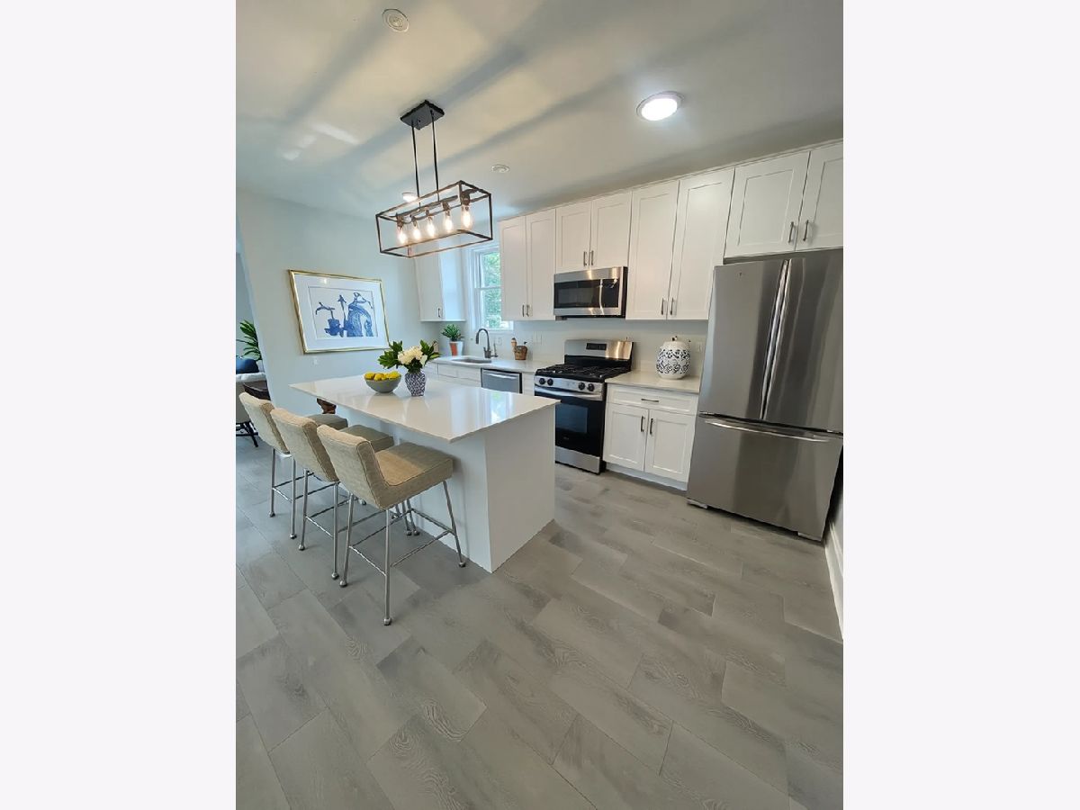 Step inside to discover a beautifully renovated 3 bedroom, 1 bathroom apartment. This top floor unit offers excellent natural light thanks to east, south, and west views. New flooring, a fresh coat of paint, and stylish new lighting fixtures throughout enhance the space. The brand-new kitchen features white cabinetry, quartz countertops, a convenient center island, and a full suite of stainless steel appliances. The updated bathroom includes a new vanity, lighting, tile, and a linen closet. Additional storage is available on the back porch, and on-site coin laundry is provided-a common outdoor area with grills, patio furniture, a TV, and ambient lighting. Located in one of Chicago's most vibrant neighborhoods, this unit is move-in ready and waiting for you to make it your own. Zoned parking out front allows for easy street parking, and the Healy Metra station is just a short walk away.