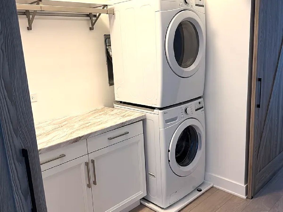 **Available NOW - Brand new construction in the heart of downtown Naperville!** Just **7 blocks to the Metra station**, this upper unit** combines modern farmhouse style with urban convenience. Perfectly located within acclaimed District 203 schools and steps from Centennial Beach, the Riverwalk, shopping, and award-winning restaurants, this home makes downtown living effortless. Inside, you'll find soaring 9-foot ceilings, Marvin windows with built-in blinds, and durable wide-plank luxury vinyl floors throughout. The open-concept great room flows seamlessly to a **22' x 10' covered patio**, perfect for entertaining or relaxing. The chef's kitchen boasts stainless steel appliances including a side-by-side refrigerator, LG dishwasher, 5-burner LG gas range with hood, garbage disposal, and a large entertainment island with storage. Soft-close cabinets and drawers complete this stylish, functional space. The spacious primary suite offers floor-to-ceiling windows, a ceiling fan, walk-in closet, and spa-inspired bath with dual vanity and oversized walk-in shower. Two additional bedrooms (or one bedroom plus flex office) and a second full bath with dual vanity and tub/shower combo provide versatility for modern living. A convenient powder room, in-suite washer and gas dryer, and abundant storage add to everyday comfort. Additional highlights - central air, gas heat, 50-gallon hot water heater, a brick and stucco exterior, and cable-ready connections. The attached 2-car garage is EV-ready with a Level 2 charging outlet. Two-year lease preferred. Monthly rent to be paid via electronic transfer/direct deposit. Tenant responsible for all utilities and internet. Rent includes lawncare and snow removal. No smoking permitted on premises.