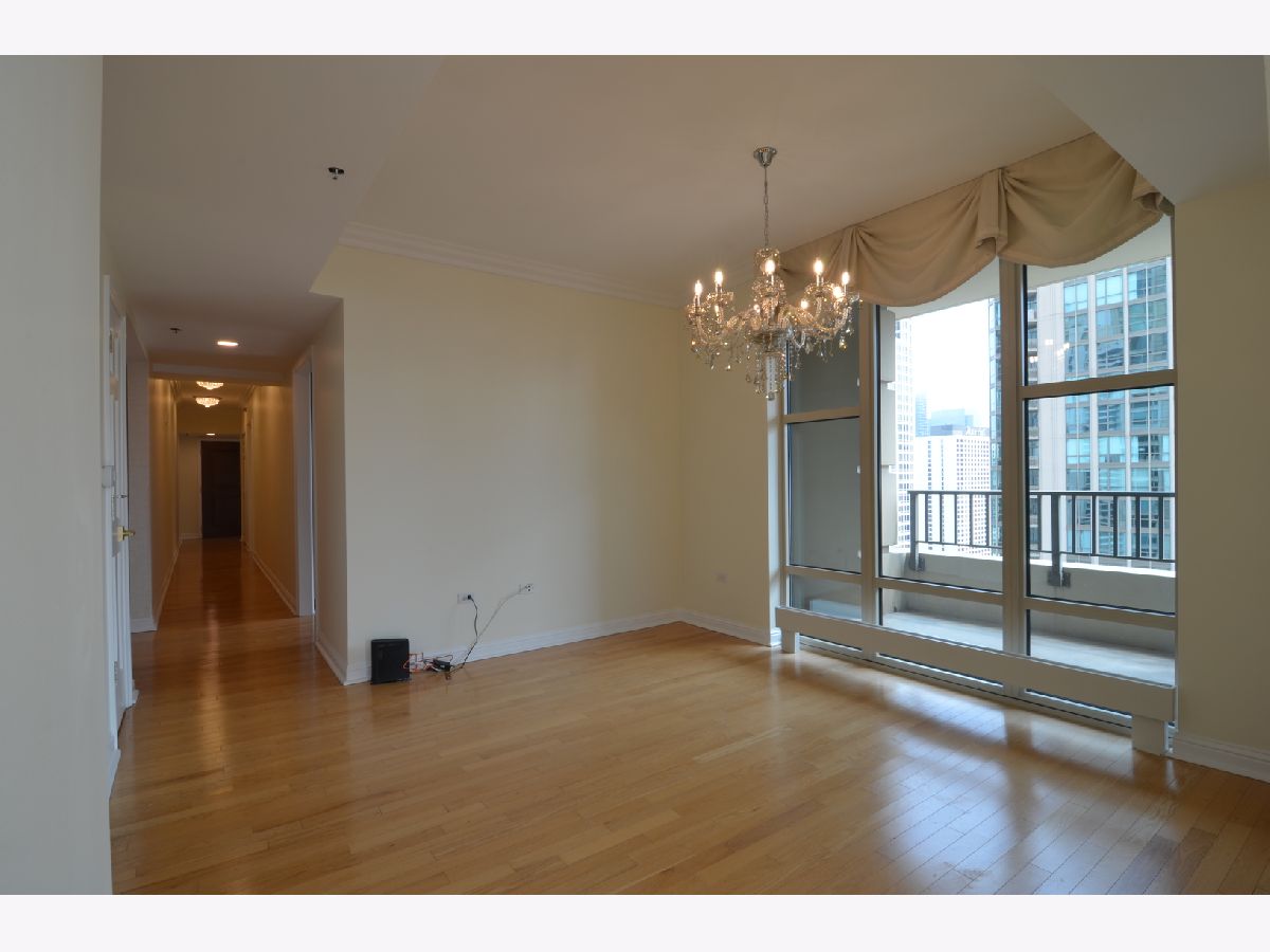 Enjoy city living in the coveted Fordham building that offers a spacious 3-bedroom 3-bathroom unit. This unit has a flowing floor plan, sweeping city views overlooking the city South, West side & offer two private balconies. This unit offers a well-designed layout that has hardwood floors throughout the main living areas and plush carpets in the bedroom. The living area is spacious in size and has an attached dining area and a breakfast nook space. As you enter the well-designed kitchen you'll notice the ample counter space, tile backsplash, matching black appliances and ample cabinetry storage. Once you pass the kitchen you will walk towards the master bedroom and second bedroom. The master bedroom is exceptionally large in size and offers two separate walk-in closets and has one of the balconies attached to it. In addition to that, you have the ensuite master bathroom which has a dual vanity sink with large vanity mirror, soaking tub and separate walk-in shower. As you make your way to the second bedroom you will find the laundry closet that has a full-size side by side washer & dryer with ample storage above the machines. The second bedroom has a walk-in closet and attached bathroom with a separate tub and walk in shower. Now the third bedroom is located right next to the living room and has dual sliding doors that can open to the living but also has a separate entrance if you want to keep it closed. This is a true third bedroom that has its own closet space and great West views. Now the third bedroom can also function as a guest room, office, den, playroom or extended living room. The third bathroom is located right outside of the third bedroom and is accessible for all guests to use. With that being said rent for the unit will include heat, air, water, cable, gas. The Fordham is a full amenity building that has a large lobby with seating next to a fireplace, 24-hour door staff with on-site management & maintenance. fitness center, indoor pool, sun deck, sauna, party room, theater room, wine cellar, cigar room, valet cleaners, receiving room and dog run. The Fordham is in the immensely popular River North neighborhood and is near many great options from dining, entertainment, shopping, transportation, and iconic Chicago buildings. Contact us to schedule a showing and see why you will want to make the Fordham your next home. Pets are being handled on a case-by-case situation and if approved will require a pet deposit and there is a weight limit of 30 lbs or less. There is an application cost of $75 per applicant. Security deposit of 1 month rent. The building does charge separate fees for moving and has elevator deposits. A single parking space is available for rent at $300.