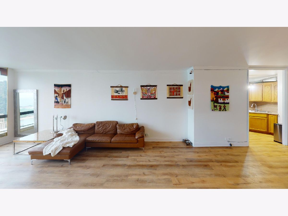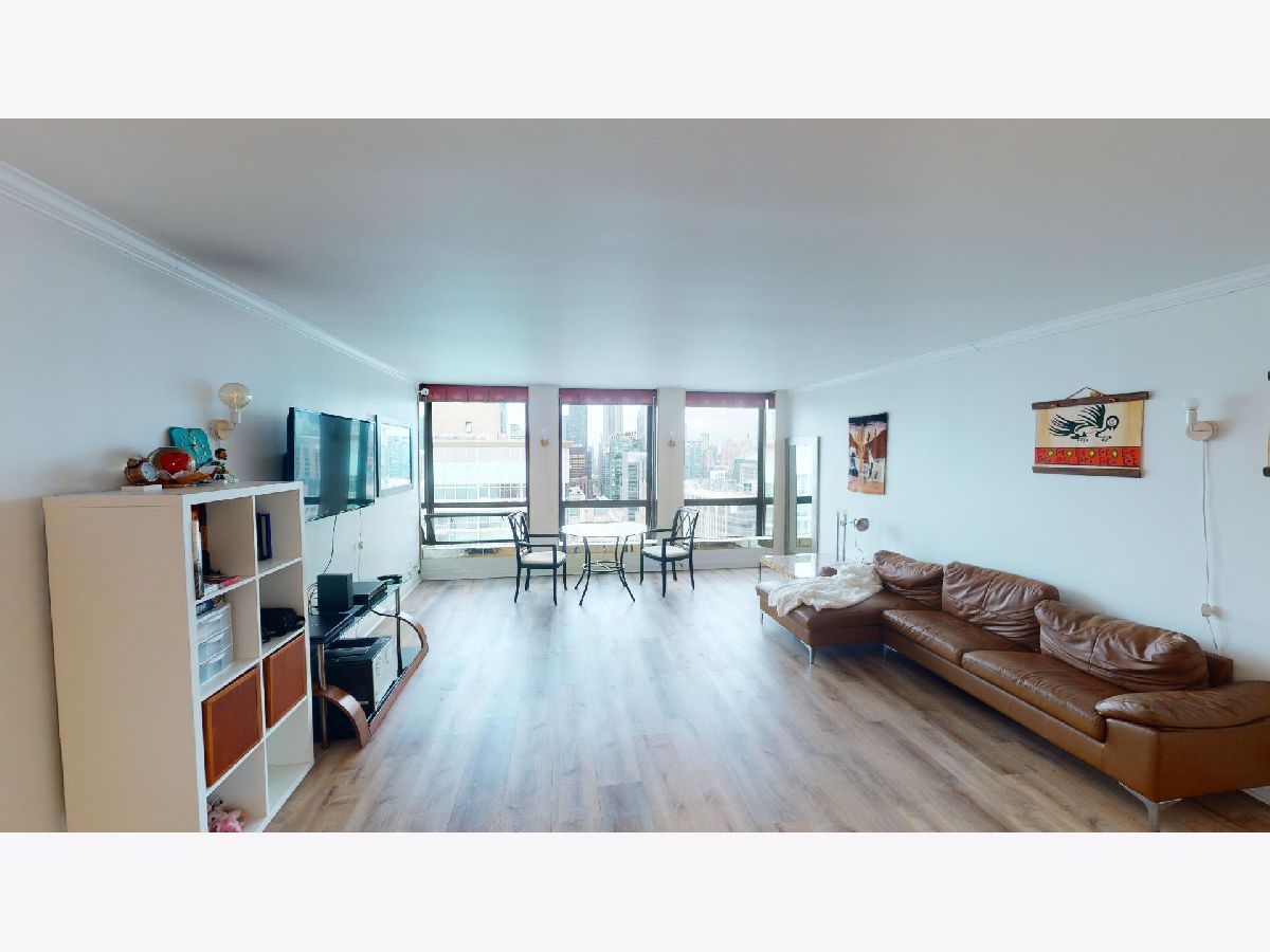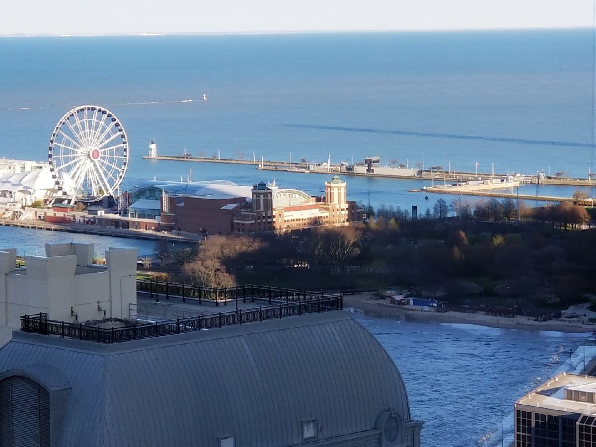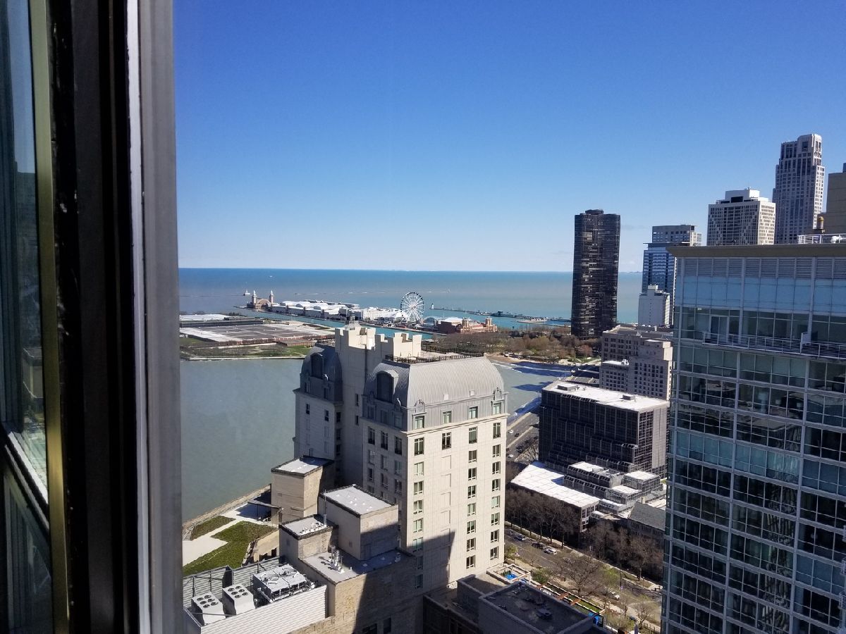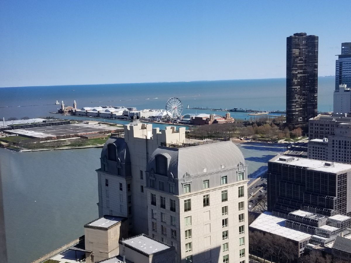 Located on the 43rd floor with views of Lake Michigan and Navy Pier, this spacious 1 bedroom, 1 bath condo features over 1000sf of living space and is available fully furnished! This is the largest one bedroom floor plan in the building! Water and sound proof hardwood looking vinyl floors flow seamlessly throughout the open floor plan. Dining room with custom wet bar. Over-sized living room is perfect for entertaining, with fantastic city and lake views. Updated kitchen appliances. Graciously sized master suite with walk-in cedar closet. The bathroom is equipped with a walk-in rain shower and double sinks. Prime Gold Coast / Streeterville location within walking distance to shops, restaurants, Lake Shore Park, transportation and more! You can view the fireworks, the color changing Ferris Wheel and the Air & Water Show from the comfort of your living room! There is a convenience market 1 block away in the black Mies building and Lake Shore Park is a block south. The Plaza on Dewitt is a full amenity building with 24 hour doorman, rooftop sundeck, outdoor pool, party room, fitness center, restaurant and salon! The pool is easy to access via 2 flights of stairs or elevator and it has a restroom with showers. High speed internet and cable included in monthly rent. Leased garage parking available.