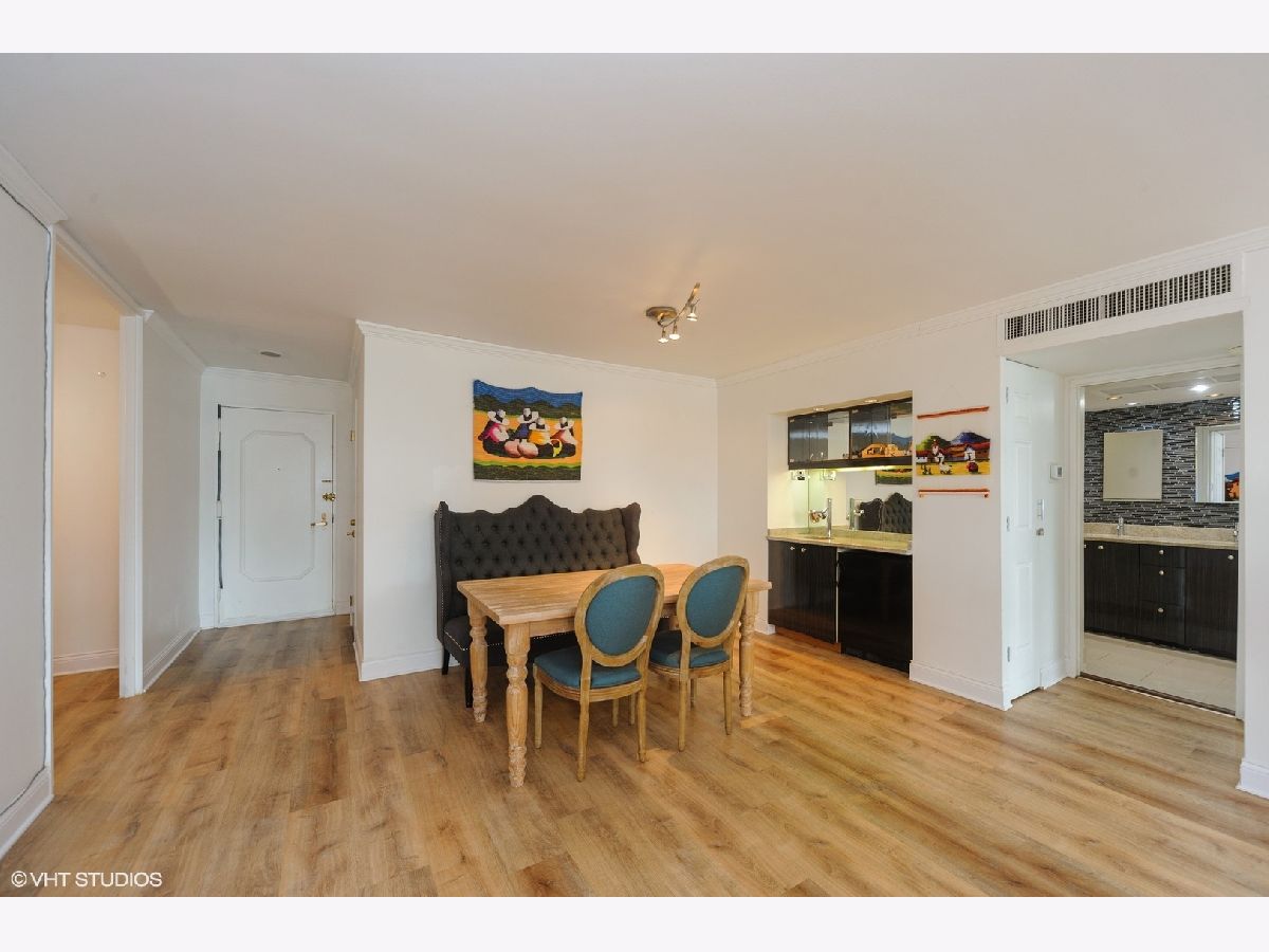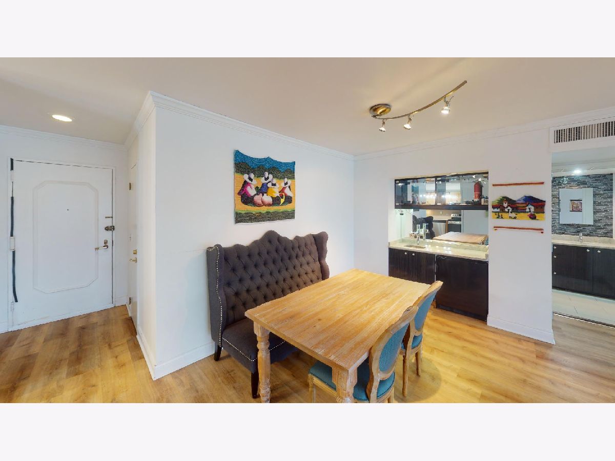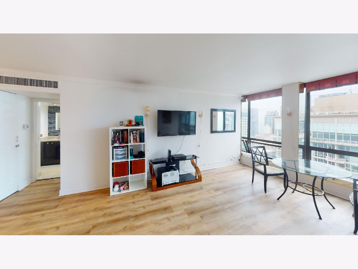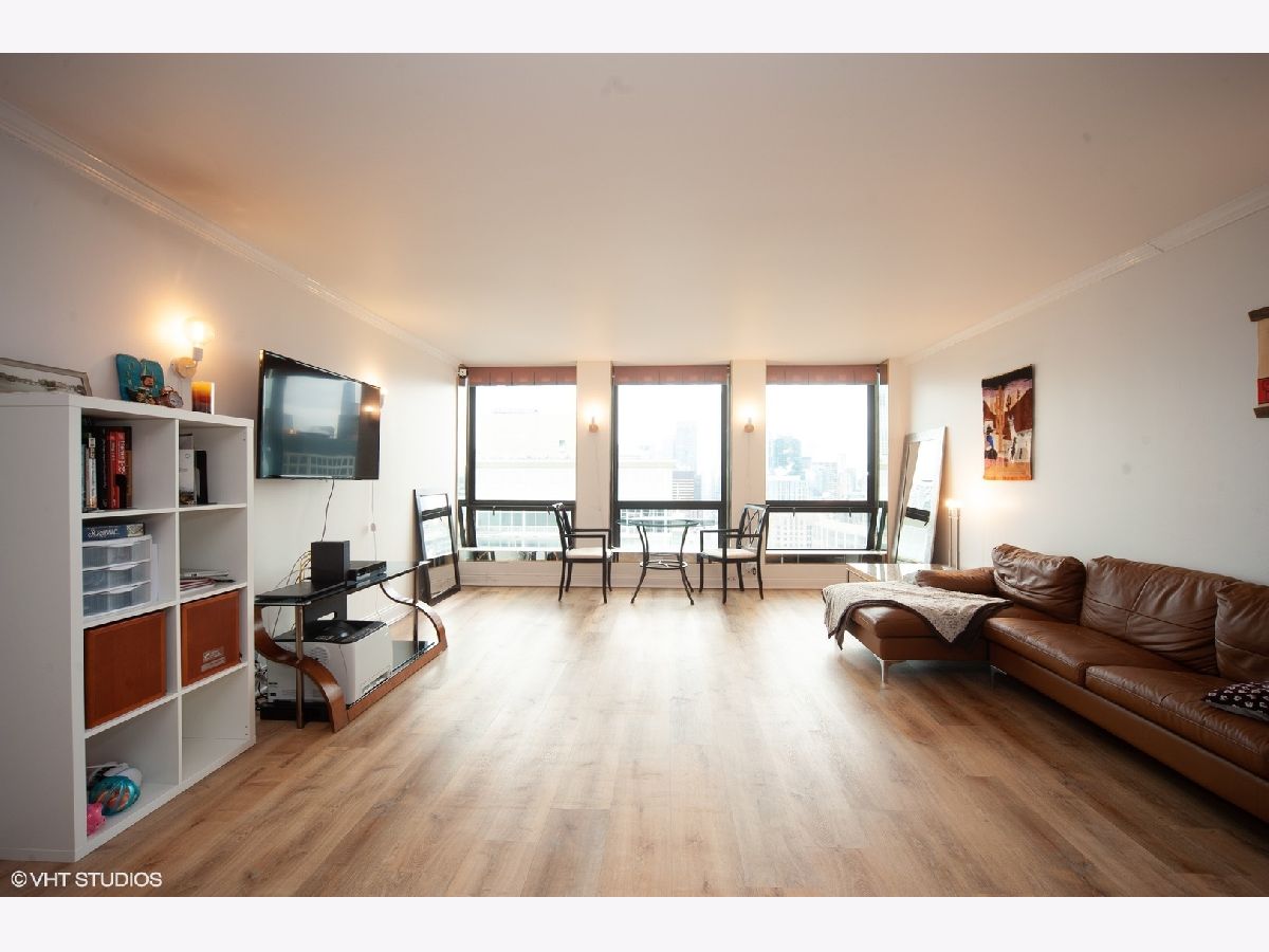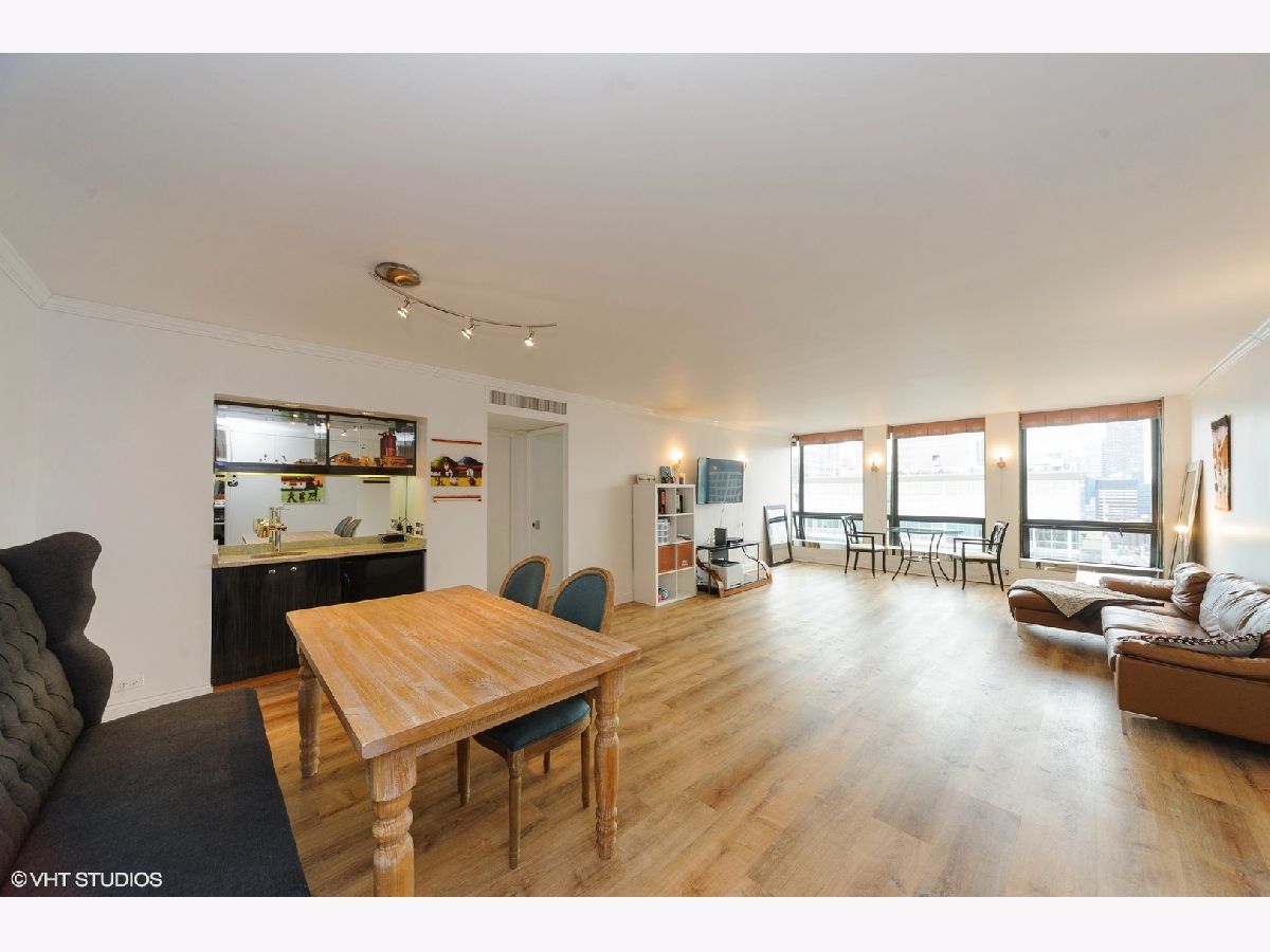 Located on the 43rd floor with views of Lake Michigan and Navy Pier, this spacious 1 bedroom, 1 bath condo features over 1000sf of living space and is available fully furnished! This is the largest one bedroom floor plan in the building! Water and sound proof hardwood looking vinyl floors flow seamlessly throughout the open floor plan. Dining room with custom wet bar. Over-sized living room is perfect for entertaining, with fantastic city and lake views. Updated kitchen appliances. Graciously sized master suite with walk-in cedar closet. The bathroom is equipped with a walk-in rain shower and double sinks. Prime Gold Coast / Streeterville location within walking distance to shops, restaurants, Lake Shore Park, transportation and more! You can view the fireworks, the color changing Ferris Wheel and the Air & Water Show from the comfort of your living room! There is a convenience market 1 block away in the black Mies building and Lake Shore Park is a block south. The Plaza on Dewitt is a full amenity building with 24 hour doorman, rooftop sundeck, outdoor pool, party room, fitness center, restaurant and salon! The pool is easy to access via 2 flights of stairs or elevator and it has a restroom with showers. High speed internet and cable included in monthly rent. Leased garage parking available.