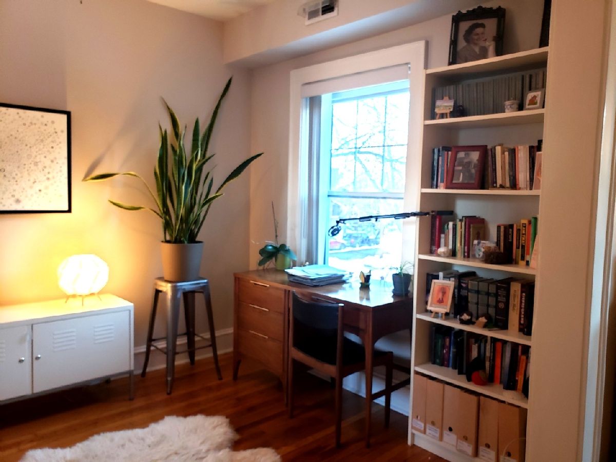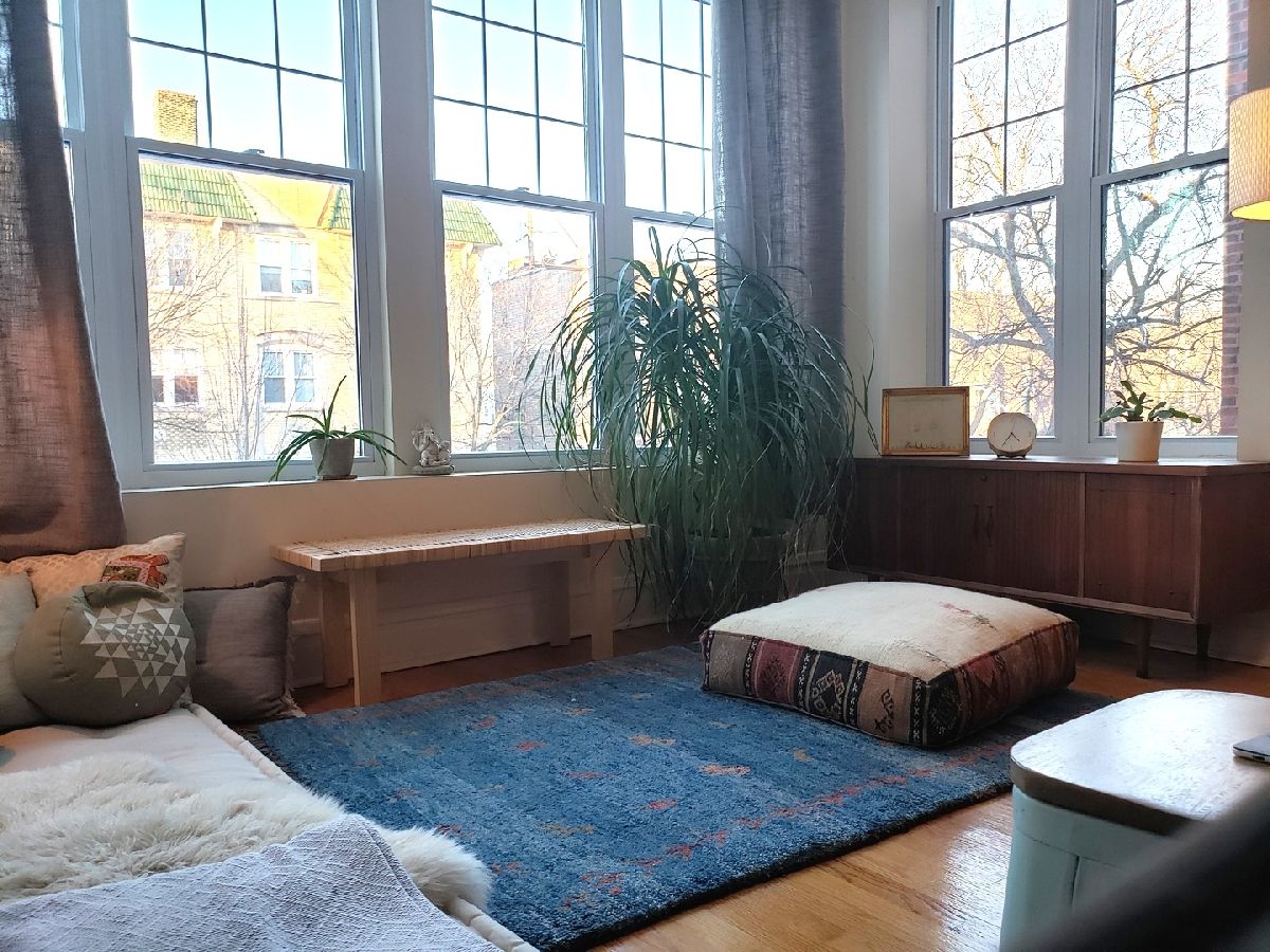 Lincoln Square/Ravenswood Gardens area condo for rent. Great layout for in-home work: two bedrooms + sunroom + a large den with decorative fireplace off the living room that could be an extra office/study space. Charming vintage details combined with modern conveniences like in-unit laundry, central air and individually controlled heat. Garage parking included in the rent! Large, private storage closet in the clean basement. Private rear deck. Common area grassy back yard. Short walk to CTA Brown line Rockwell train station and tons of local places to eat and shop.