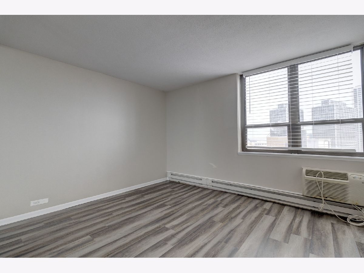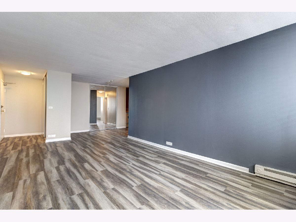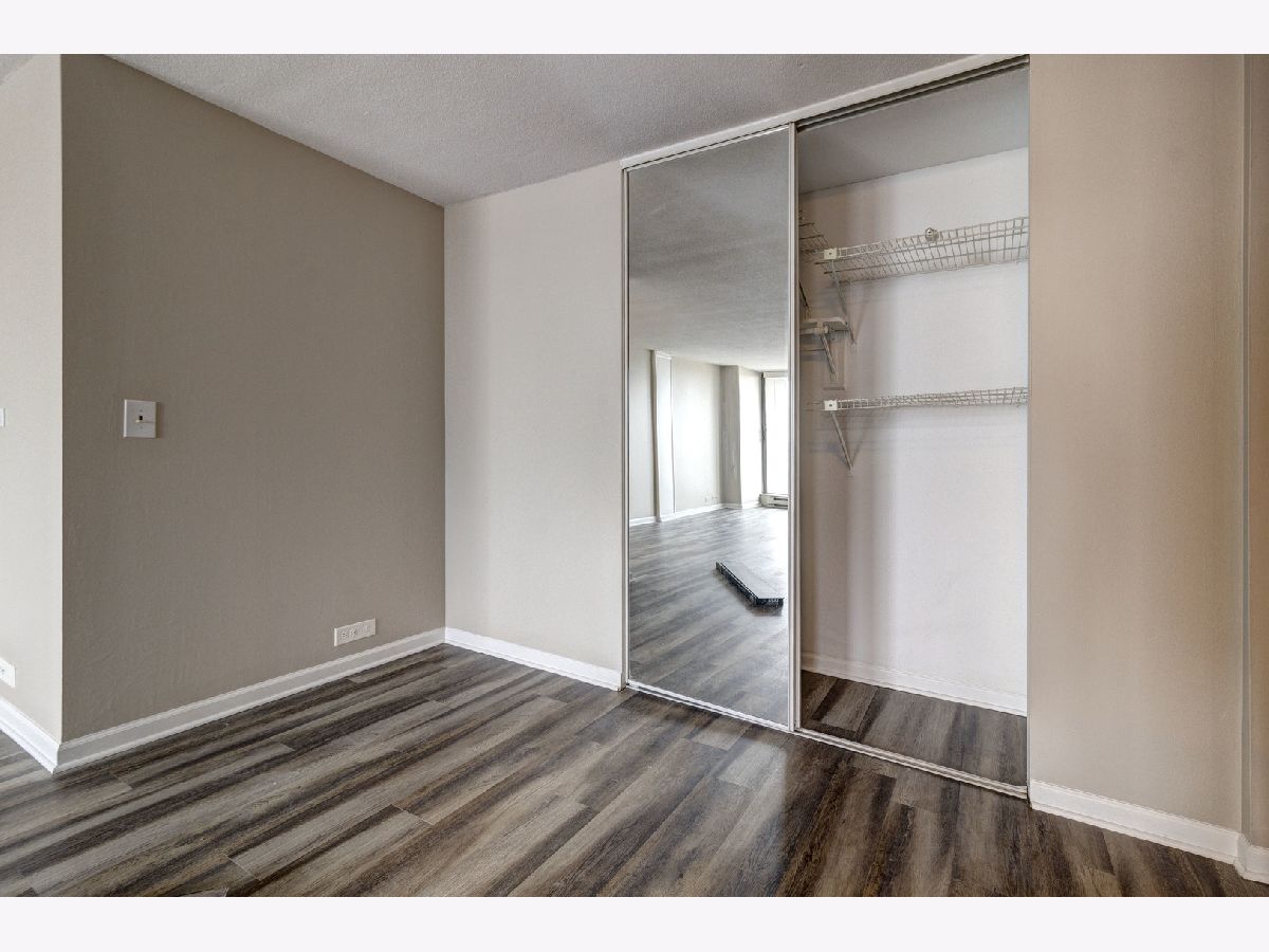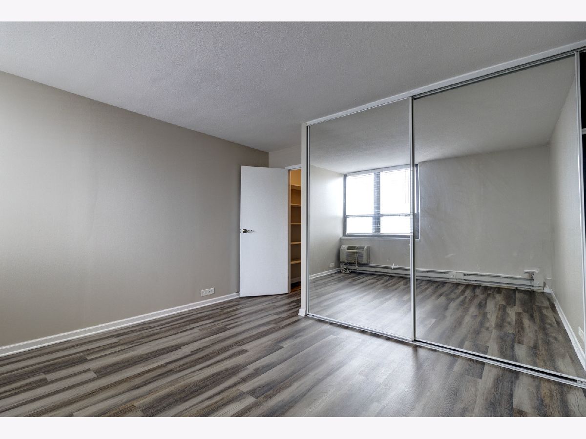 Amazing lake views from renovated unit with its own private balcony. Freshly painted with brand new shades and hardwood laminate flooring throughout. Wonderful floorplan with plenty of closet space. Kitchen with black granite counters, white appliances and stone backsplash. Garage parking IS available in building through the owner for additional $168 per month. Heating and cooling is electric, covered by tenant. Building features on site management, bike room, garage parking, laundry room, rooftop deck and elevator. Close to lake, parks, restaurants and transportation. 2 Small pets under 25 lbs allowed. $250 pet deposit and $40/month pet rent for dogs and cats.