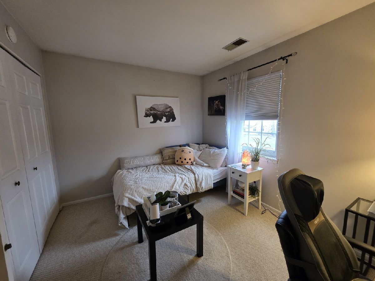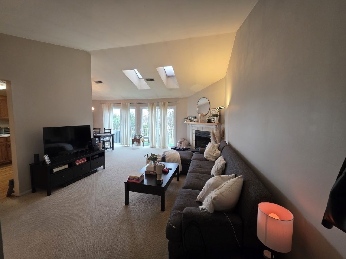 Sunny, spacious, and ready for you-welcome home! This inviting unit features a combined living and dining area with vaulted ceilings and skylights, filling the space with natural light. The kitchen is equipped with stainless steel appliances and a HUGE walk-in pantry, offering both style and functionality. The king-sized primary bedroom provides a comfortable retreat with a walk-in closet, while the second bedroom includes double closets for plenty of storage. When the cooler months return, enjoy cozy evenings by the gas fireplace. Double French doors open to a large balcony, bringing in even more light and extending your living space outdoors. Located in a quiet neighborhood with access to an outdoor pool and clubhouse, and conveniently close to major highways, dining, and Woodfield Mall. One pet allowed. No smoking.