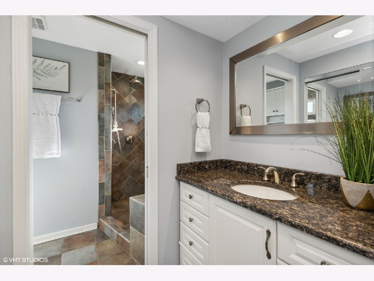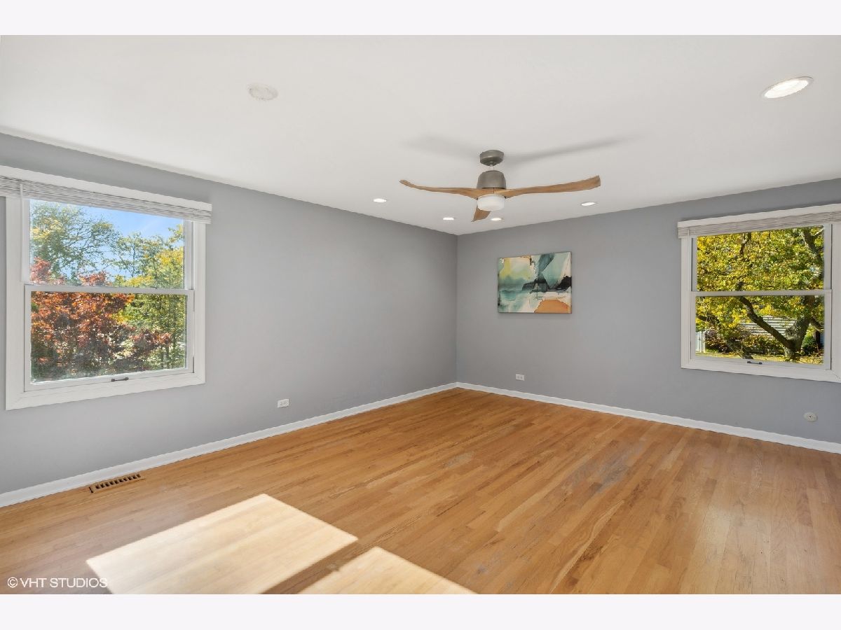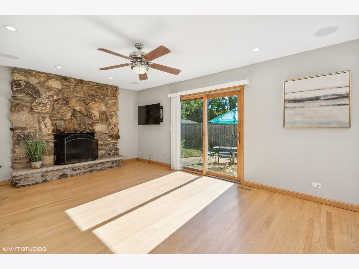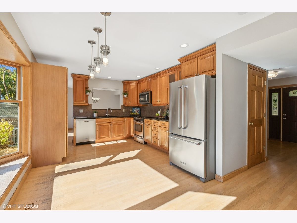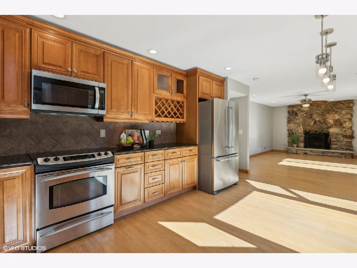 This beautiful Libertyville 4+1 bedroom home includes a renovated kitchen, bathrooms, mudroom, and basement, all with hardwood floors throughout. The eat-in kitchen features cherry cabinets with crown molding, granite countertops, stainless steel appliances, a tile backsplash, and a large bay window overlooking a private backyard with a waterfall, fenced yard, and spacious patio. The family room connects to the kitchen and has sliding doors to the backyard, plus a wood-burning fireplace. The basement offers plenty of space for kids, a home office, or a workout area. Upstairs, there are four roomy bedrooms, including a master suite with a renovated bath featuring a high-end shower and granite countertops. The hall bath also has upgrades, including granite countertops and a glass shower door. The functional mudroom is a highlight, offering ample storage and counter space. The home is located on a cul-de-sac in a Choice Zone for high school.