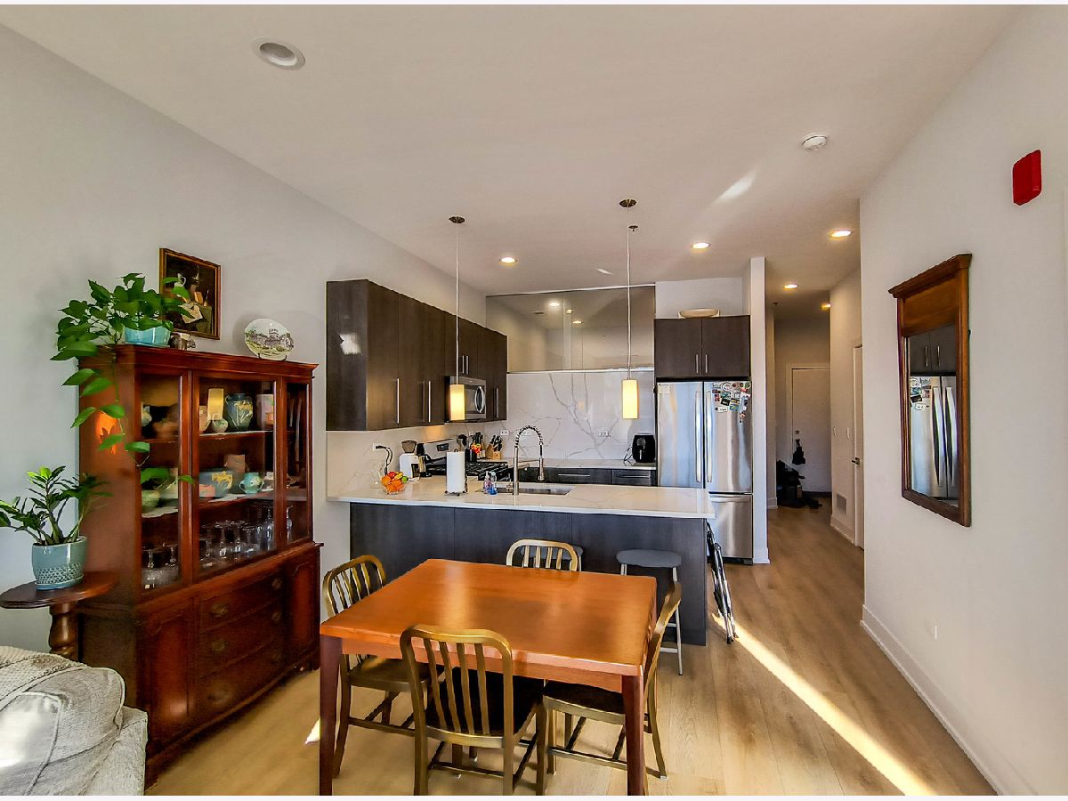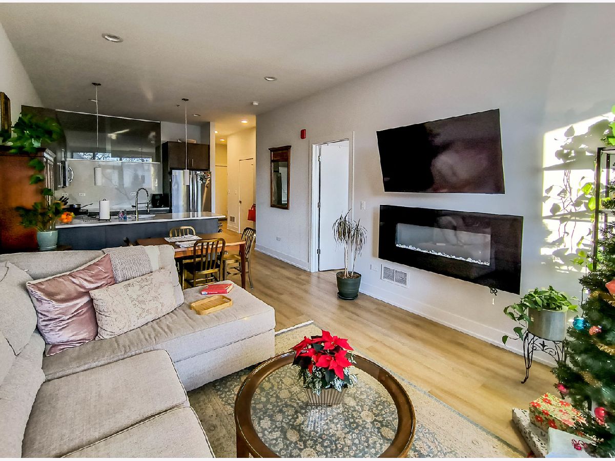 THIS IS A SUBLET from February 1st 2026 Through APRIL 30th 2026 with option to renew with management. NEW luxury 2-bedroom, 2-bath residence available in a NEW CONSTRUCTION building. Unit features stainless steel appliances, quartz countertops, modern flooring throughout, electric fireplace, window treatments, in-unit washer/dryer, walk-in closets, and a large private balcony. The open-concept layout offers a spacious living area with abundant natural light. The primary suite includes a walk-in closet with custom organizers and an en-suite bath with dual vanity and oversized shower. The second bedroom is generously sized with a walk-in closet and built-in organizers, and the guest bath features a tub/shower combination. Building amenities include a fitness center, resident lounge, heated garage parking (1 space included), Amazon Key, security cameras, package/mail room, video intercom, storage locker, and hot water included. Ideally located near Logan Square restaurants and coffee shops including 90 Miles Cuban Cafe, Lonesome Rose, Bang Bang Pie & Biscuits, and Revolution Brewing, with easy access to I-90/94, the CTA California Blue Line, and the 606 Trail.