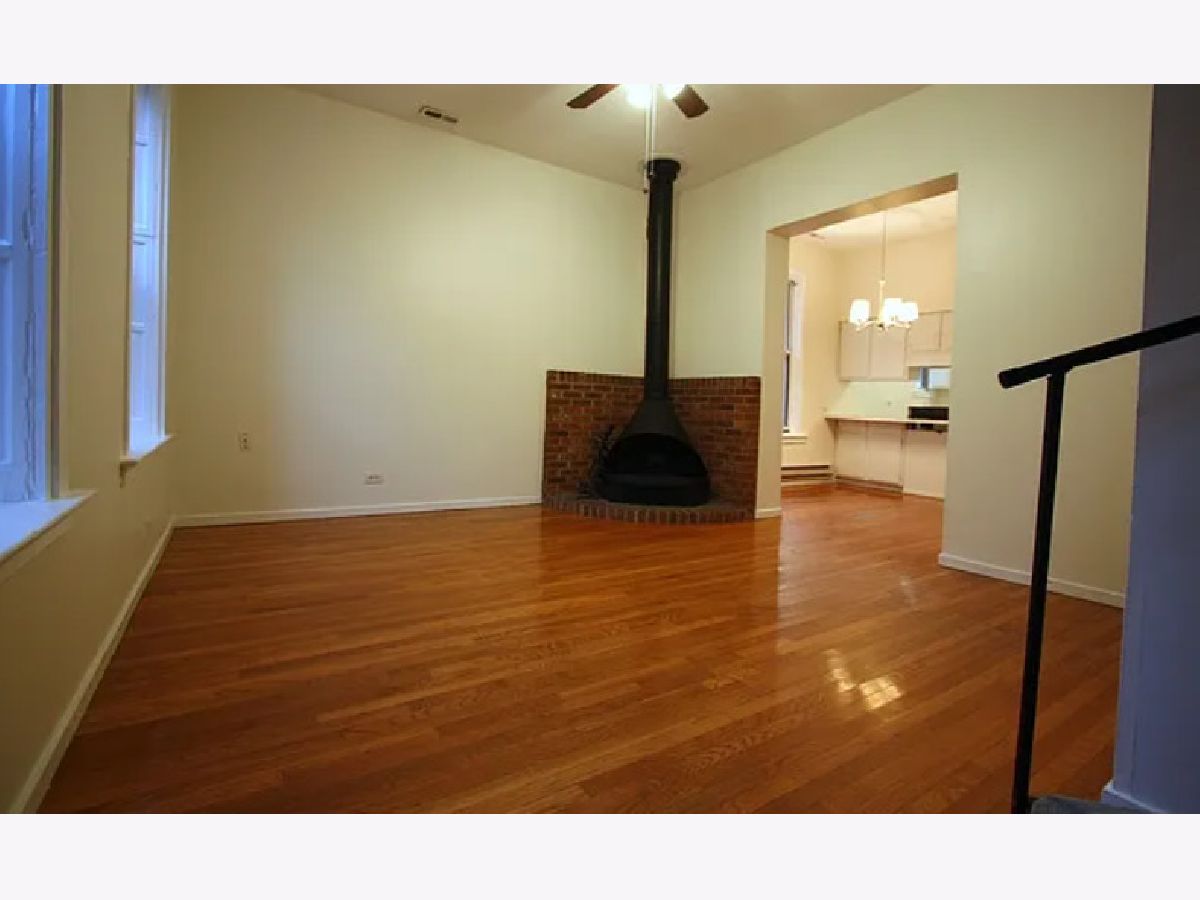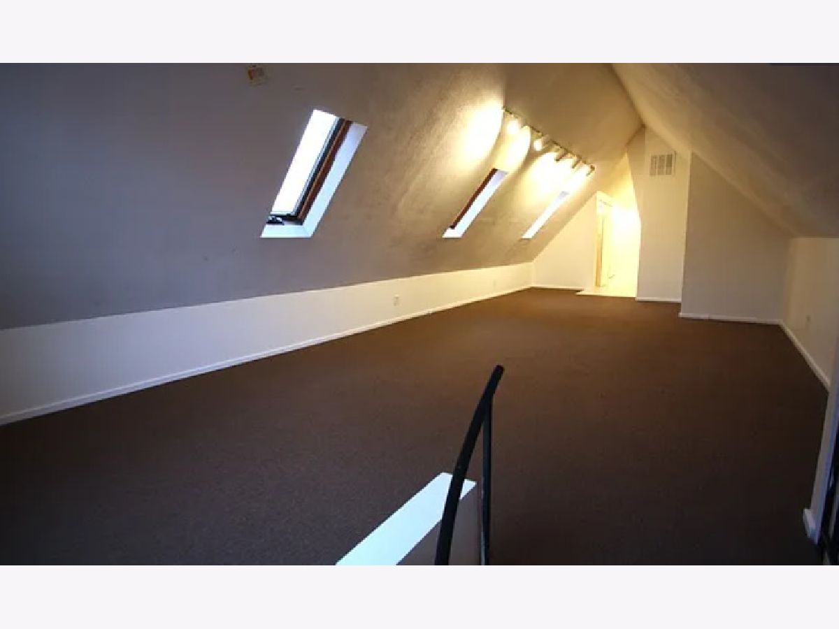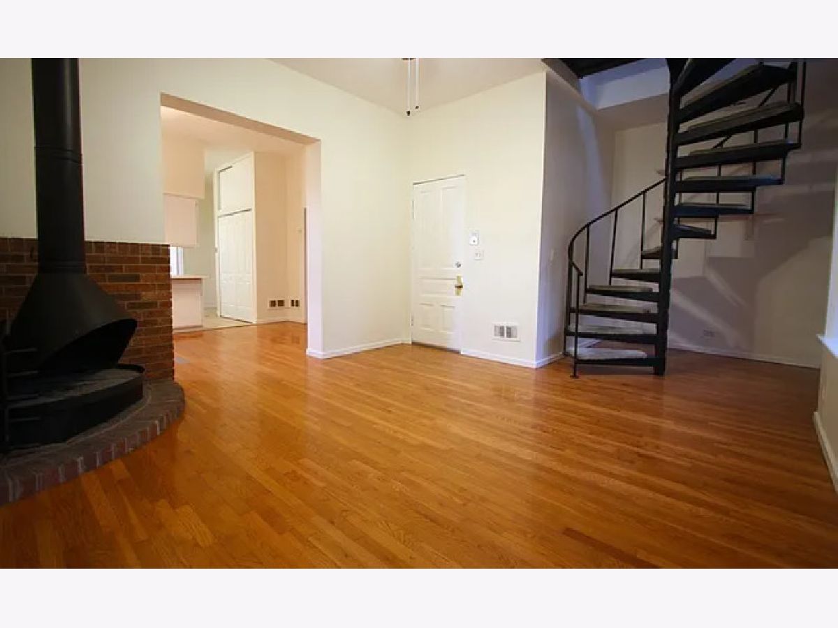 Features: hardwood floors in the living room on first level, high ceilings, spiral staircase leading to second level, kitchen with ceramic flooring, all white cabinets and appliances, dishwasher, counter top microwave, stove and refrigerator, large bathroom with ceramic tile flooring, over sized tub/shower, vanity with linen storage and medicine cabinet, first bedroom with carpet, can fit queen sized bed and large closet, second bedroom with carpet, will fit queen or full sized bed and has closet, second level with large open area, cathedral ceilings, skylights and track lighting, could be a third bedroom or additional living space, second bathroom upstairs with tile flooring and stand up shower, laundry room side by side washer and dryer and utility sink, gas forced heat and central air conditioning, shared front patio and two small back decks, steps to the CTA brown line Diversey stop NO SECURITY DEPOSIT $600 NIF, pets $300 one time per pet $100 admin