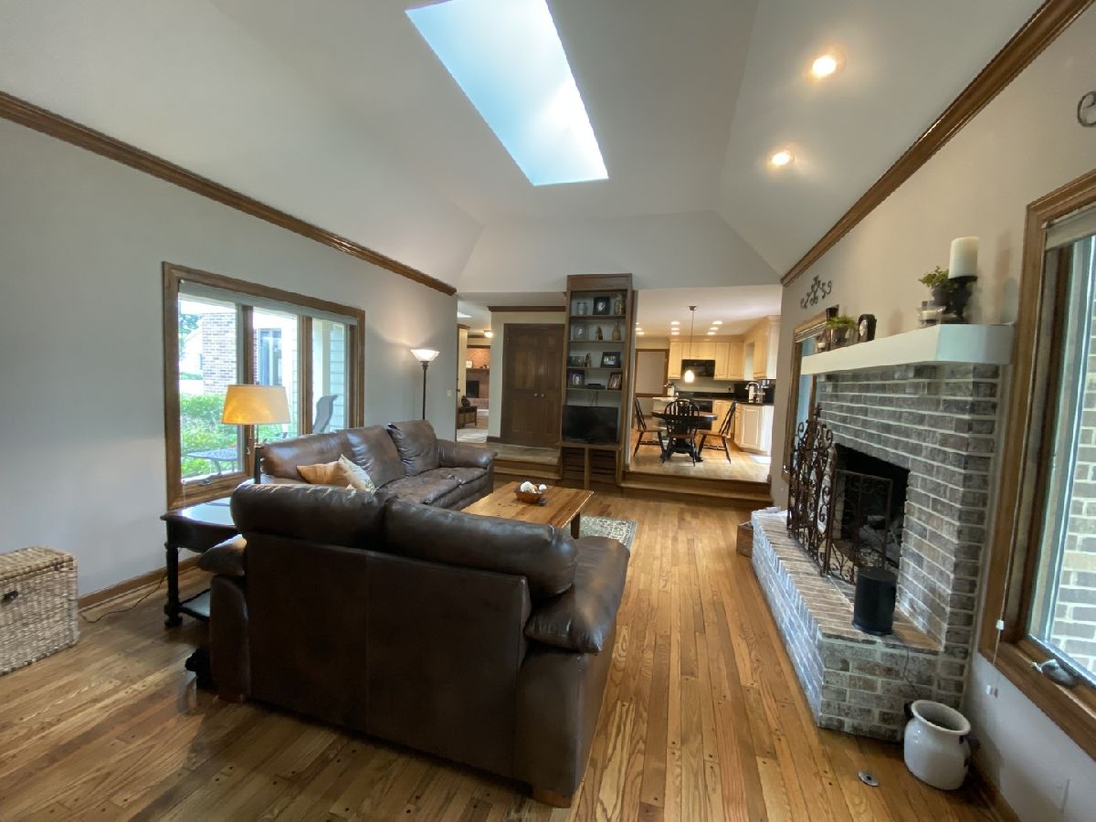 Well cared for home offers a 2 story foyer w/travertine floor, kit w/island, granite counters, walk-in pantry, no touch faucet, hot water dispenser. LR & FR with gas log FPs. Pocket bevl glass doors open LR to DR. Sunken office and Fam Rm. FR with vaulted ceiling and skylights. Heated sun room overlooking beautiful garden. Full fin basement w/ceramic tile floor, rec rm, pool table rm, kitchenette, exercise area, full bath and large unfinished storage area. Kitchenette with island, wine cooler, microwave and refrig. Great private cul-de-sac location. Lawn mowing and underground sprinkler system turn on/off included. Neutral top-down and bottom-up shades throughout house. This is a no smoking and no pet home. Please note NO SIGN IN YARD.