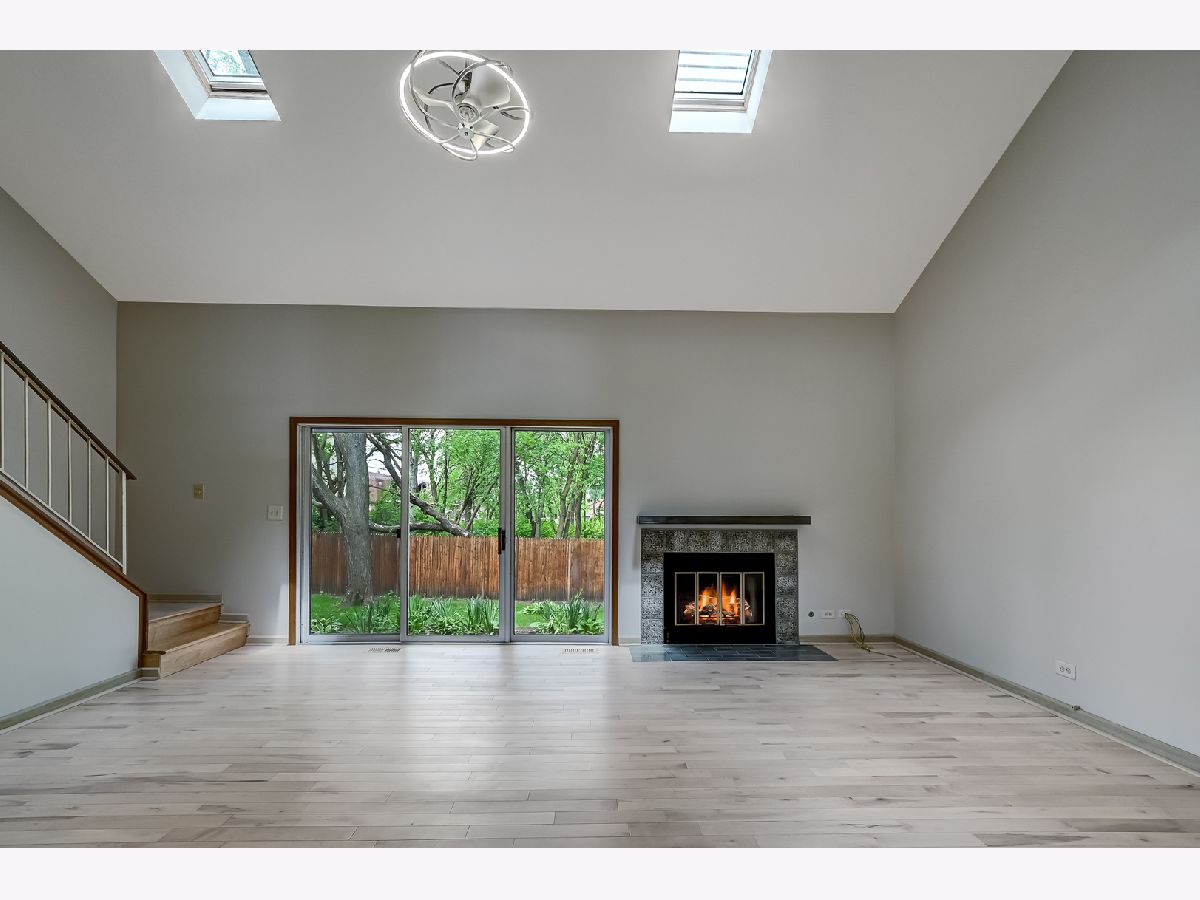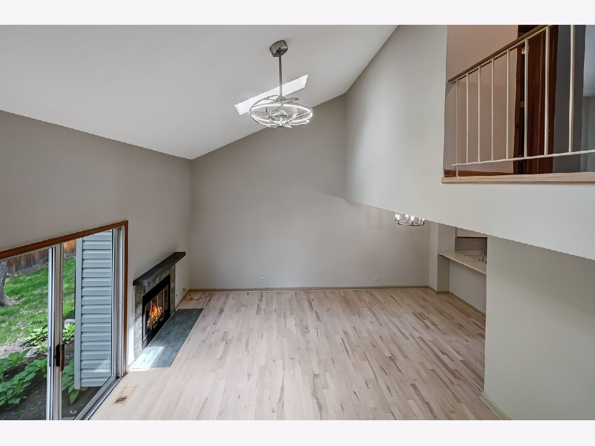Discover easy, private living in this inviting 2-bedroom, 1.5-bath townhome nestled on a quiet street. Designed with an abundance of natural light, this home is freshly painted, and features a welcoming floor plan, beautiful hardwood flooring throughout, and skylights. The cozy fireplace adds warmth and ambiance to the elegant living & dining areas. A sliding door leads to your own private patio and backyard, perfect for relaxation & entertaining. The eat-in kitchen has stainless steel appliances and bar seating. The master bedroom is a serene retreat with a walk-in closet, while the additional bedroom is generously sized. The updated bath add a touch of modern elegance to the home. In-unit washer/dryer for your convenience. Full, unfinished basement provides plenty of storage space. Parking includes a 1-car garage plus an extra space. Excellent location near schools, parks, a golf course, expressways, dining, & shopping. Credit check required, no smoking.