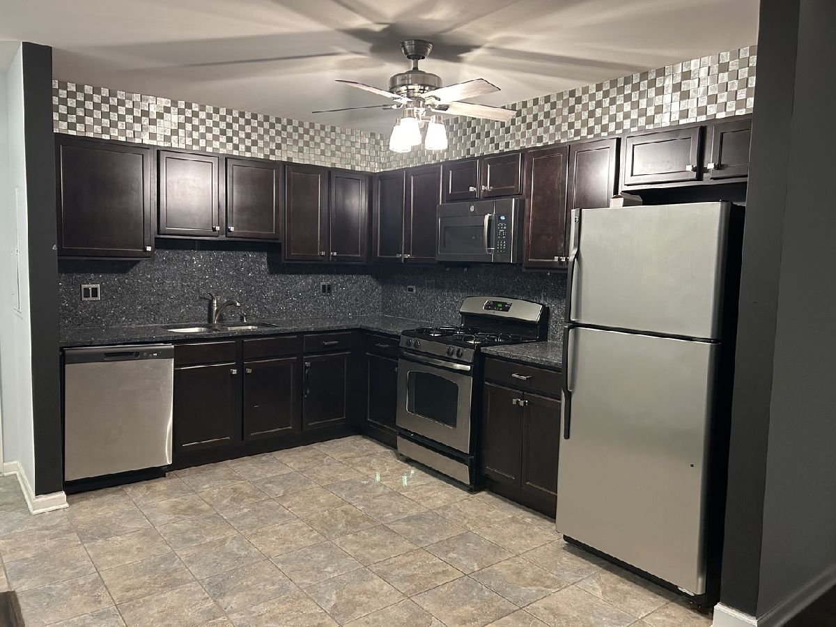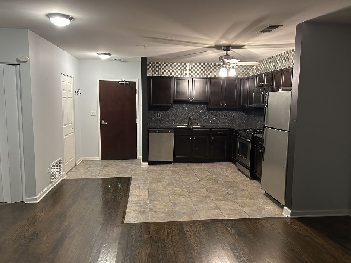 Bright and Spacious 2 bedroom, 2 bath condo features Moca/Jaco Bean tongue and grove hardwood floor throughout, kitchen with full granite counter top with backsplash, adjustable lighting under cabinet, brushed steel hardware in kitchen and bath, stainless steel glass mosaic trim with lighting, baths with new vanity light fixtures and master bath has new glass shower wall/door. Hunter Douglass custom blinds. In-unit laundry. Remodeled balcony. One outside parking spot. Building offers elevator access, outdoor pool, party room and gym. Walking distance to Metra, shopping and restaurants. No pets, no smoking.