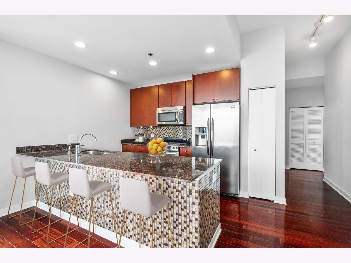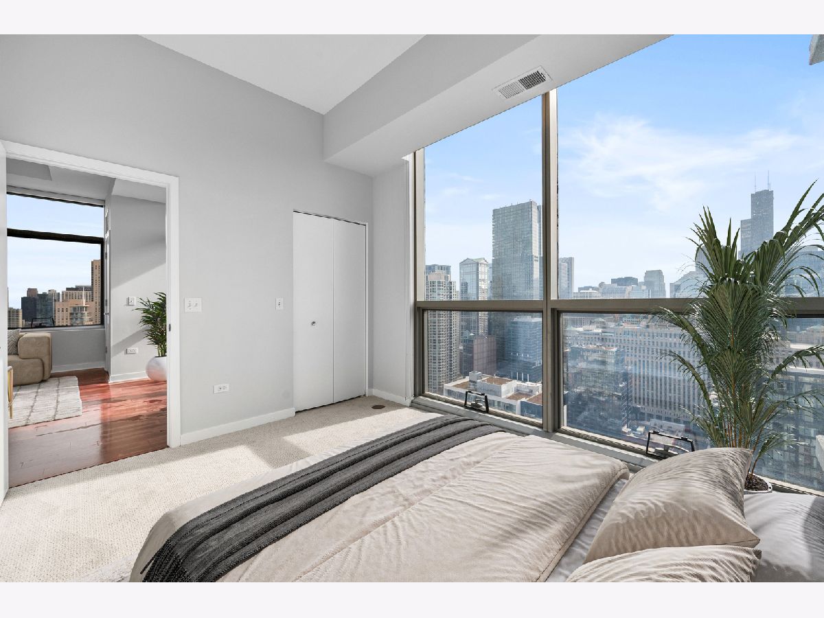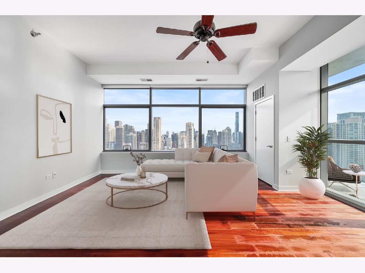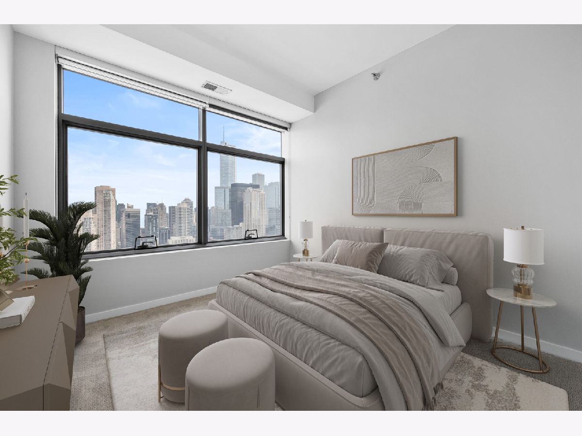 Bright & spacious corner 2 Bed, 2 Bath home in River North's hottest building! Luxury finished hardwood flooring. Floor to ceiling windows with south east facing views of the city. The kitchen boasts stainless steel appliances and granite countertops. Washer & dryer conveniently placed in unit. Parking is for an additional $250. The building offers 24-hour door staff, a fitness center, state of the art roof deck with grills, fire pit & plenty of seating. Steps to Brown/Purple line, CVS, restaurants & nightlife.