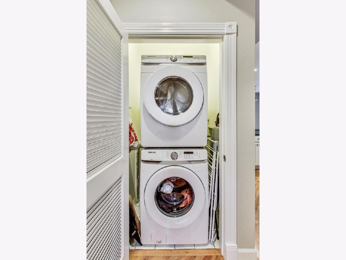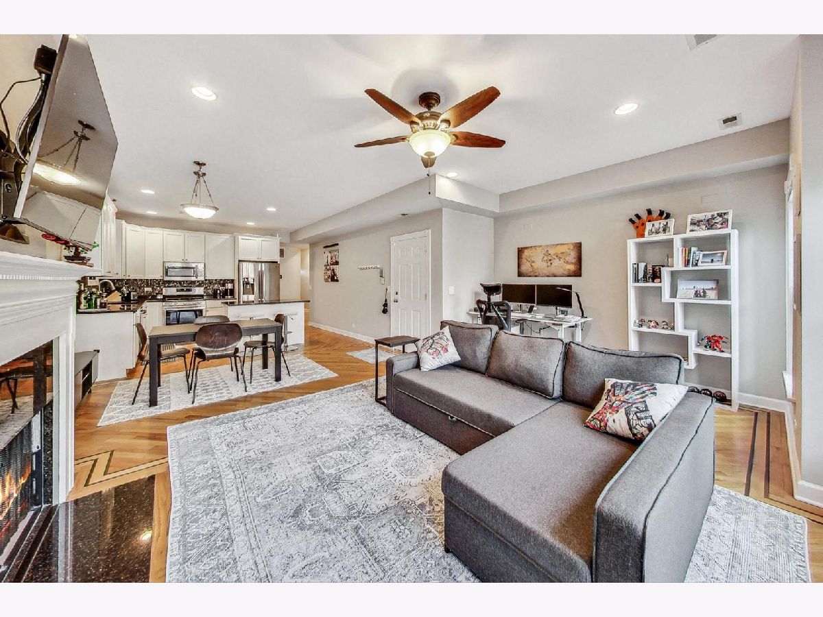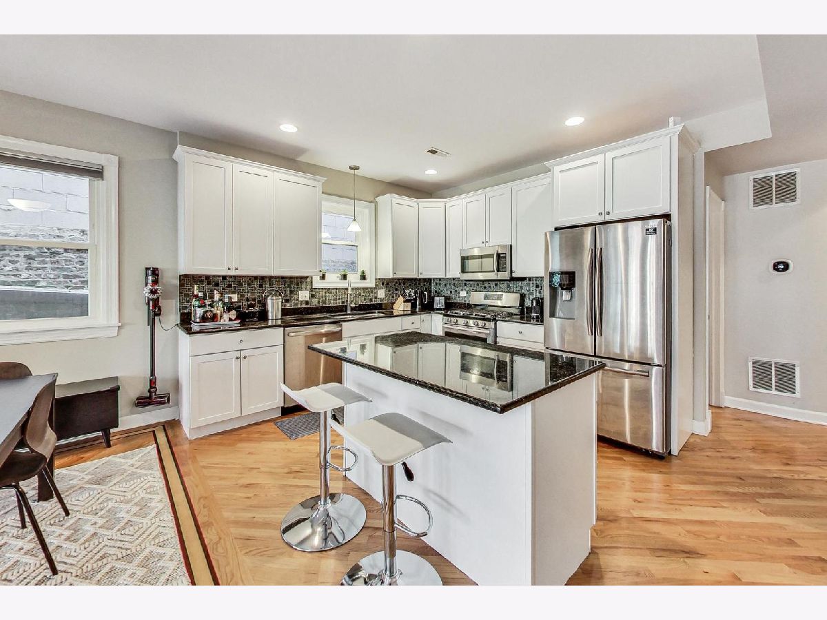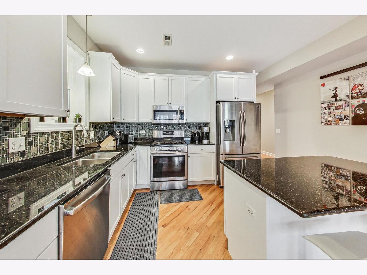 Nestled on a tranquil, tree-lined one-way street in Chicago's Hamlin Park neighborhood, this modern condo brims with natural light. The inviting open layout boasts diagonal hardwood floors, with inlaid details, white cabinetry, recessed lighting, a built-in work nook, organized closets, and an in-unit washer and dryer. The kitchen shines with granite countertops, stainless steel appliances, and a convenient island for casual dining and meal prep. The ensuite primary bedroom opens onto a private, enclosed deck-perfect for a quiet retreat. One garage parking spot is included. This smoke-free building sits near the #49, #49X, and #77 bus lines and is just minutes from Jewel-Osco, Mariano's, Hexe Coffee Co., Costco, and the amenities along the Clybourn Corridor. Owner prefers 18 month lease.
