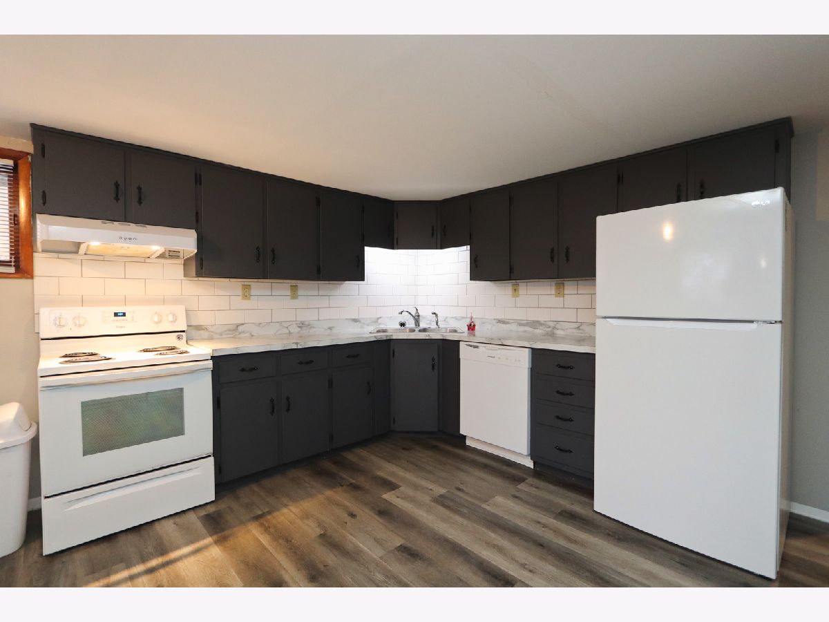 Welcome into this beautifully updated and freshly painted 1,600 sq. ft. ground floor 4-bedroom apartment that truly lives like a single-family home! Remodeled in 2021, this home features a stunning new kitchen with vinyl plank flooring, updated cabinets, countertops, dishwasher, and refrigerator, plus two remodeled bathrooms including a primary suite with a ceramic tile shower. The expansive 25' x 15' living room offers exceptional flexibility for multiple furniture layouts or dual living spaces. All four bedrooms are generously sized, and a convenient in-unit laundry closet sits just off the kitchen. This all-electric unit eliminates gas bills and includes a concrete patio for outdoor enjoyment along with an oversized 2-car garage providing ample parking and storage. Located in School Districts 54 and 101. Tenant pays electric and optional Comcast cable. No smoking allowed on the property and no pets. Minimum 621 credit score, background check and employment verification. Income must be 3x rent. First month's rent and security deposit due at signing; $34.44 application fee per adult.