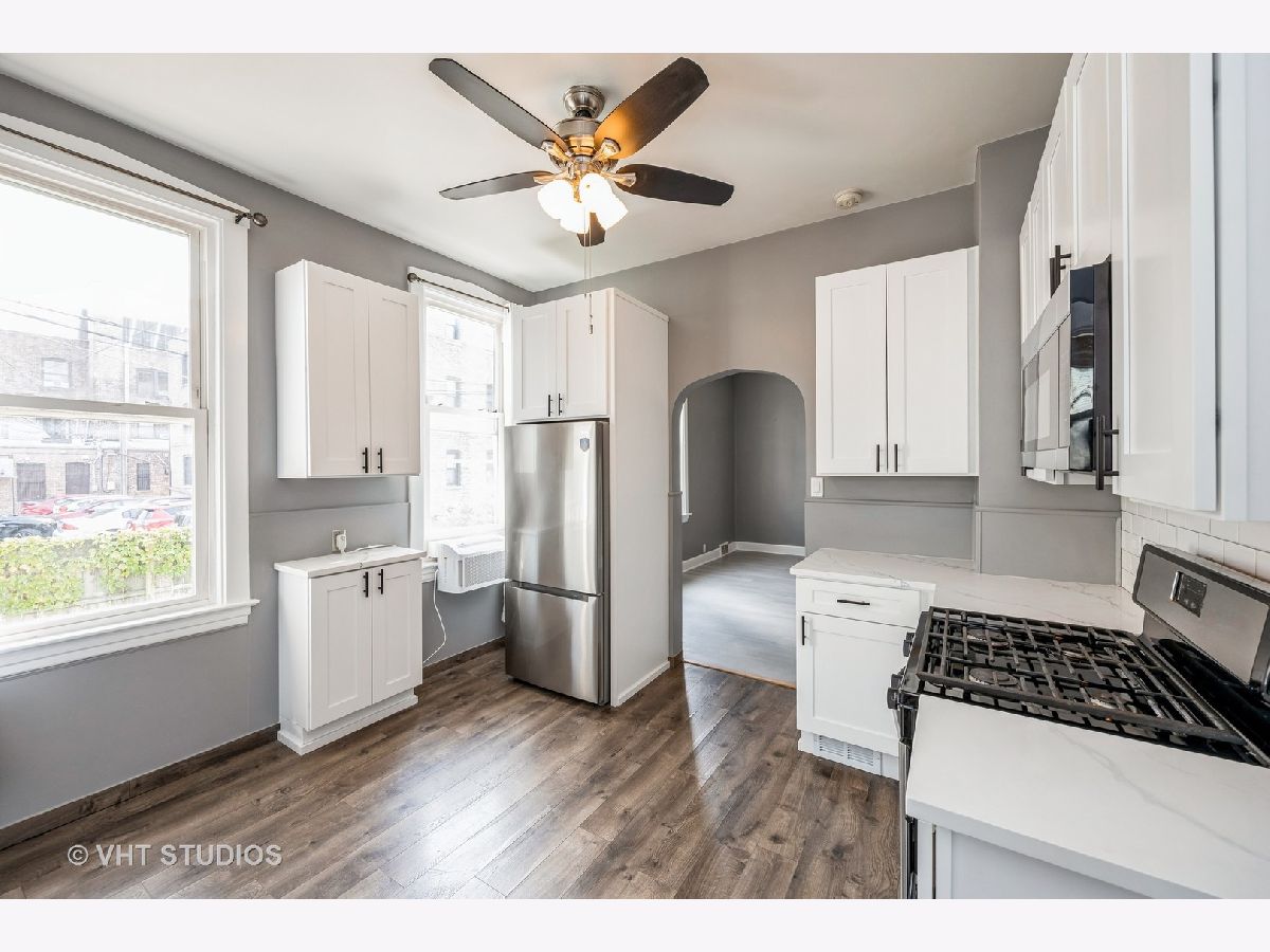 Recently renovated with a brand-new kitchen, appliances and baths, this "pottery barn" coach house offers two bedrooms, plenty of storage and two parking spots. You literally will be a stone's throw from everything downtown Forest Park has to offer, coffee houses, restaurants, festivals, music and entertainment, and in a very commutable location between the blue and green lines. The first-floor bedroom is smaller with room for full-size bed with two closets-perfect for a guest room, office, dining or a roommate. The cozy, pine paneled second floor offers a full suite with flex space for bedroom, office, second TV area and a generous new bathroom. The front porch (enclosed) and front entry offer tons of storage. This coach house is located behind the main house (rented to one person) with a small green yard and garden and direct access to two outdoor parking spots. The basement is unfinished but offers lots of possibilities for a rec area or storage and has full laundry and outside access. Now that the work is complete, this house is available immediately. Rent includes trash, water and tenant pays for electric and gas. Local landlord.