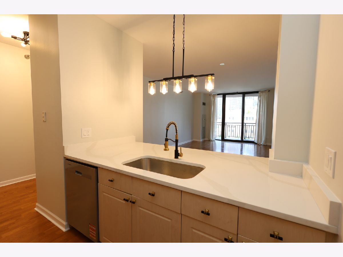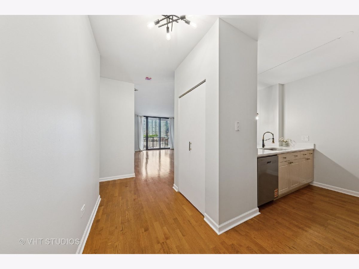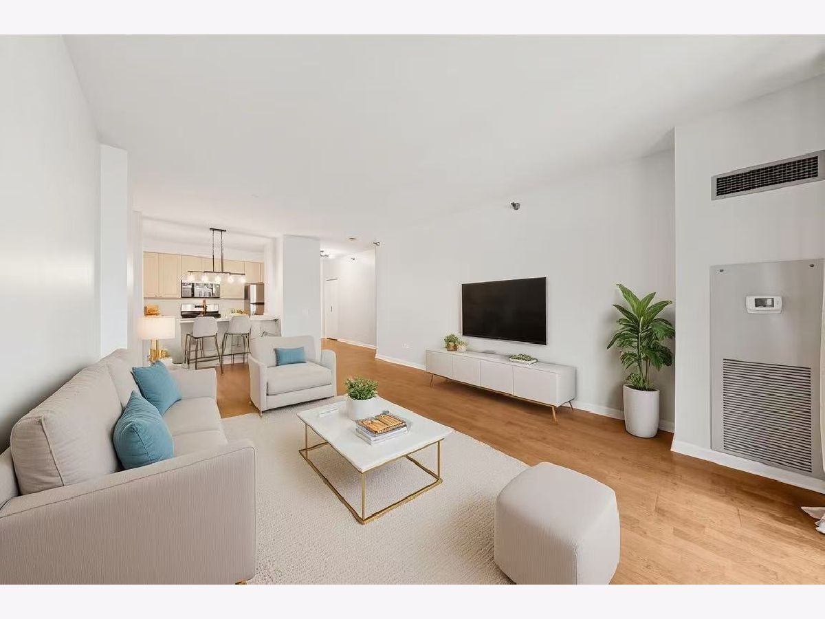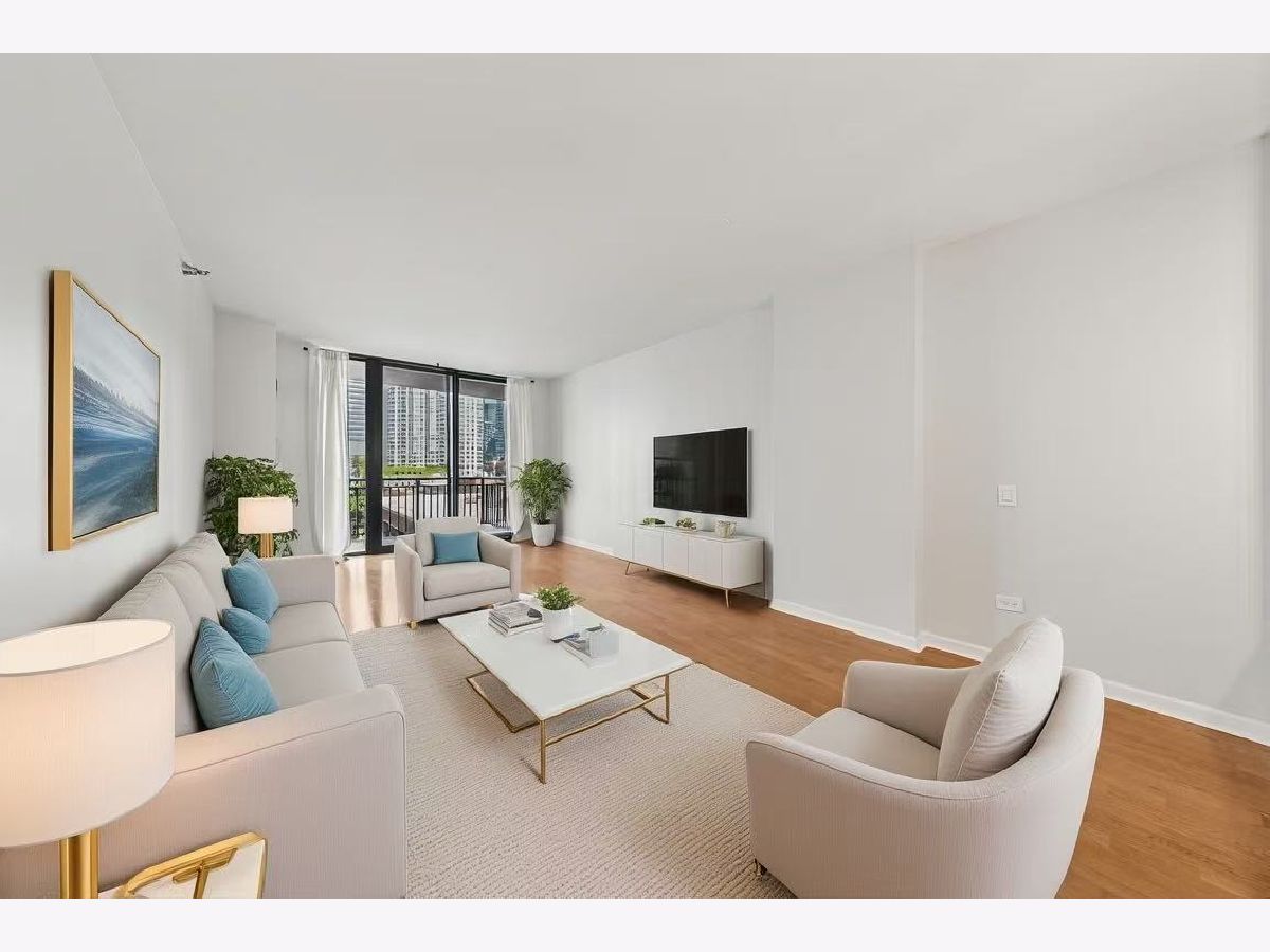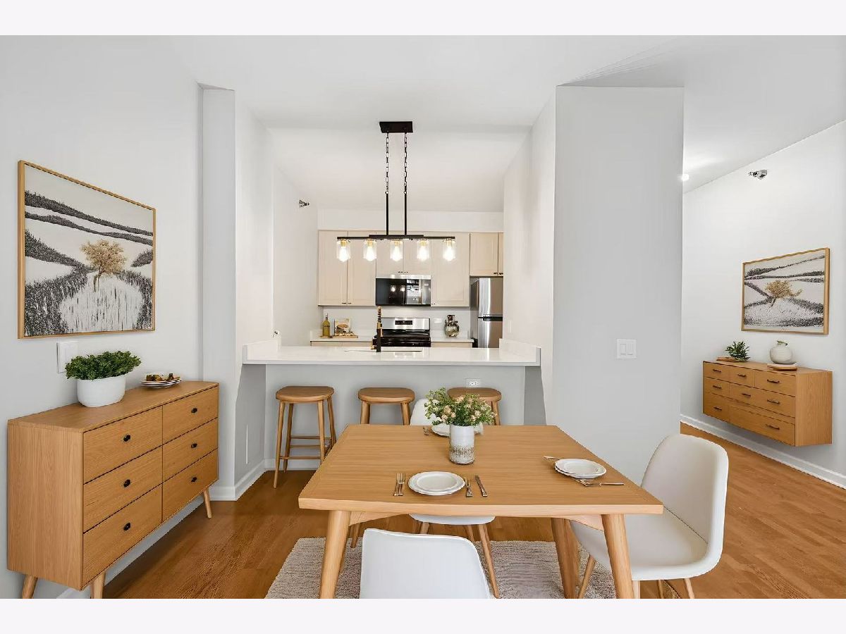 Beautifully upgraded 1BR/1BA freshly painted east facing move-in ready condo at Kinzie Station located in the heart of Fulton Market/West Loop! Garage parking and additional storage included! The kitchen features brand-new Whirlpool stainless steel appliances-refrigerator, oven, microwave, and dishwasher-along with sleek quartz countertops and modern cabinetry, all complemented by engineered hardwood flooring throughout. The spacious, open layout offers a bright living area leading to a private balcony with stunning city skyline views! The bedroom offers spacious walk in closet and easily fits a king size bed and additional furniture. In-unit laundry, ample closet storage space, and central heating and cooling. The building offers full-service, 24-hour door staff, a fitness center, landscaped terrace, party room, Amazon Hub, on-site dry cleaner, and a dog relief area. Pets friendly. The monthly HOA covers gas, heat, A/C, cable, internet, water, and building amenities. Unbeatable location walking distance to restaurants and grocery stores, Metra, CTA Green/Pink/Blue lines, and major expressways-ideal for modern city living. Come to see it today!