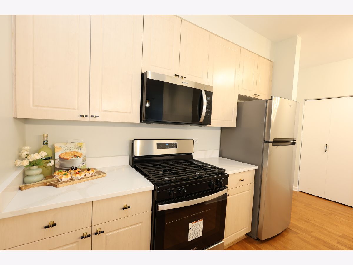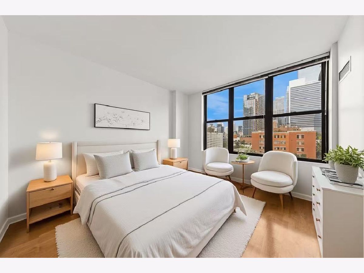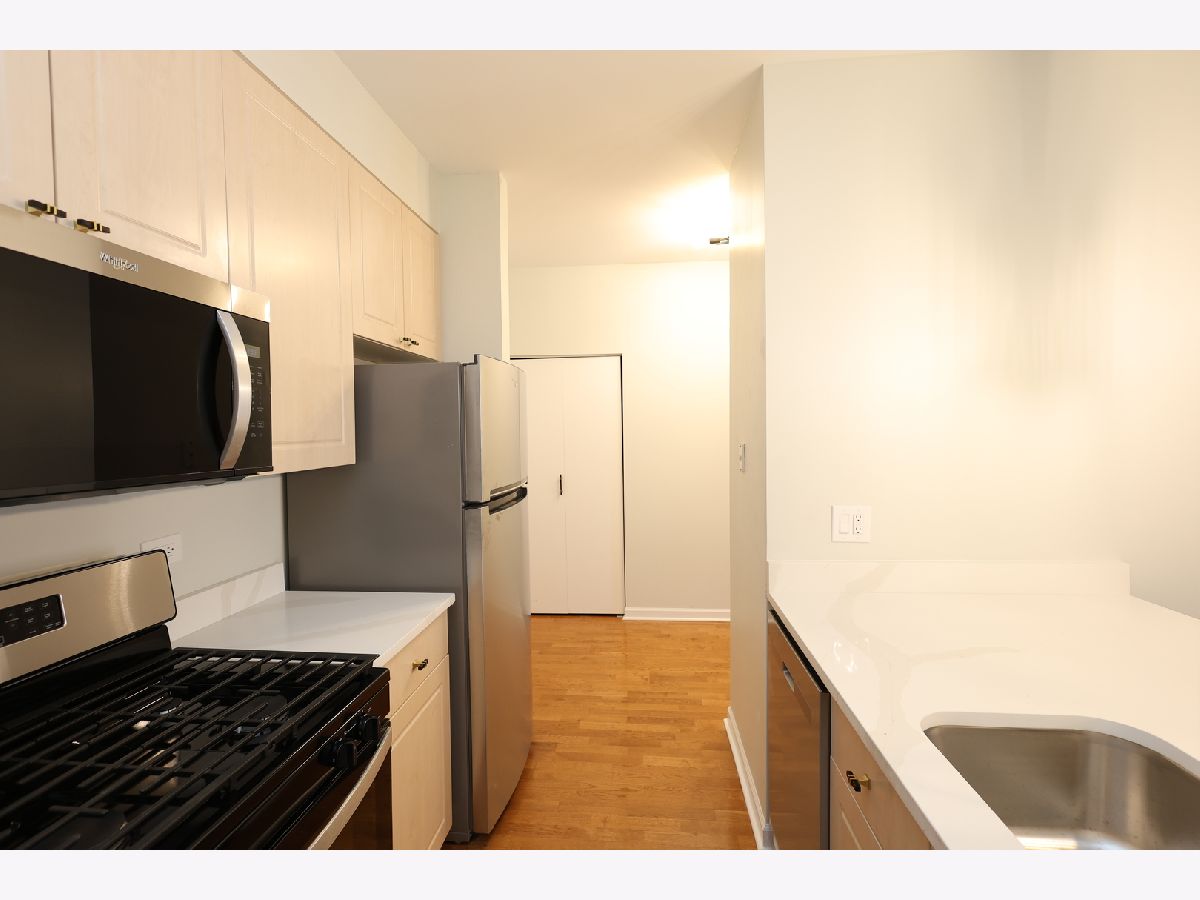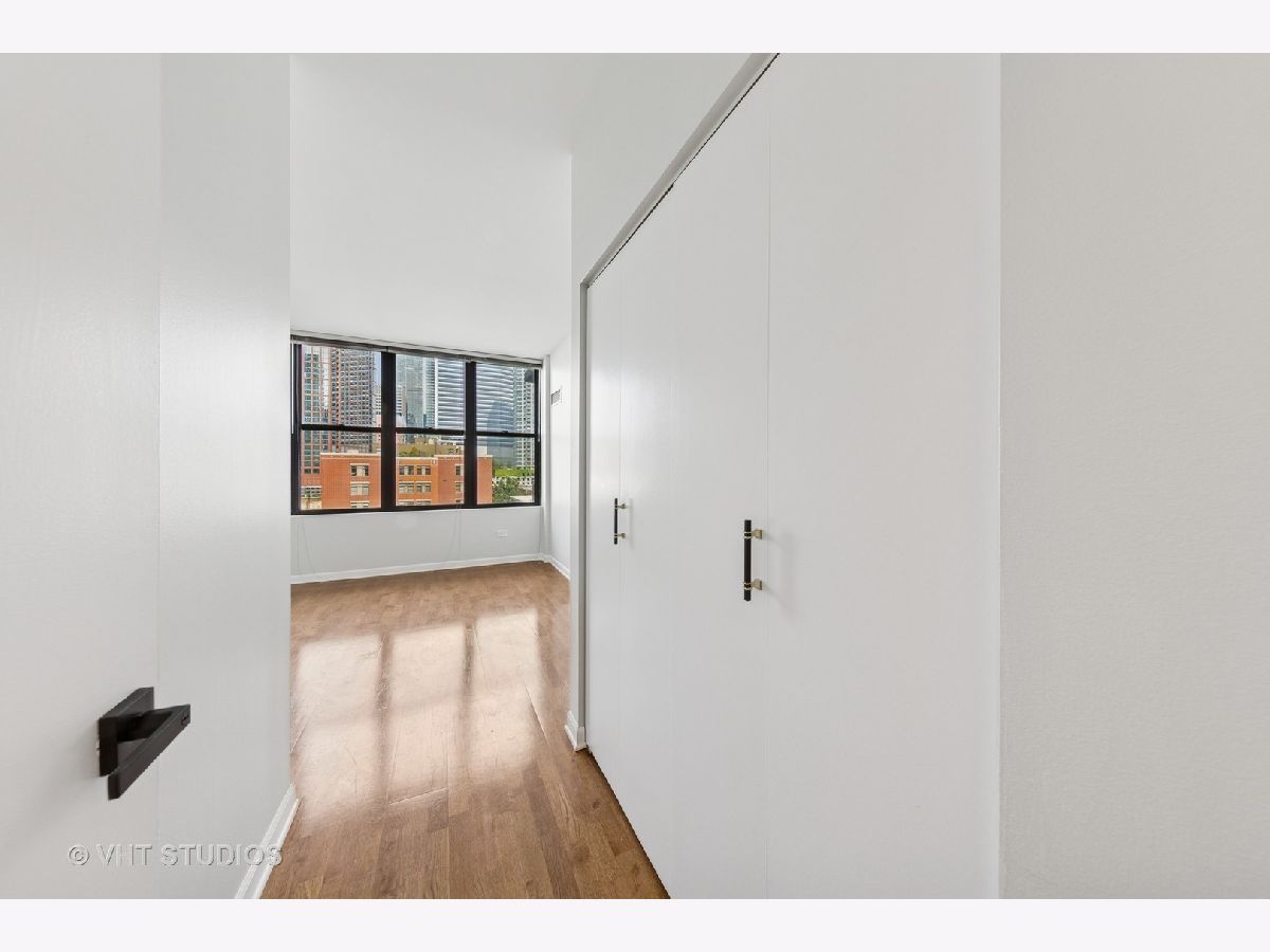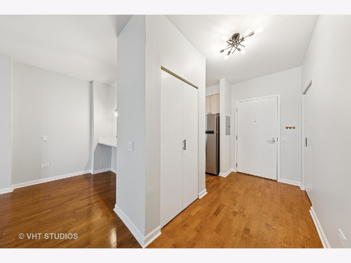 Beautifully upgraded 1BR/1BA freshly painted east facing move-in ready condo at Kinzie Station located in the heart of Fulton Market/West Loop! Garage parking and additional storage included! The kitchen features brand-new Whirlpool stainless steel appliances-refrigerator, oven, microwave, and dishwasher-along with sleek quartz countertops and modern cabinetry, all complemented by engineered hardwood flooring throughout. The spacious, open layout offers a bright living area leading to a private balcony with stunning city skyline views! The bedroom offers spacious walk in closet and easily fits a king size bed and additional furniture. In-unit laundry, ample closet storage space, and central heating and cooling. The building offers full-service, 24-hour door staff, a fitness center, landscaped terrace, party room, Amazon Hub, on-site dry cleaner, and a dog relief area. Pets friendly. The monthly HOA covers gas, heat, A/C, cable, internet, water, and building amenities. Unbeatable location walking distance to restaurants and grocery stores, Metra, CTA Green/Pink/Blue lines, and major expressways-ideal for modern city living. Come to see it today!