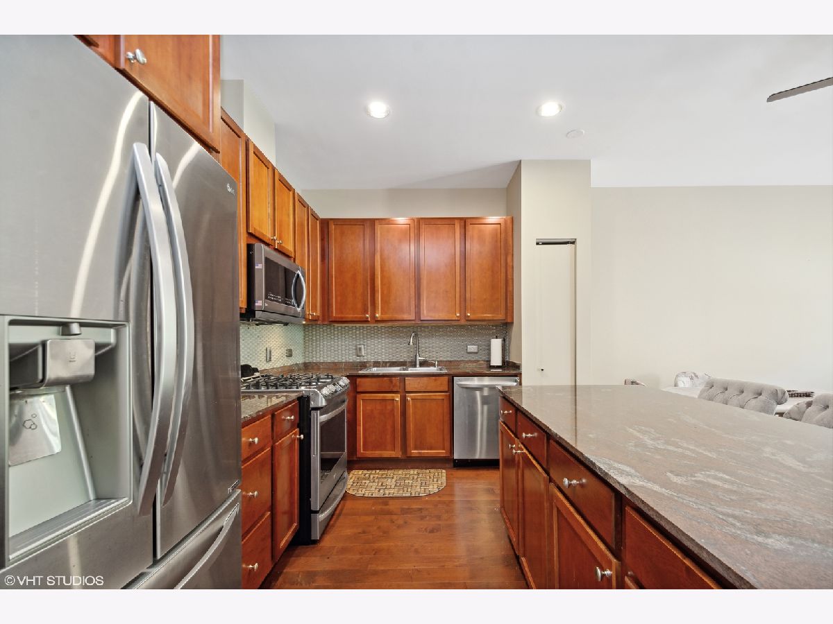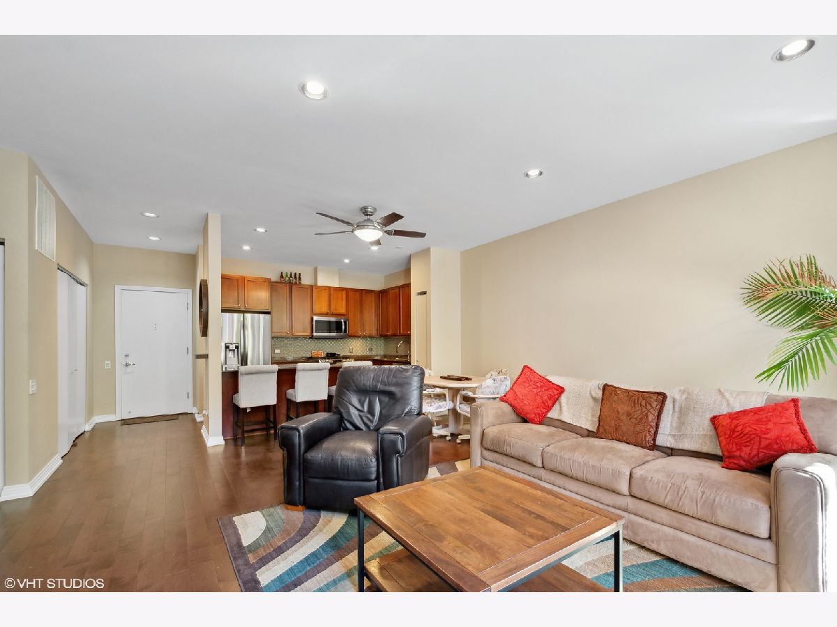 Come see this gorgeous move-in ready 2-Bedroom/2-Bathroom condo in Fulton Market! The southern exposure creates a sun-lit living space, featuring an open floor plan with hardwood floors throughout, tall ceilings, and large windows. The kitchen shines with stainless steel appliances, granite countertops, and 42" cabinets and a pantry for plenty of storage. Just off the kitchen is a combined living/dining area with a 345 sq. ft. attached private balcony, creating a unique outdoor oasis. The large primary bedroom boasts enough room for a king-sized bed,sizable dresser, and has an impressive closet with built-in storage and organization. The en-suite Primary Bathroom has an in-shower marble bench, dual-sink vanity, porcelain floors, and oversized linen closet. There is a 2nd fully enclosed bedroom and bathroom, in-unit washer/dryer, and 1 heated garage parking spot is included in rent. Location is just minutes from the Loop, River-walk, East Bank Club, French Market, Grocery, Shopping, Award-winning restaurants, Train Stations, and more!