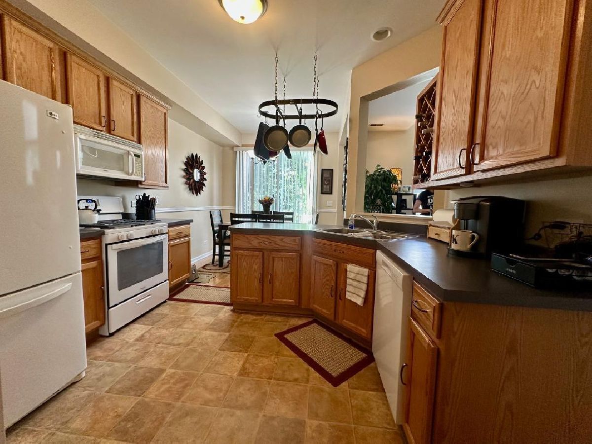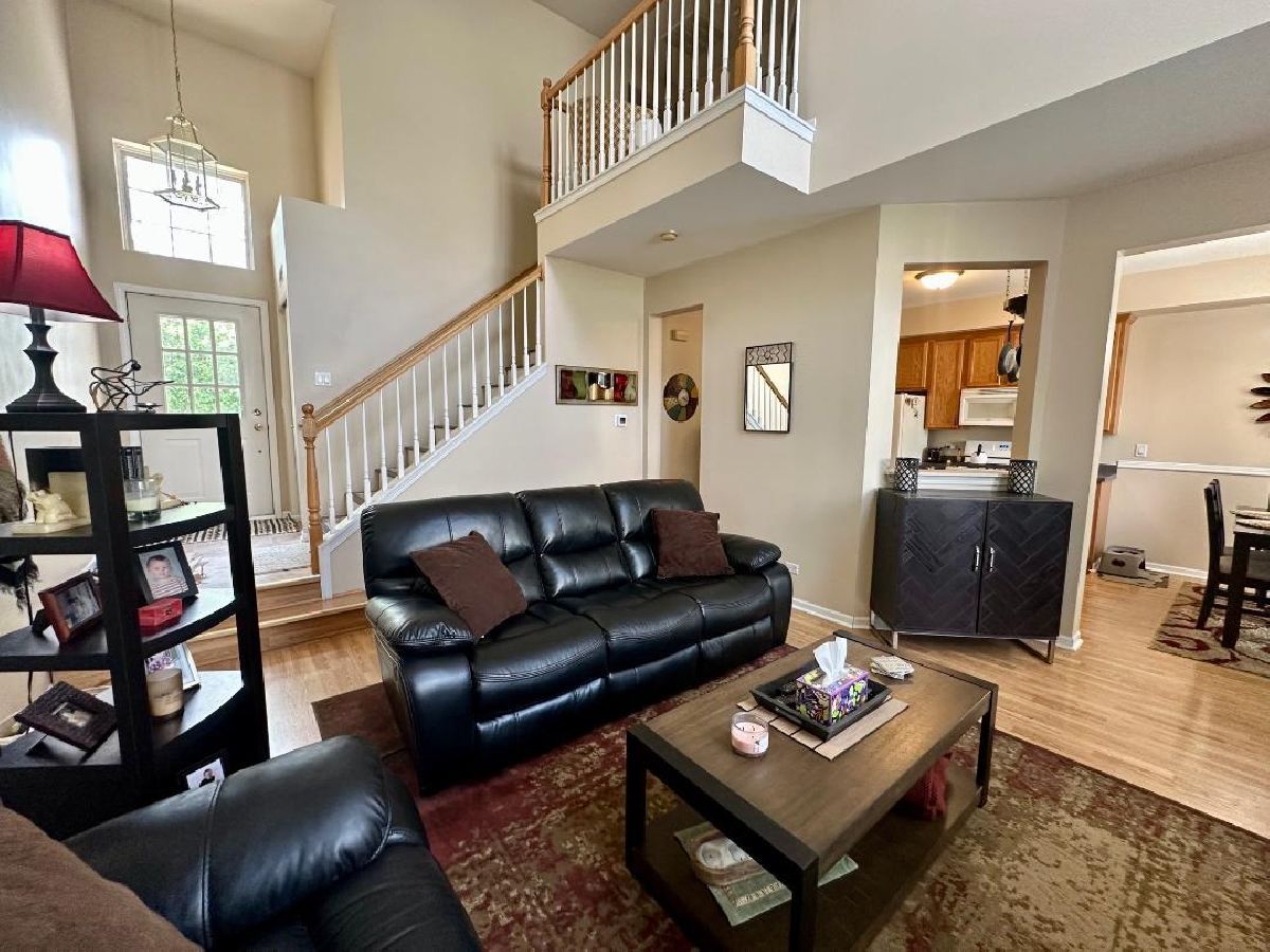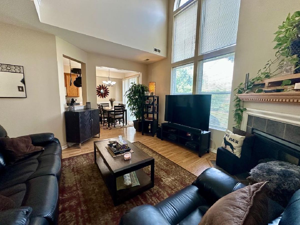 Welcome to this beautiful townhome designed for comfort and style. Step inside to the family room with corner fireplace, bright and spacious with soaring cathedral ceilings and abundant natural light. The kitchen features ample counter and cabinet space for all of your culinary needs and includes all major appliances. The adjoining dining room opens to your private patio, the perfect place for morning coffee or evening adult beverage. Upstairs you will find 2 generous-sized bedrooms & loft, including a primary suite with 3 walk-in closets and an en-suite bath featuring a large shower and double sink vanity. There is also a full guest bath in the hall. Throughout the home you will find easy maintenance pergo flooring. 2nd floor laundry is a bonus. Attached 2 car garage provides plenty of storage. Great location near shopping and dining as well as just minutes to I88 and Metra Train station. Non-smoking unit. This move-in-ready home is a must-see!