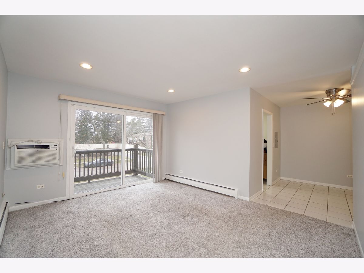 Rental condo-available now! Updated, freshly painted and move-in ready!! Second floor one bedroom plus office/den or second bedroom. Kitchen with oak cabinets, updated hardware, newer appliances, including built-in microwave, and a ceramic tile floor that extends into the dining room. Large living room with newer carpet, recessed lights and access to the large balcony. Spacious master bedroom with recessed lights, and a large walk-in closet. Second bedroom/office with glass inset door, and a ceiling fan. Full bath with ceramic tile floor and tile bath/shower surround. Convenient laundry access. Easy parking and just blocks to the Palatine Metra station and downtown entertainment, restaurants, shops, and parks. Rent includes heat, water, and garbage service! *No pets* Min. 700 credit. Income 3x rent. Min. 1 year lease.