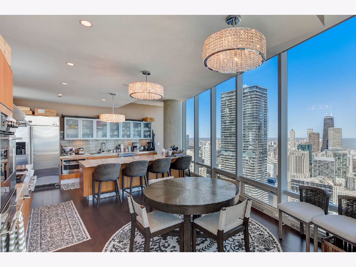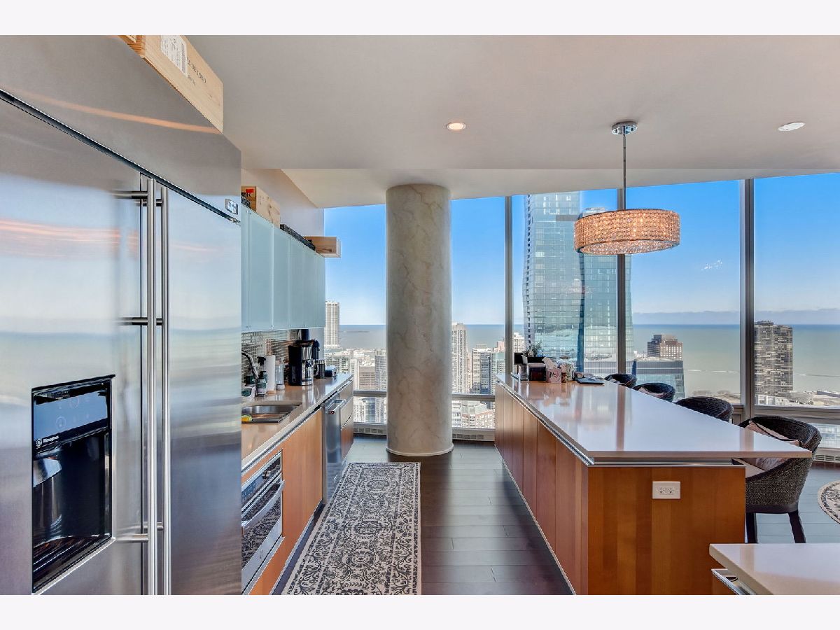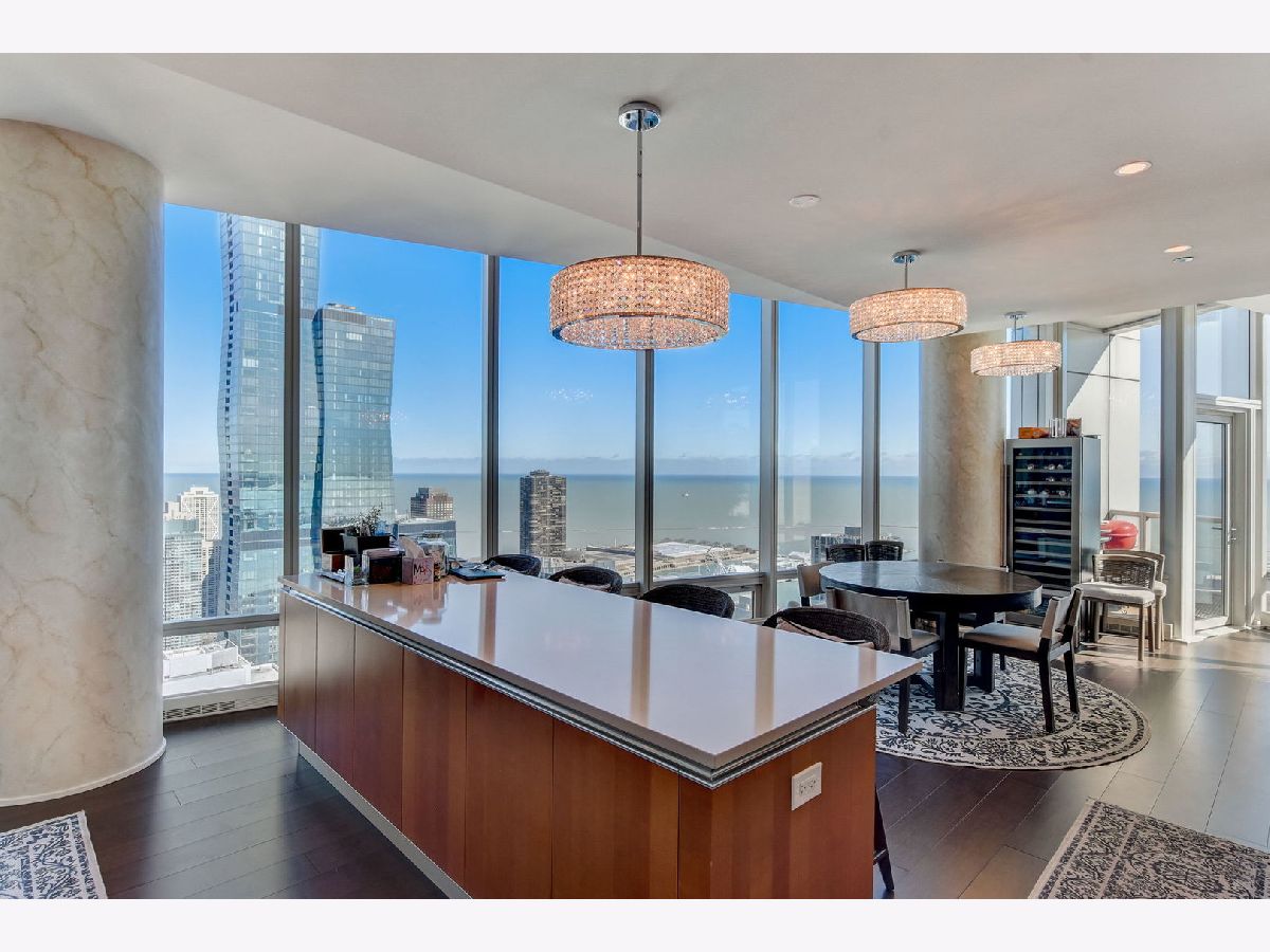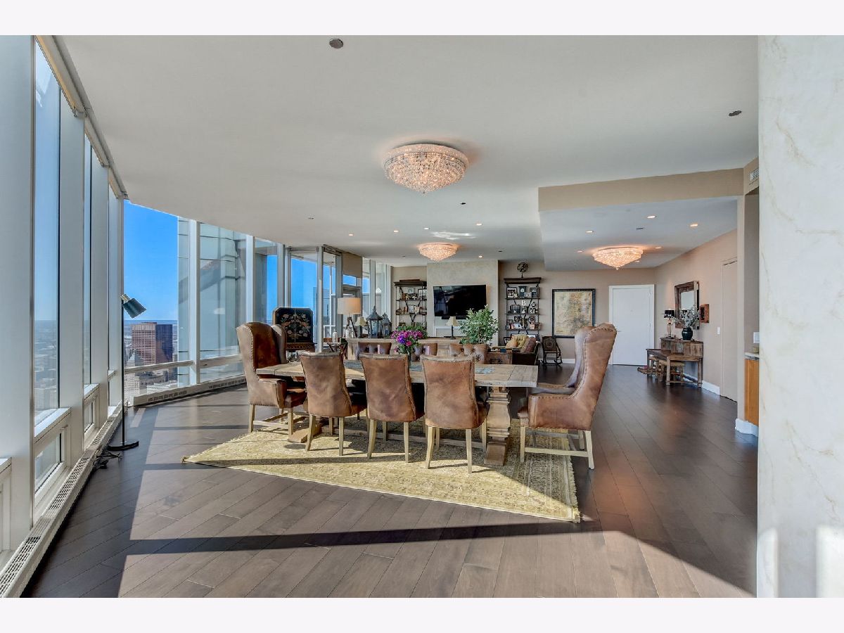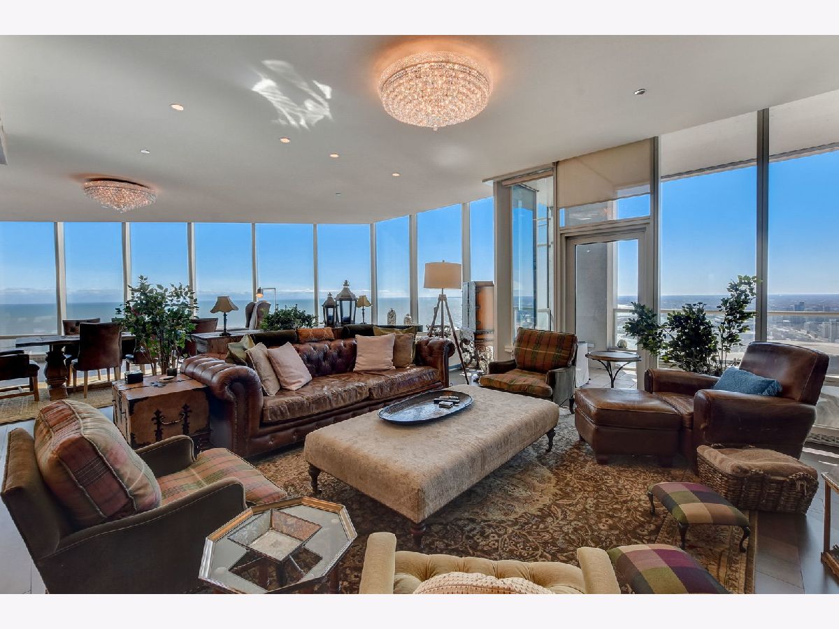 Rarely available - Penthouse at 340 on the Park! High ceilings and floor to ceiling windows throughout with this wrap around, unobstructed views - Penthouse on the 60th floor facing Millennium Park, Lake Michigan, Monroe Harbor, Navy Pier, and Northern City Views. Every room has outstanding, unobstructed views. Over 4000 square feet with this well laid out floor plan. Enter into the Living and Dining Room, with TV/Family Room around the corner. Spacious living room features south facing balcony and fireplace. Large, open kitchen with breakfast bar and plenty of room for table or sitting room. 3 Outdoor Balconies - One facing south overlooking Millennium Park & Lake, Second Balcony located off of eat in kitchen/dining, ideal for grilling., 3rd Private Balcony off of Primary Suite - watch fireworks display on Wednesdays and Saturdays! 2 Pantry closets. Generous sized 3 bedroom suites with attached in-suite bathrooms. Grand Primary Suite with 2 full bathrooms and 2 walk in closets plus area for office or seating area. Additional guest powder room and laundry room with storage and a washing station. Warm Espresso stained hardwood floors throughout. 340 on the Park, easy access to lakefront trails, concerts in the park, museums, theatre, cultural mile, shopping and restaurants. Full amenity building includes 24 hour door staff, full 75ft. 2 lane lap pool, hot tub, sauna, steam, spacious exercise room with a view, winter garden, and full scale Mariano's and Village Marketplace attached to south side of building. Two parking spots (P1-44&45) in attached, heated garage and full size storage locker (S63-50) included in price. Residence is Available for Immediate Occupancy - Enjoy the City in the Summer!