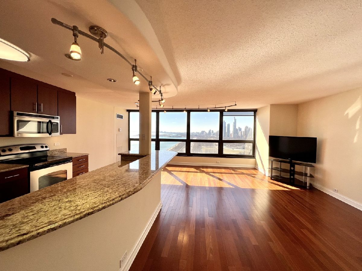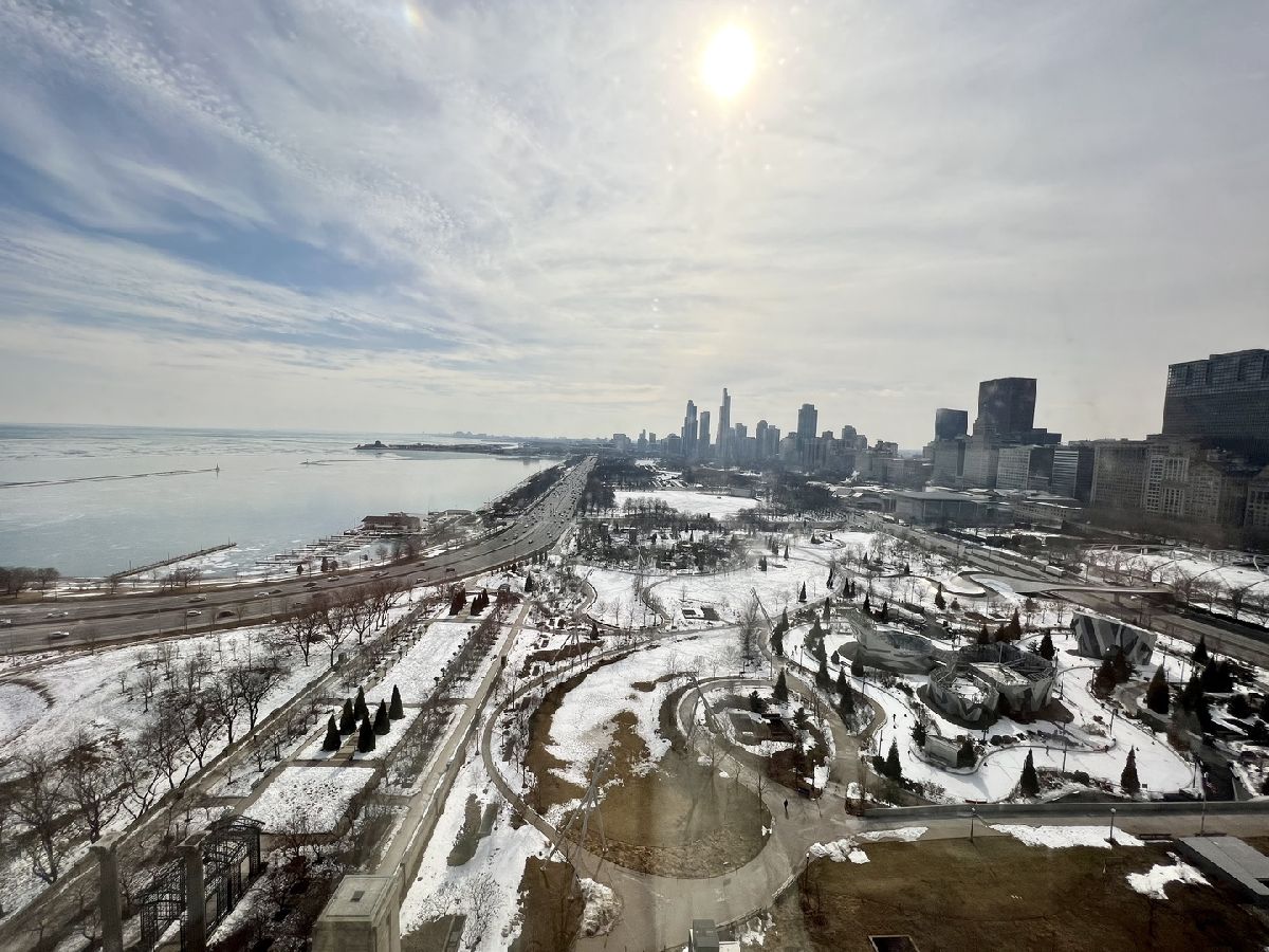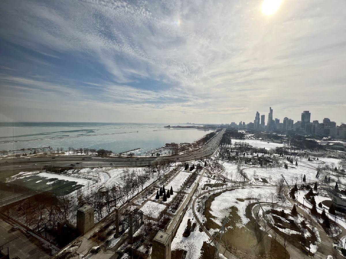 Stunning Panoramic Views of Lake and City, Millenium Park,Monroe Harbor, all the way to Indiana. Expansive 1BR 1Ba completely Remodeled Unit w/Cherry Hardwood Floors. Open Kitchen w/Cherry Cabinetry, Granite Counters, Large Breakfast Bar and New SS Appliances. Remodeled Bathrooms w/Porcelain tiles , Granite counters and Decorative Glass Sink. Finished Closets Organizers in every closet. In Unit Bosch Washer /Dryer. Full Amenity Building w/ Fitness, Swimming Pool, Party room and Laundry room. Walk to Lake, Park, Museums, Minutes to subway, Buses, L and restaurants.Parking available for addtl.$200