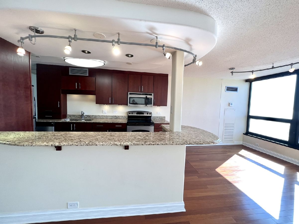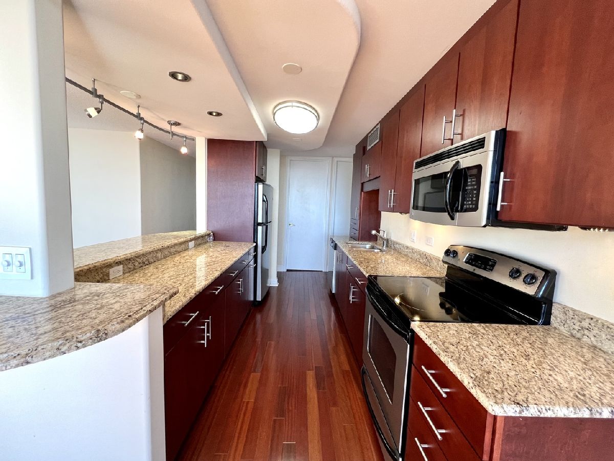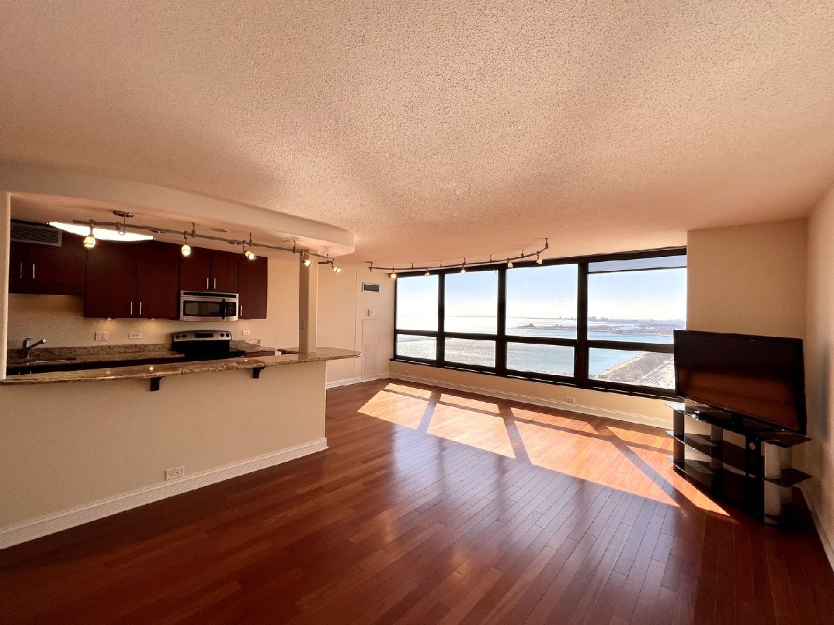 Stunning Panoramic Views of Lake and City, Millenium Park,Monroe Harbor, all the way to Indiana. Expansive 1BR 1Ba completely Remodeled Unit w/Cherry Hardwood Floors. Open Kitchen w/Cherry Cabinetry, Granite Counters, Large Breakfast Bar and New SS Appliances. Remodeled Bathrooms w/Porcelain tiles , Granite counters and Decorative Glass Sink. Finished Closets Organizers in every closet. In Unit Bosch Washer /Dryer. Full Amenity Building w/ Fitness, Swimming Pool, Party room and Laundry room. Walk to Lake, Park, Museums, Minutes to subway, Buses, L and restaurants.Parking available for addtl.$200