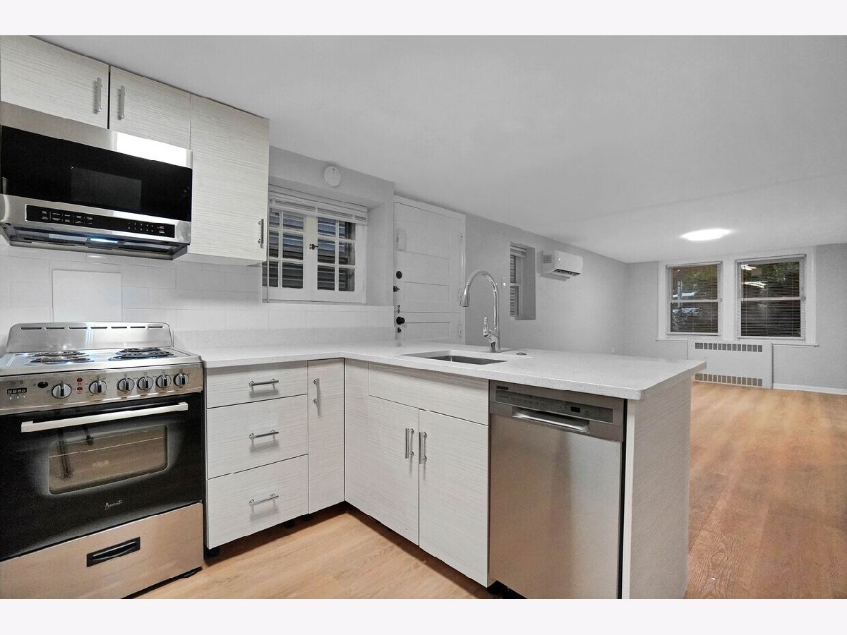 This renovated 2 bedroom 1 bath ground level apartment is located on a tree-lined street in East Irving Park. Heat is included, hardwood floors, Brand new kitchen with custom cabinets and stainless steel appliances, separate living and dining room, laundry in unit and central air. Pet Friendly with $30 a month pet rent and a $75 one time pet fee Common backyard oasis for everyone to enjoy. Commuter friendly, close to the Addison Blue Line, expressway access and multiple Addison buses. Grocery, home improvement and many other shopping options within blocks of this property. Nightlife a short Uber/Lyft ride away!