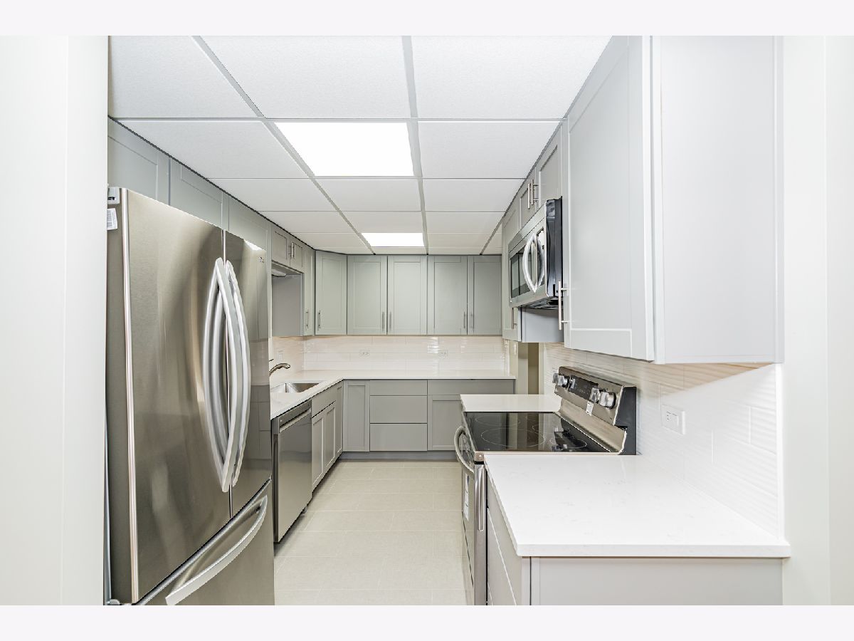 Completely Rehabbed in 2022, Bright and sunny 2 Bedroom 1 Bathroom Condo at sought after 12 Oaks community located on the first floor. This unit had a make-over from top to bottom. Modern Kitchen with light Grey Cabinets with plenty of cabinet space and LG Stainless Steel Appliances including Dishwasher and Microwave, and Quartz Counter Tops. Updated Bathroom with modern finishes. Laminate flooring throughout and tiled kitchen and bathroom floors. Painted with neutral grey tones throughout. Walkout patio. Laundry room is located on the first floor right down the hall from the unit. Tenants only pay Electric. Great Location with easy access to 294, Public Transportation, Shopping, Restaurants. Amenities include Pool, Sun Deck, Storage. Available May 5th