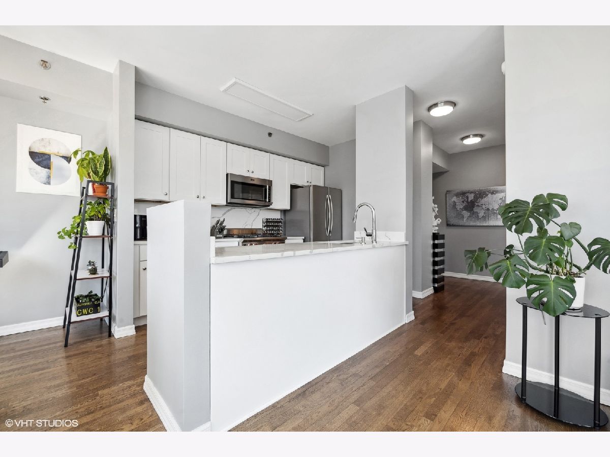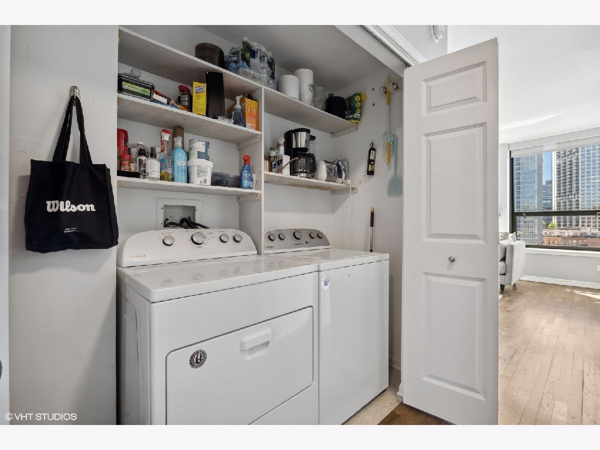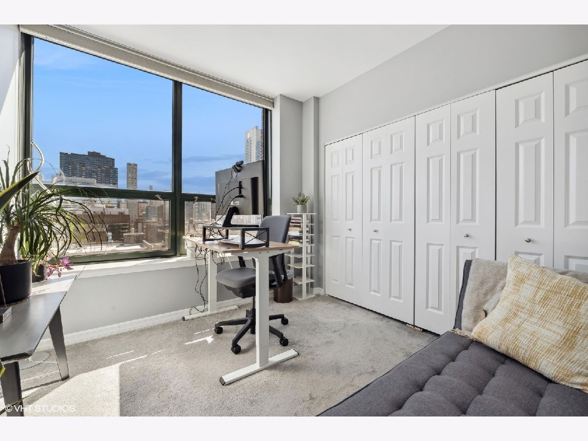 Available 10-25-23. See this bright southeast-facing updated corner 2BR/2BA River North condo. The impressive kitchen has white cabinets, quartz countertops and backsplash, stainless steel appliances, and a Wolf stove. Other updates included re-finished bathrooms, hardwood floors, and newer carpet in the bedrooms. All closets have been built out and customized. This unit is the most desirable floorplans in the building, with floor-to-ceiling windows, southern and eastern exposures, a private eastern-facing balcony, and breathtaking views of the city. It is located in the heart of River North, with easy access to the nightlife, restaurants, grocery stores, East Bank Club, and public transportation. There's nothing to do but move right in. DirecTV, and high-speed internet is included in the rent. The building has a doorman, and a gym. Heated garage parking is $250/mo.