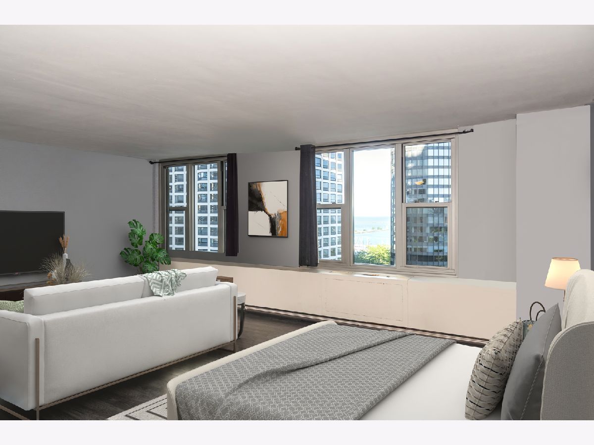 Available now. Bring your suitcases. Bright, open kitchen with breakfast bar, Samsung Stainless Appliances, gas stove, and glass tile backsplash. Built-in Office with monitor and large TV. East facing Unit with views of the sunrise, lake, boats, DuSable Harbor, and the city. Fresh paint. New lights. Black-out curtains. Six Insulated large windows and screens. Ample closets. Holds King bed (new frame in box included). Reserved heated attached parking space extra $220 mo. Monthly Rent also includes water, heat, a/c, cooking gas, RCN Cable with TiVo 6 DVR, Internet. Tenant pays electric. Resort-style Living year-round. Incredible geodesic pool and hot tub, spa & fitness center, steam and sauna, free weights, machine weights, cardio, massage therapy, courts for basketball, racquetball, pickleball, and yoga. Ping-pong. Winter garden. Multi-purpose room with giant Multi-media TV, fireplace, open kitchen, business center with printer, and library with printer and computer. Community BBQ grills and outdoor patio. 24-hour Reception, Security, engineers, and clean, bright laundry room. 3 bike rooms. 3 heated self-service car wash stalls. Free package delivery. Zip-cars on-site. Restaurant/bar and beauty/nail salon on site. CTA 60 bus stop in front of building. Live in the gem of the News Eastside neighborhood with multiple groceries (Mariano's Metro Market and Bockwinkle's) and local dining. Easy access to the Pedway, Lakefront Path, Riverwalk and Maggie Daley Park (The ice-skating ribbon rink, outdoor tennis/pickle ball courts, park district facilities, and mini golf). Close to highways, hospitals, world-class museums, Culture, and the Central business District in the Loop. At lease signing, tenant pays first month's rent and a security deposit of one-month's rent. Tenant pays building moving fees in and out.