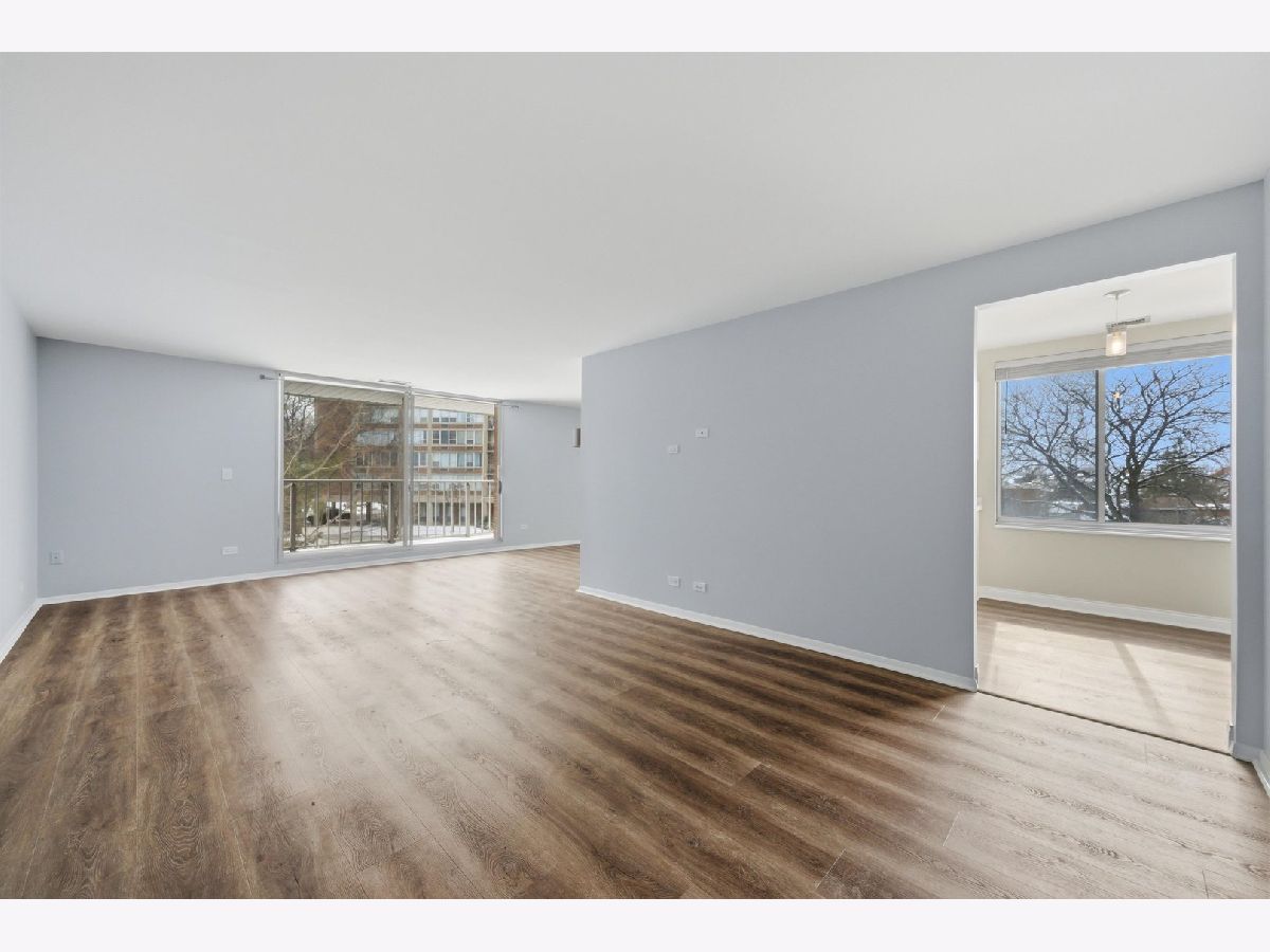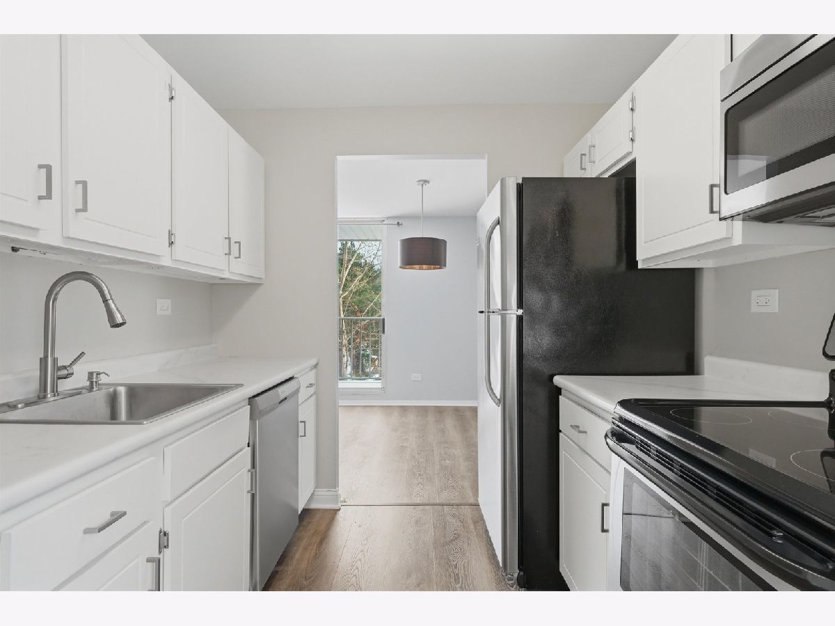 This expansive condo in Glenview's highly sought-after Triumvera community offers an exceptional combination of space, updates, and low-maintenance living. As one of only 2 rentals out of 76 units, this is a truly rare offering in a predominantly owner-occupied building. A sun-filled living room features sliding glass doors that open to a private balcony, creating an ideal setting for both everyday living and entertaining. A separate dining area comfortably accommodates gatherings, while the eat-in kitchen is enhanced by a large picture window and recent updates, including new countertops and freshly painted cabinetry. The spacious primary suite includes a walk-in closet and a private en-suite bath. A second bedroom and an updated full hall bathroom with a new vanity and bathtub tile complete the home. Additional conveniences include same-floor shared laundry, individual storage space, and an assigned heated garage space #15 in the attached garage for easy year-round access. Residents enjoy a maintenance-free lifestyle with access to Triumvera's full suite of amenities, including an indoor pool, fitness center, clubhouse, and more. Rent includes internet! Recent improvements include new flooring throughout (2023), kitchen updates (2023), refreshed second bathroom (2023), and a furnace and A/C replaced in 2021. All of this is ideally located within the highly regarded Glenview School District.