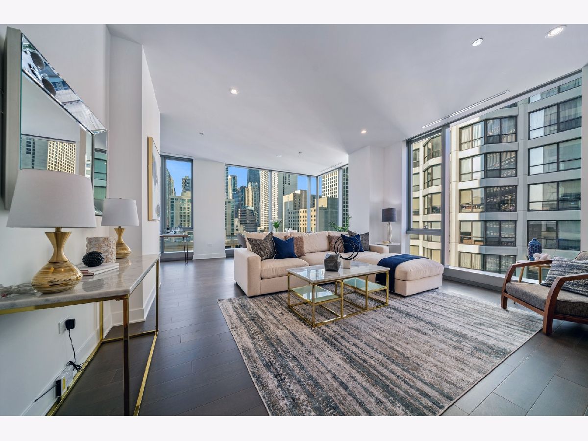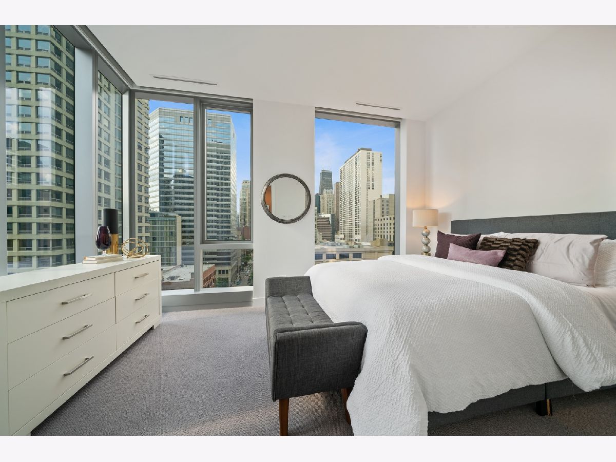 High floor, BRAND NEW construction condo with the most INCREDIBLE views! This 3 bed, 3 bath, 2249 sqft CORNER home w/ stunning city & river views offers upgraded hardwood floors, floor to ceiling windows, 10' ceilings, separate laundry room & a spacious private balcony w/ sweeping city views. Chef's kitchen features Snaidero cabinetry, Sub-Zero/Wolf appliances, quartz countertops, wine fridge & breakfast bar. Mastersuite features an ENORMOUS walk-in closet, gorgeous bathroom w/ free-standing soaking tub, dual vanity & a huge glass-enclosed rain shower. Building amenities include 24-hour door staff, state-of-the-art fitness center w/ private yoga room, bicycle storage & dog run. Penthouse level features a private rooftop lounge w/ game room, media room, indoor/outdoor kitchens & outdoor terrace. Perfect location in the HEART of River North! Steps from Michigan Ave, restaurants, nightlife, shops, RiverWalk, the Lake, the Loop & public transportation. Pets up to 40 pounds allowed with additional deposit! Parking Available for $250/mo!