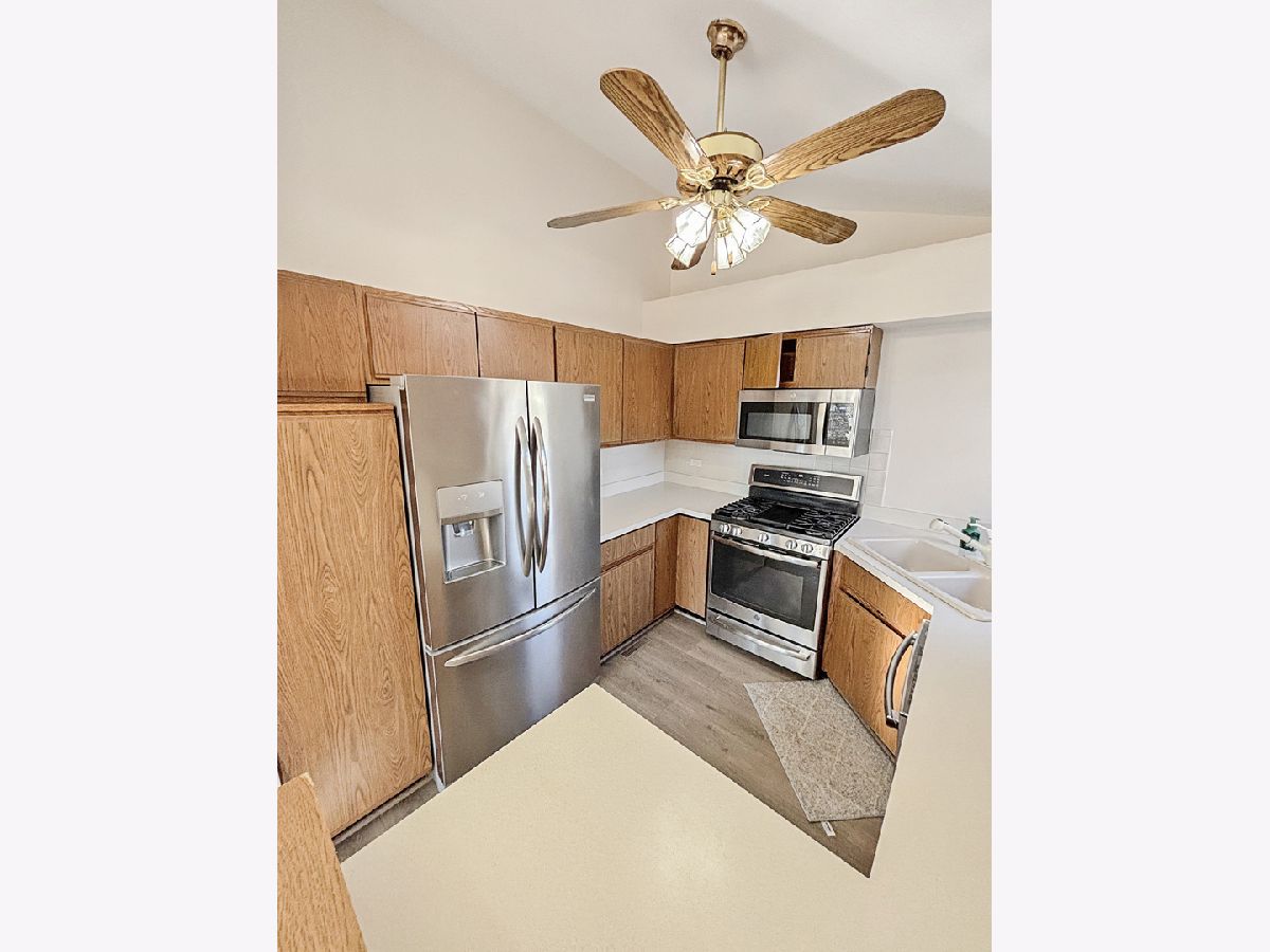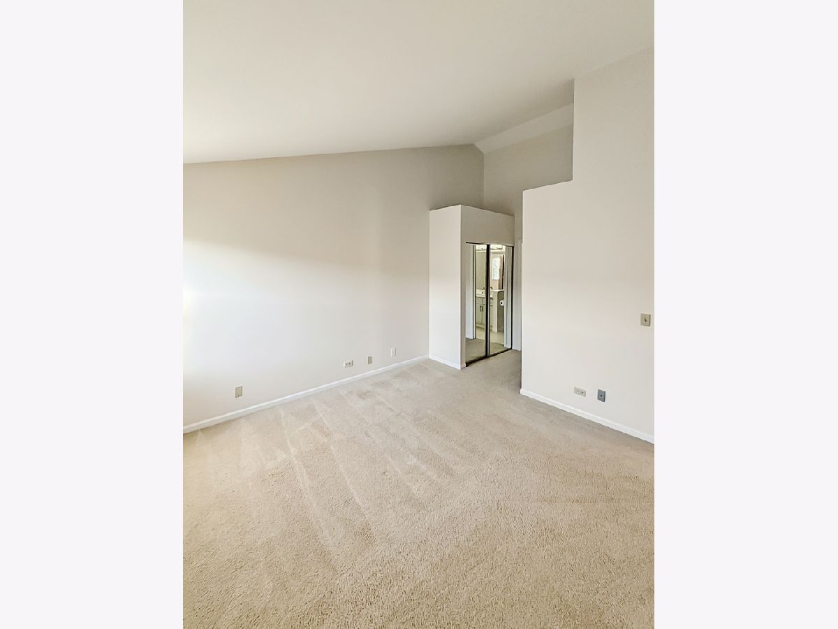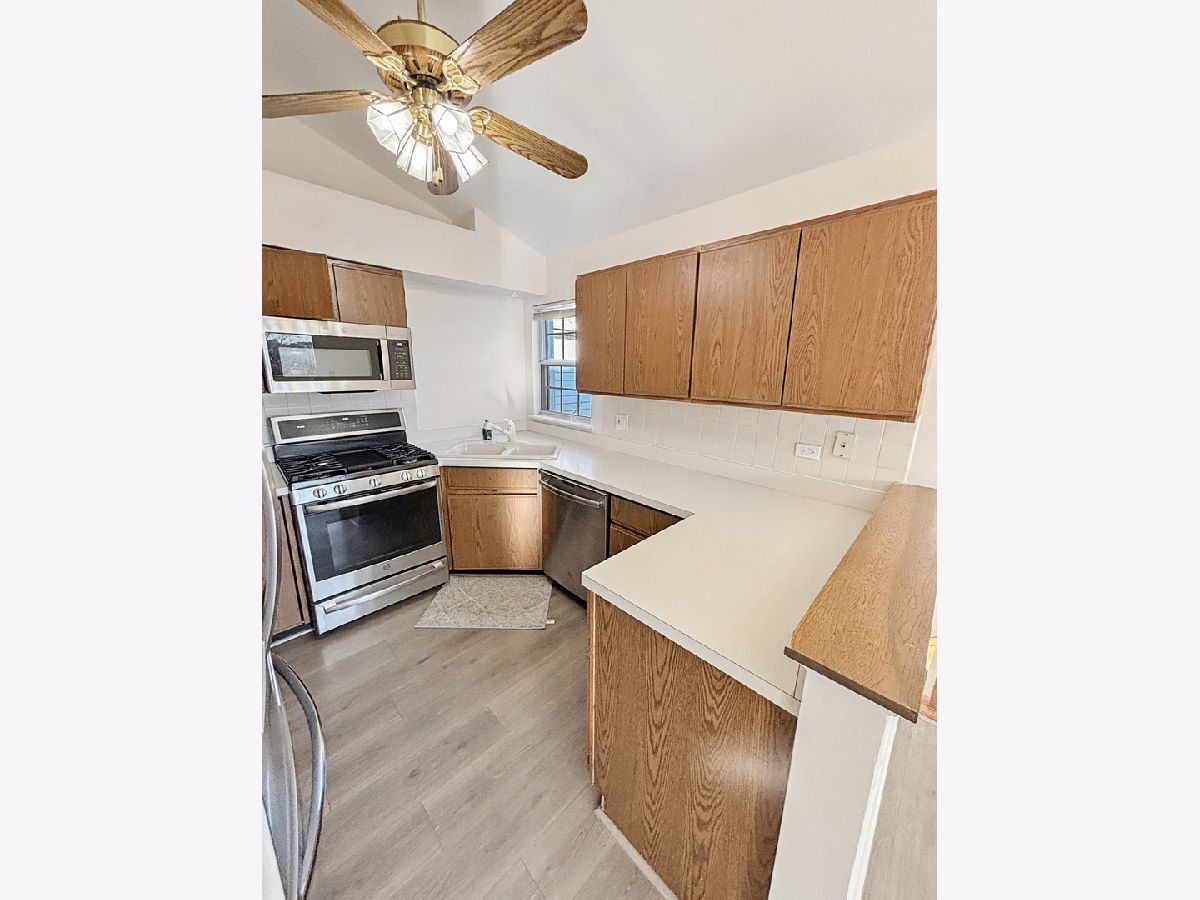 Discover serene townhome living in this inviting 2nd-floor, 2-bedroom end unit featuring a south-facing balcony that fills the home with natural light. The expansive living and dining area boasts a cathedral ceiling, new vinyl flooring, and bright balcony exposure, creating an airy and welcoming atmosphere. The open kitchen overlooks the flexible dining space and living room and features newer appliances and new vinyl plank flooring, which continues through the main living areas. Enjoy relaxing views of mature trees and greenery from your living room or step outside onto your private balcony for a peaceful retreat. Both bedrooms are generously sized, including a primary bedroom with a dedicated dressing/makeup area. The immense bathroom has been updated with new dual sinks and quartz countertops for a modern, polished feel. Additional conveniences include an in-unit laundry/utility room with extra storage and a welcoming foyer with direct access to your private one-car garage. Set within a beautifully landscaped community featuring ponds, mature trees, wildlife, and a bike/running path, this home offers the charm of living in a private park while remaining close to everyday amenities. Enjoy easy access to a nearby golf course, shopping, and you're just minutes from METRA and downtown Palatine.