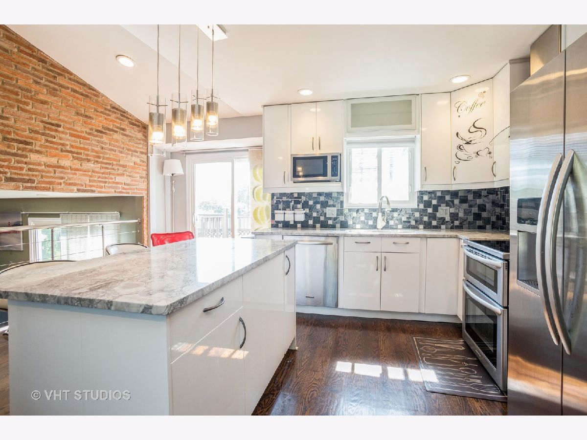 Beautifully updated split level home with 3 BRs and 2 full baths with heated floors. Hardwood floors throughout the main and lower level. Updated kitchen with center island, granite counter tops and SS appliances. Large wood deck that can be access off the kitchen with great views of the pond. Exterior access also from the lower-level family room. Home is right next to a park. Fenced back yard.
