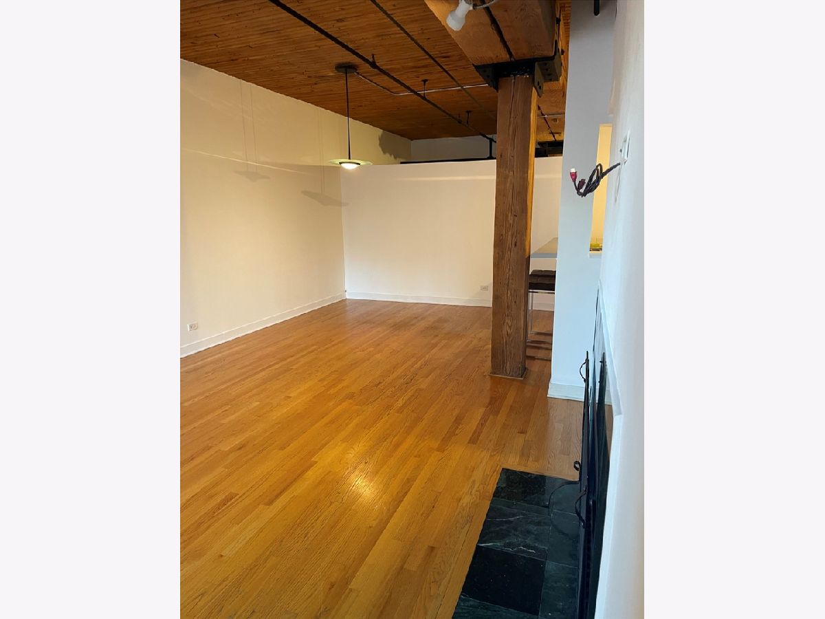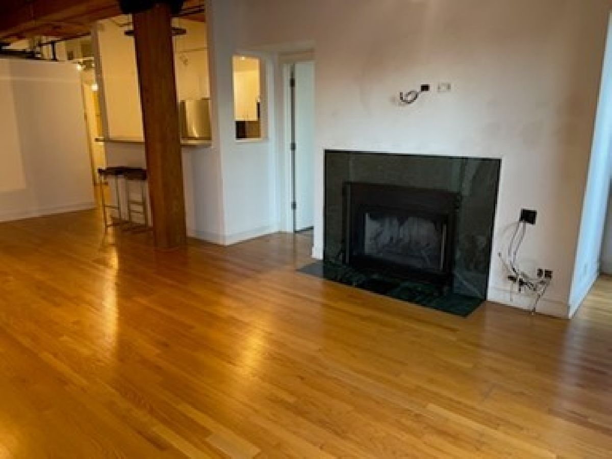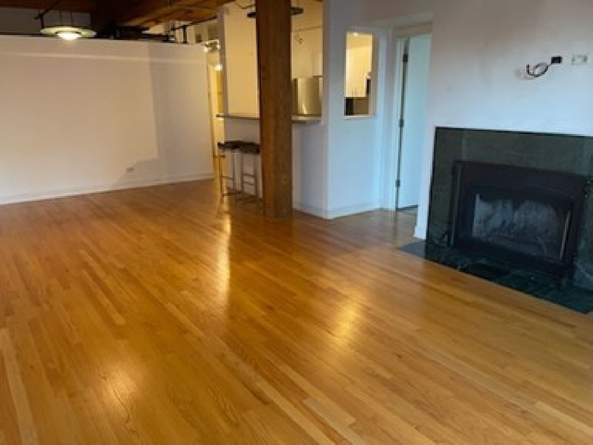 Fabulous opportunity to rent in a exceptional condominium River North loft building. 2 bedroom, 2 bath with hardwood floors, fireplace, well equipped kitchen with breakfast bar, in-unit laundry. Brand new bedroom carpeting. Also includes 1 indoor parking space & storage locker. Building features 24 hour doorman, cleaners, roof top deck with BBQ's, workout room and bike room. No cats.