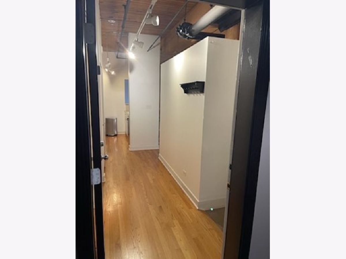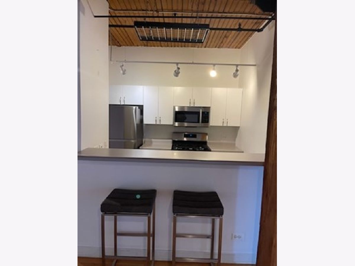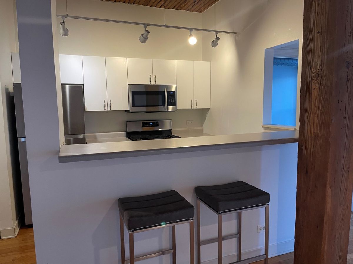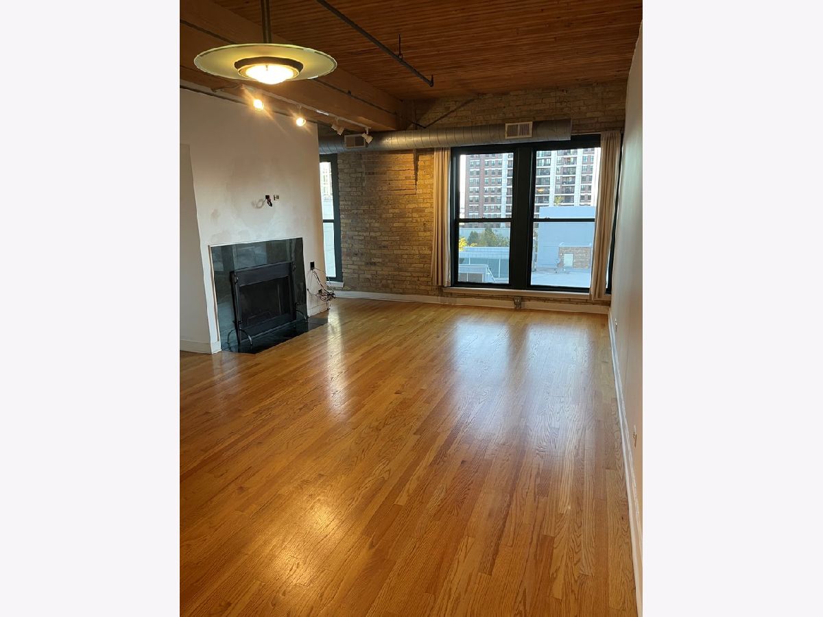 Fabulous opportunity to rent in a exceptional condominium River North loft building. 2 bedroom, 2 bath with hardwood floors, fireplace, well equipped kitchen with breakfast bar, in-unit laundry. Brand new bedroom carpeting. Also includes 1 indoor parking space & storage locker. Building features 24 hour doorman, cleaners, roof top deck with BBQ's, workout room and bike room. No cats.