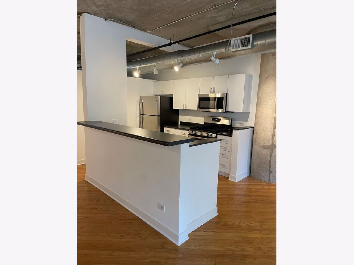 Fabulous one bedroom one bath loft at the Ontario Street lofts! This oversized 1112 sf loft home features hardwood floors, concrete ceiling and pillars, oversize balcony with fabulous South city views, in unit washer and dryer, semi renovated kitchen with brand new stainless steel appliance, White cabinetry and black countertops. Large bedroom with wonderful closet space. Price also includes one exterior parking space secured behind the back of the building, one storage locker. Building offers outstanding renovated rooftop deck very well-equipped workout room yoga room 24 hour door person bicycle room. Pets not preferred and no smoking allowed.
