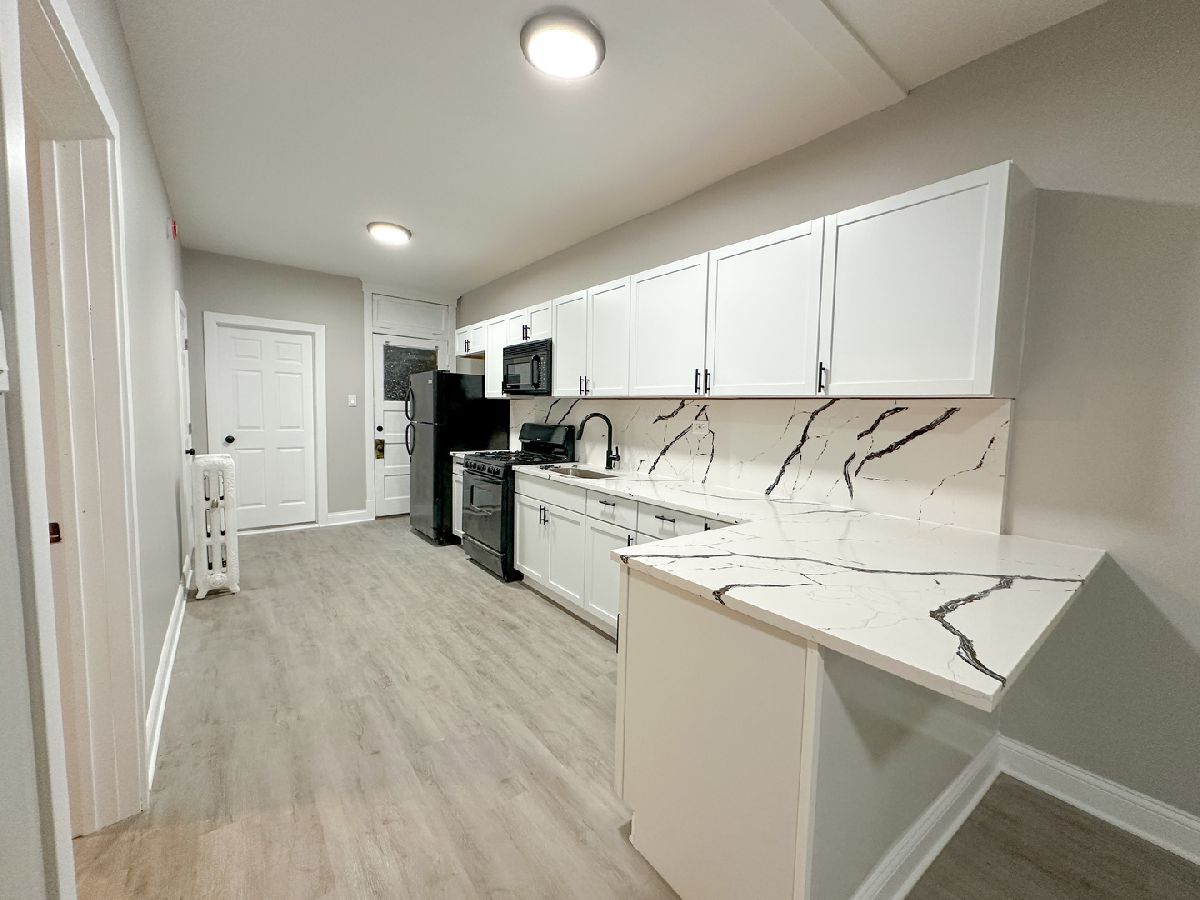 Spacious and well-located 2 bedroom, 1 bathroom apartment in a charming, vintage brick building in Old Irving Park! This raised first-floor corner unit offers an open and flexible layout, featuring brand new flooring, cabinets, countertops, tall ceilings, and plenty of natural light. The kitchen provides great cabinet space, new quartz countertops, and a breakfast bar that opens into the living area. Building features include secure entry, laundry on site, and well-maintained common areas including a shared backyard. Conveniently located near public transit, Metra and Blue Line stops, I-90/94, shopping, dining, and parks.