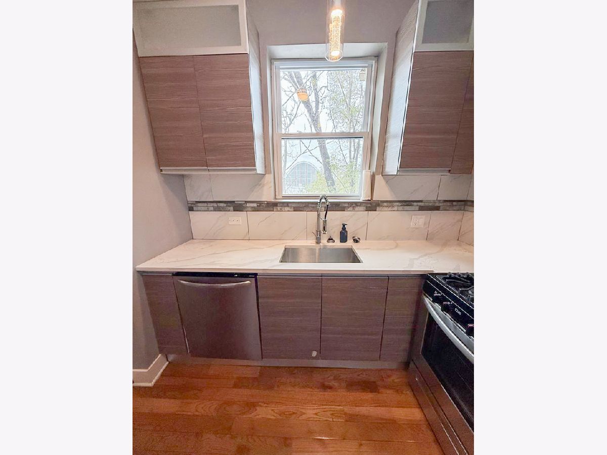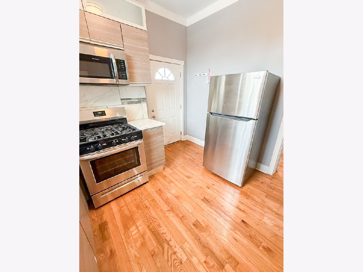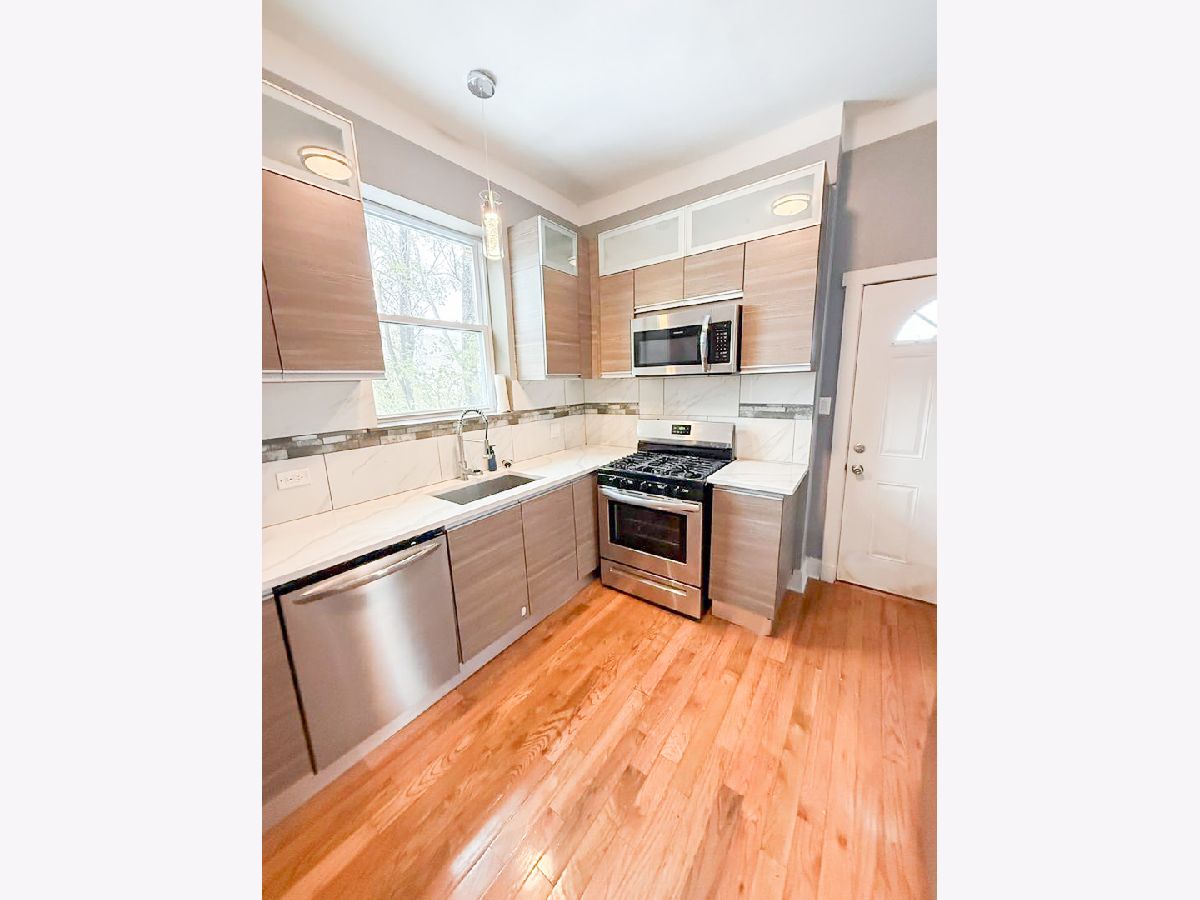 A meticulously renovated, luxurious, sunny greystone building situated on a peaceful and charming block in Bronzeville. This large 1700 SF 3 br w/ den/office on the 3rd floor is simply gorgeous, with spacious interiors, high ceilings, central AC, top of the line appliances including an in-unit washer/dryer. The kitchen is a standout, equipped with imported European cabinets, quartz countertops, and stainless still appliances. Living room area contains an electrical fireplace and fans. There is a secure wrought iron gate surrounding the property. The location is incredibly convenient, near the Jefferson Park station close to many popular restaurants, coffee shops, including Starbucks, Dunkin' and a brewery. The University of Chicago campus and hospital is only 1.5 miles away. This Brownsville community home offers proximity to local shops, cultural landmarks such as the little Black Pearl Art and Design Center, the DuSable museum of American History, and much more. With easy access to public transportation, downtown Chicago, Hyde Park and Lake Michigan are only minutes away. Bronzeville is a Near South Side neighborhood in Chicago. If you plan on taking the CTA, Bronzeville is accessible by the 35th-Bronzeville-IIT green line and 35th-Sox red line stations, and the 1, 3, 15, 29, 35, 39 and 43 buses. The neighborhood's western border is the Dan Ryan Expressway, making it easily accessible by car. Owner pays for water, sewer & garbage. Renter is responsible for gas and electric. No smoking allowed. CATS OK, No Dogs.