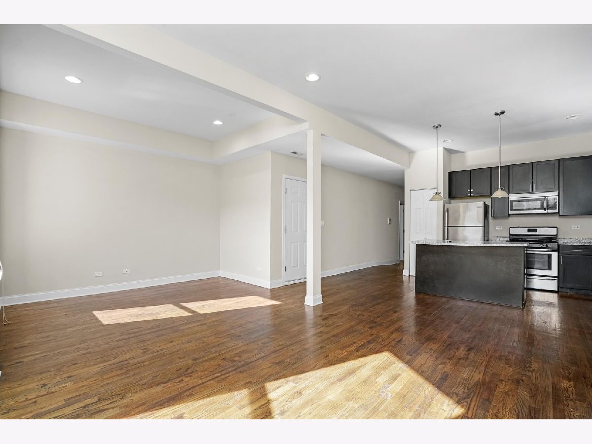 Gorgeous unit is located on the 2nd floor with plenty of natural sunlight! Upon entry, you will make your way through the hallway and find the 3 spacious bedrooms. The primary bedroom comes complete with a walk-in closet and a full ensuite bathroom. Continue through the hallway where you will find the open space featuring the dining room, living room, and kitchen all with hardwood flooring. The kitchen boasts black cabinetry, stainless steel appliances, and a center island. An in unit laundry room with a washer and dryer. 1 parking space included off alley. Cats and dogs okay, 30 pound weight limit. Application Fee: $70.00 Per applicant over 18 | Admin-In Fee: $500 | Income Requirement: 3.25x the Gross Rent | *All applications are subject to review and verification